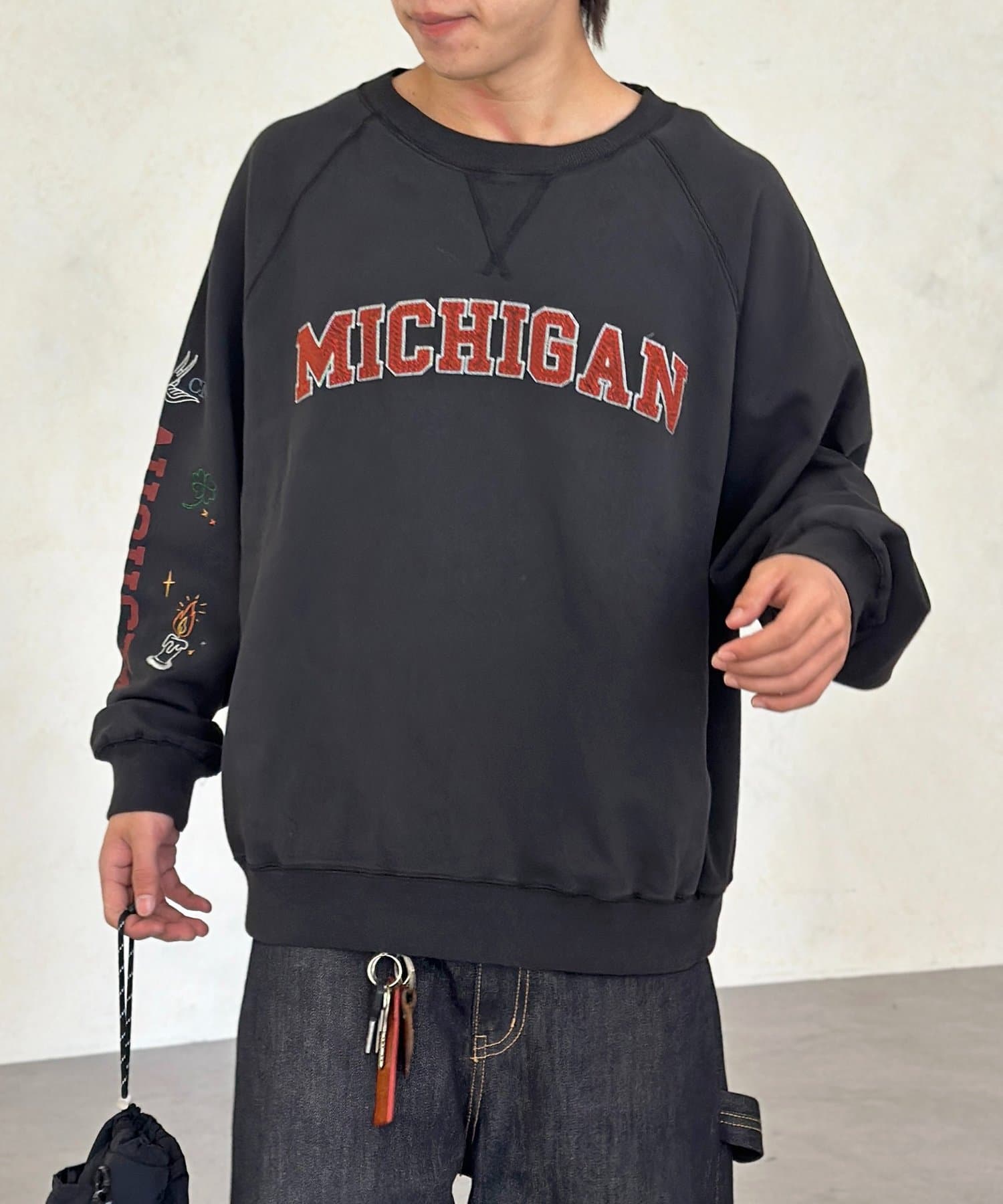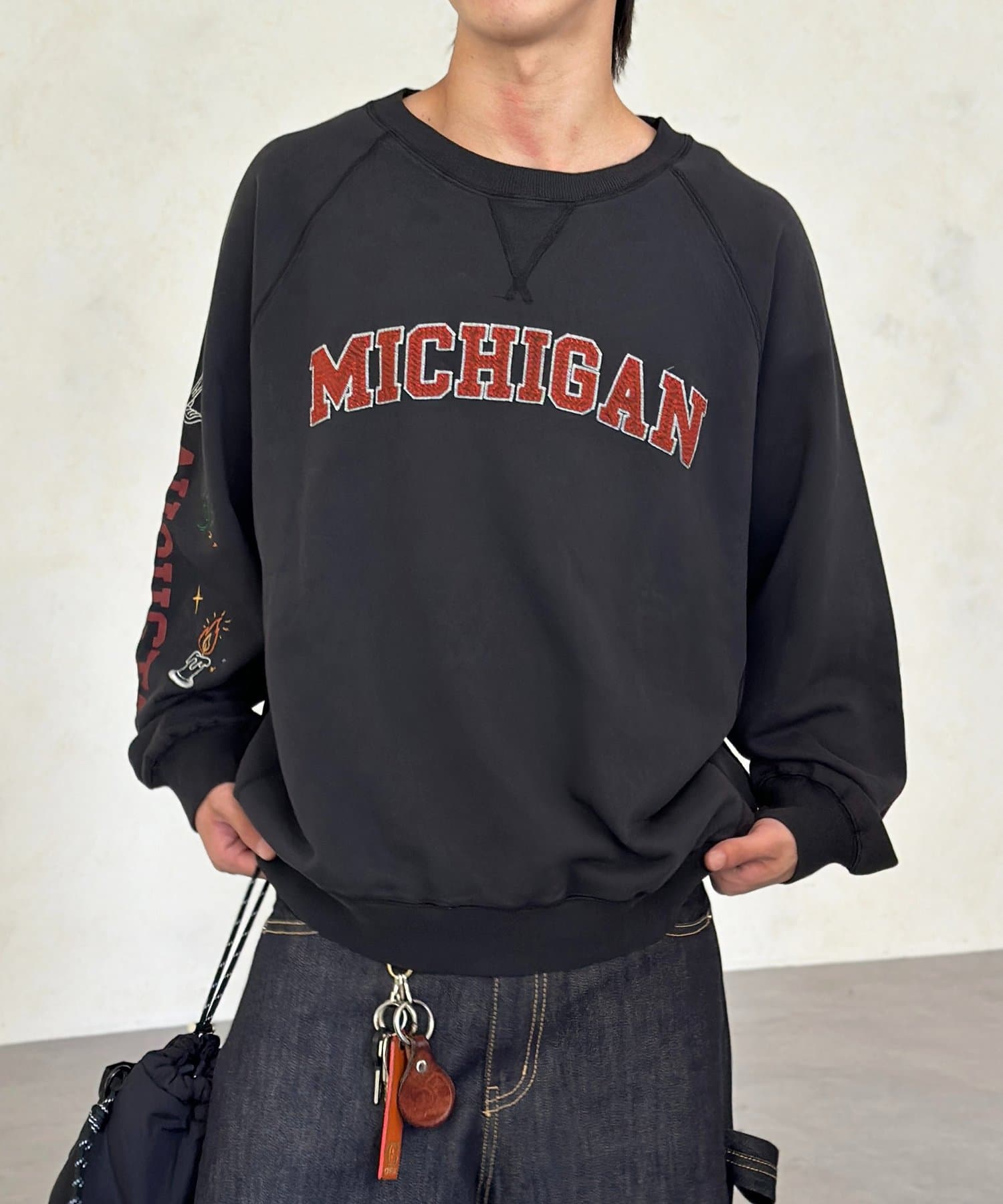 ヴィンテージライクな風合いが魅力のカレッジロゴスウェット!