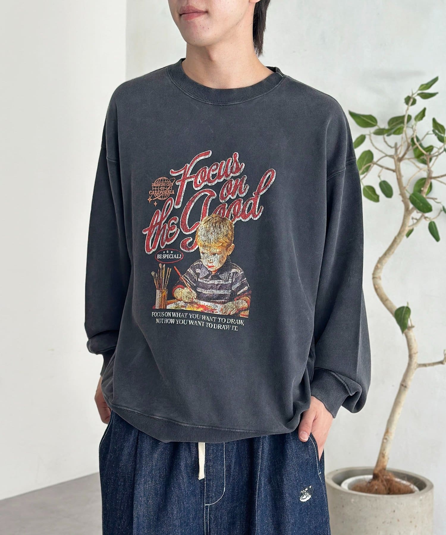 ヴィンテージ感漂う色合いと、遊び心が詰まったスウェット!