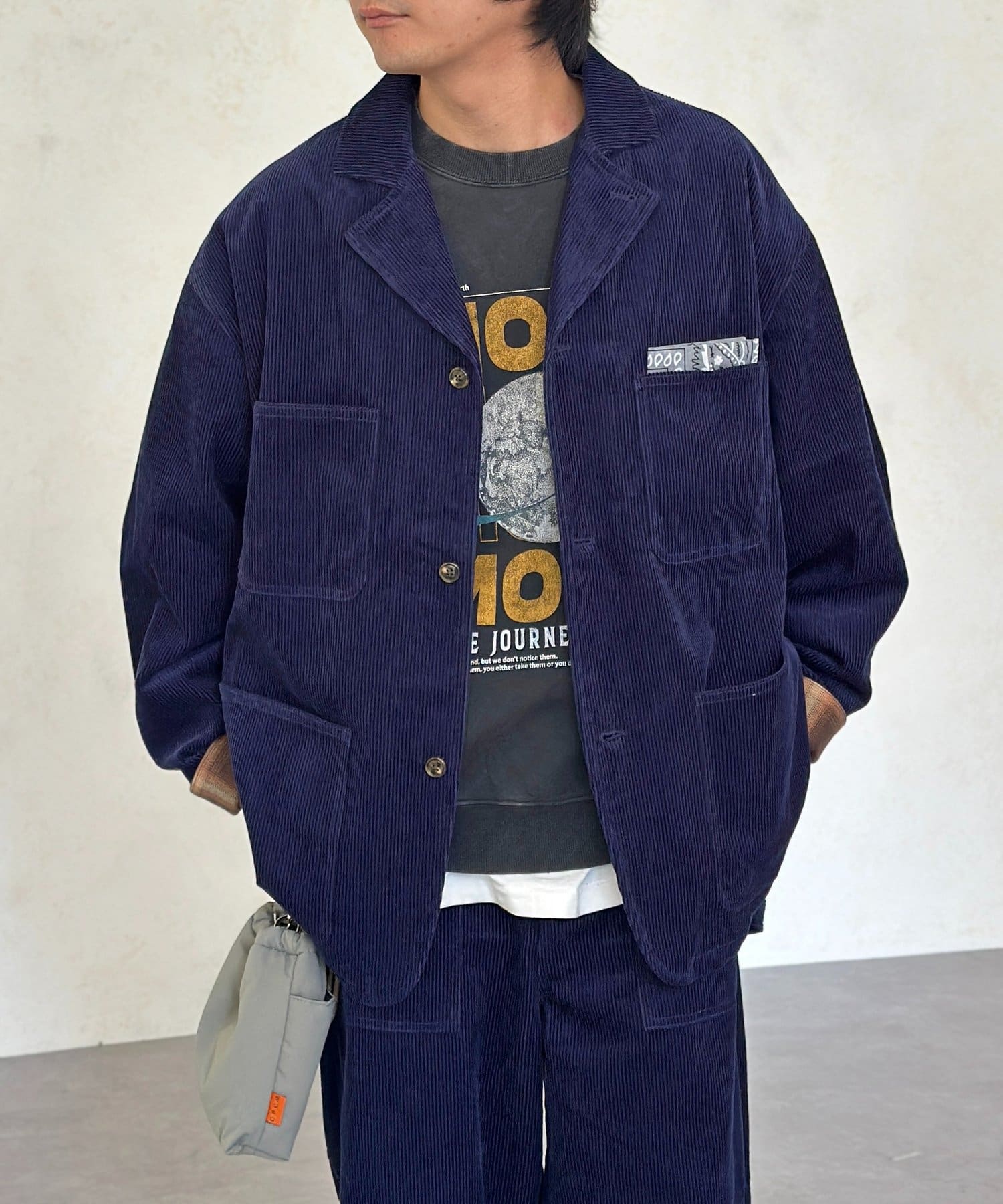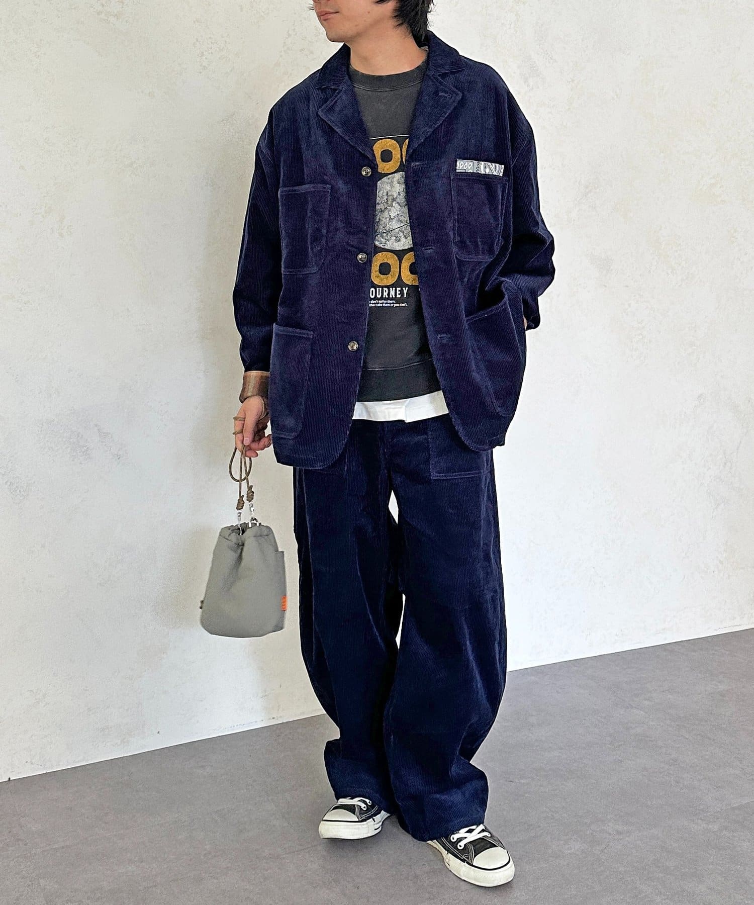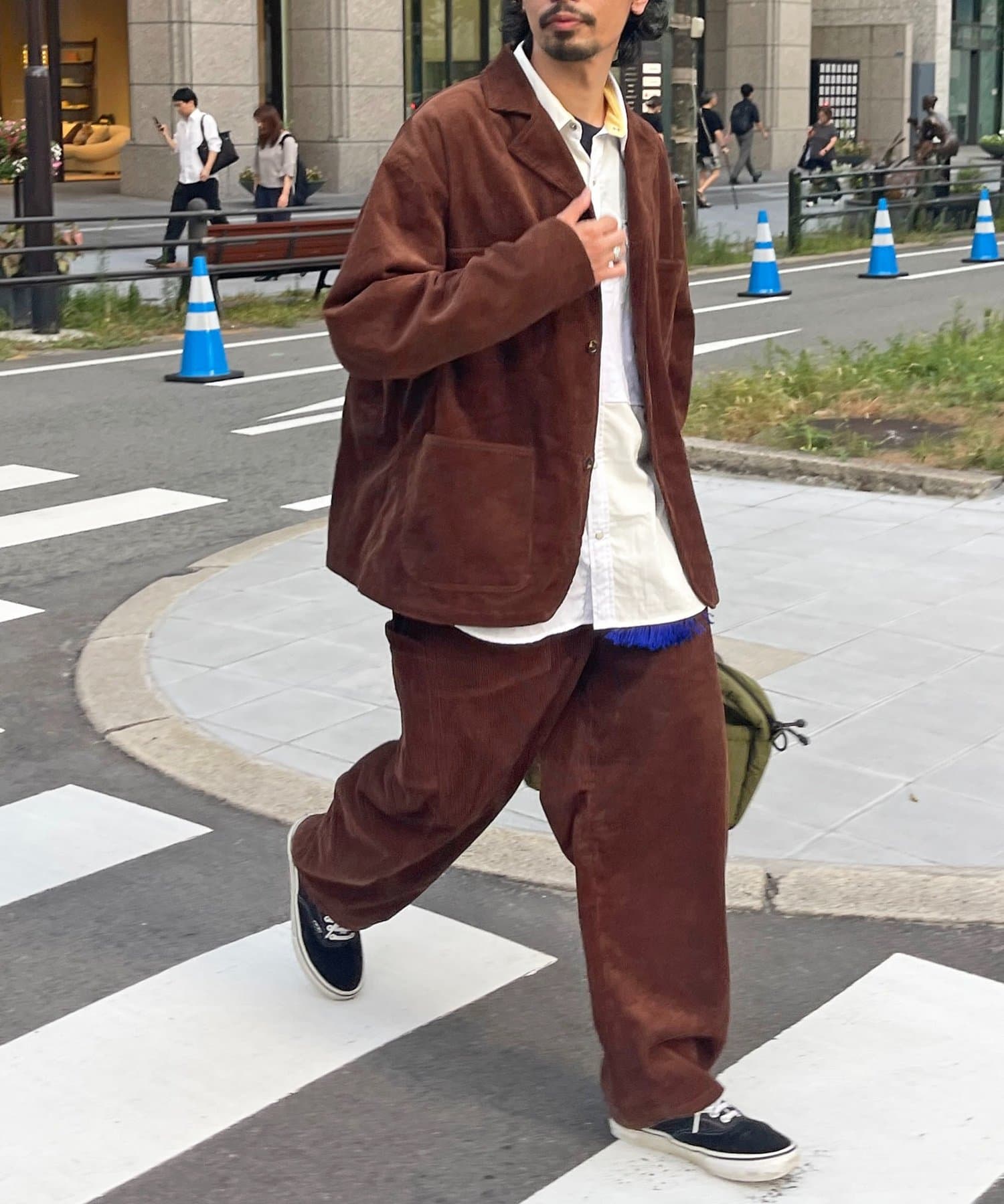・コーデュロイのセットアップで抜け感のあるスタイリングに