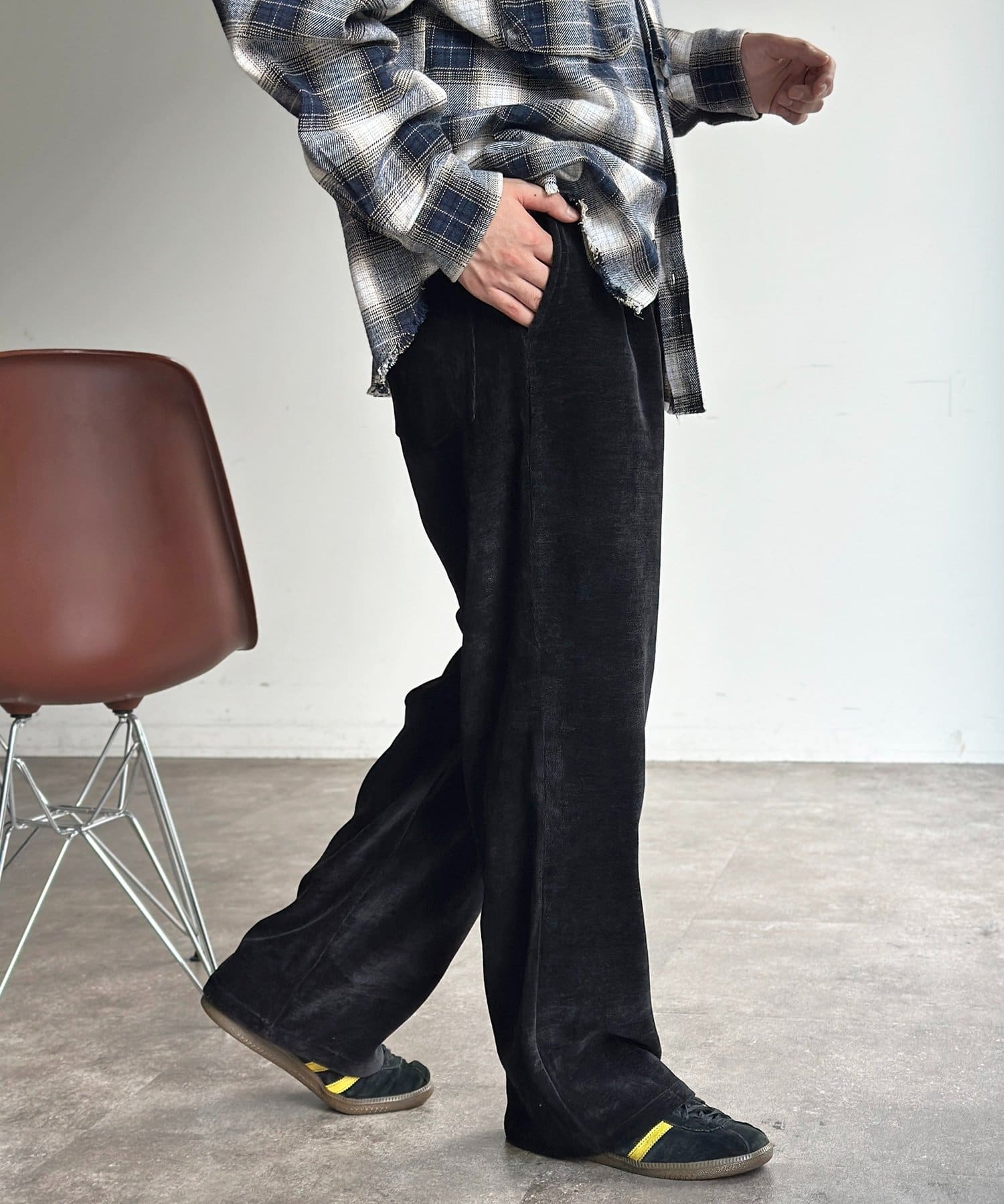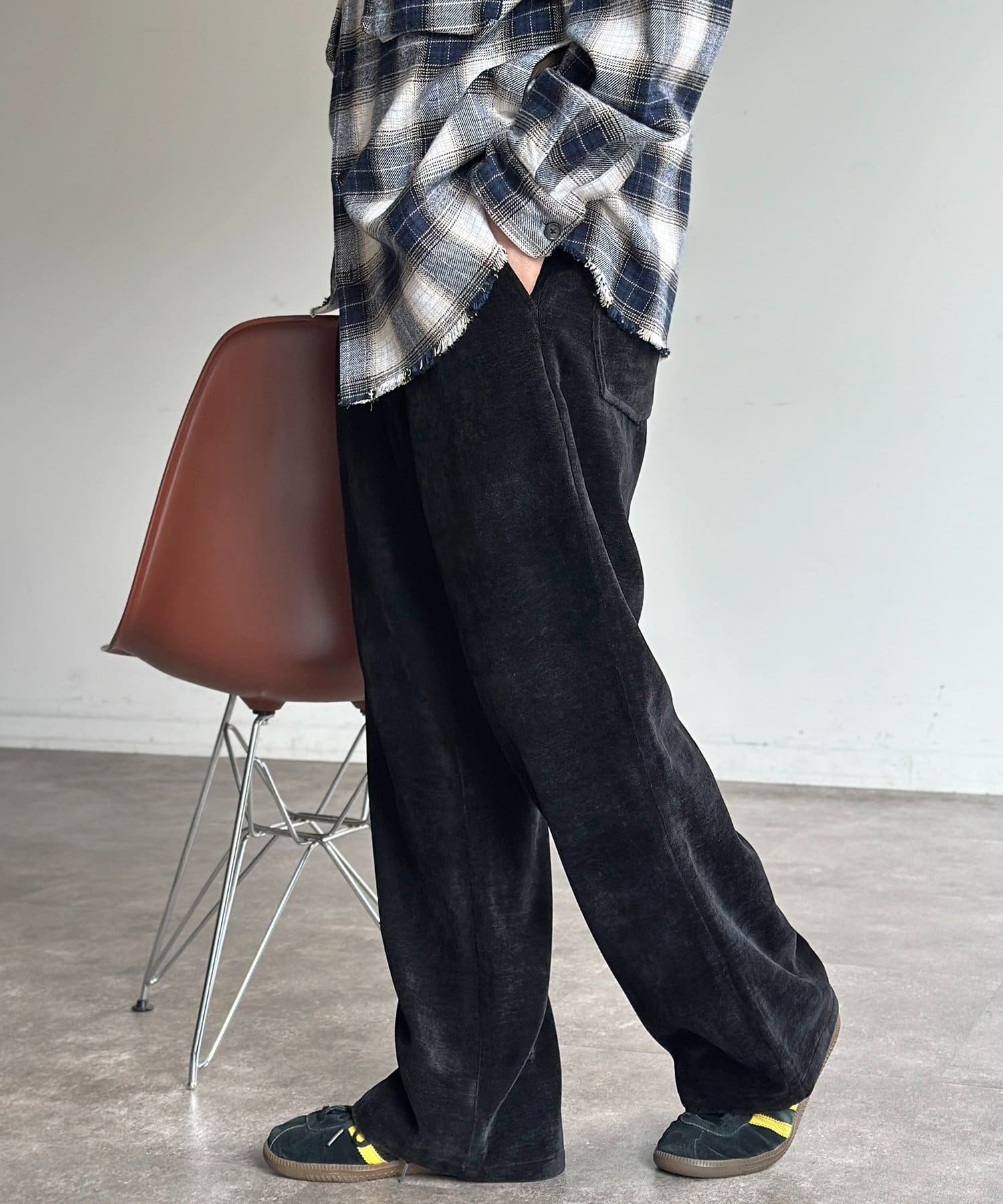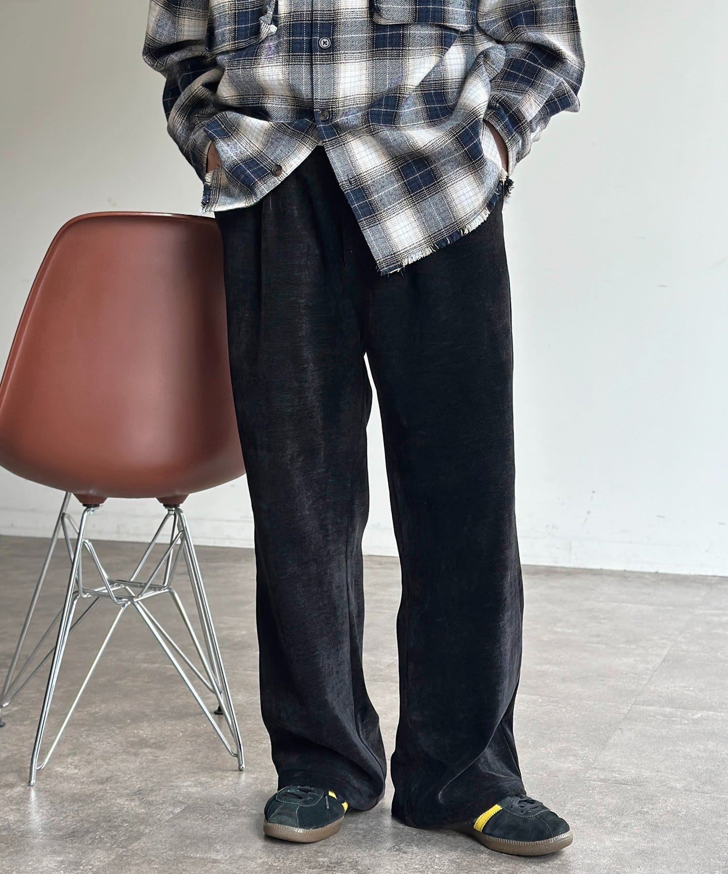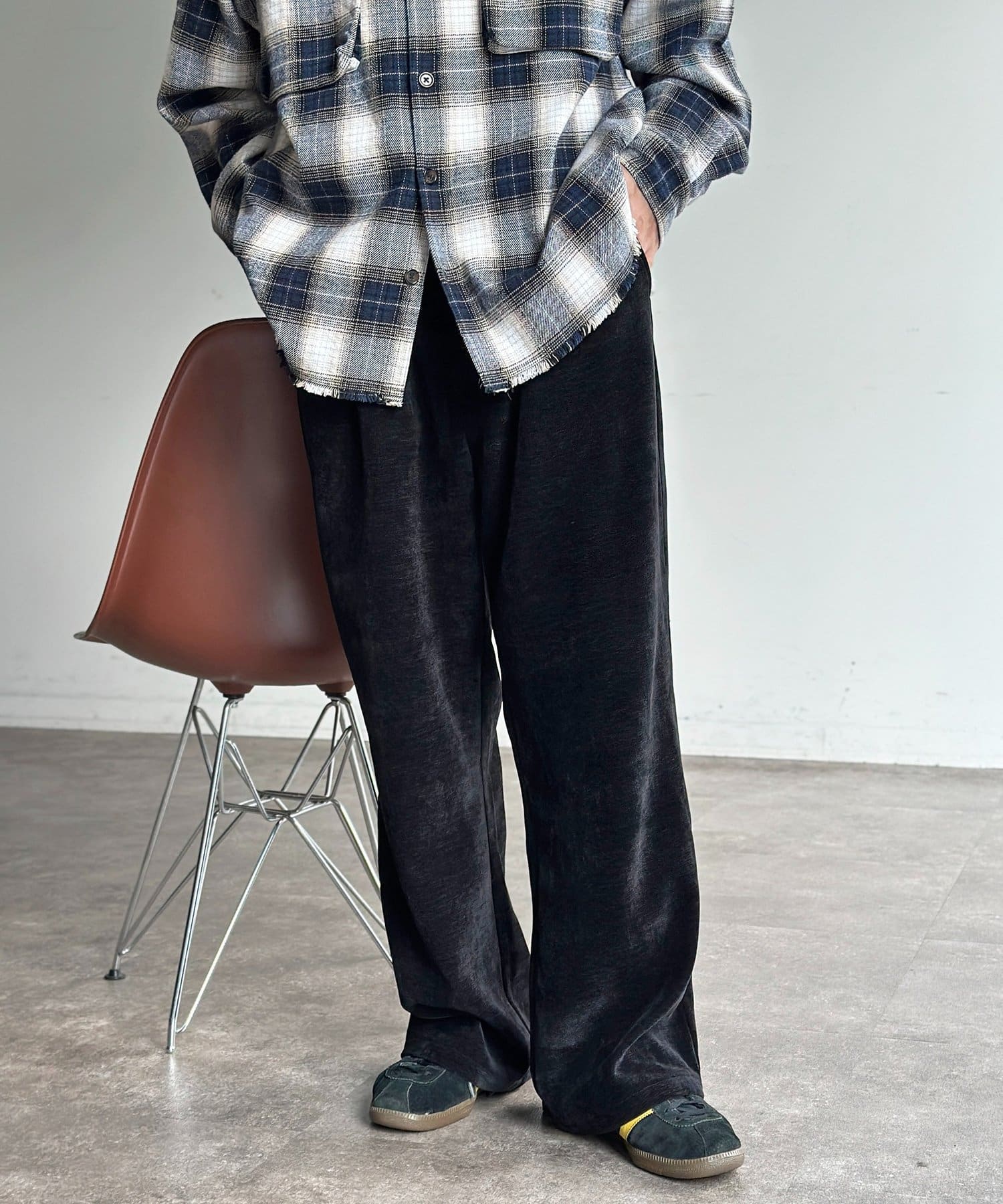 メンズファッションでトレンドのセミフレアは、脚長効果も期待できます◎