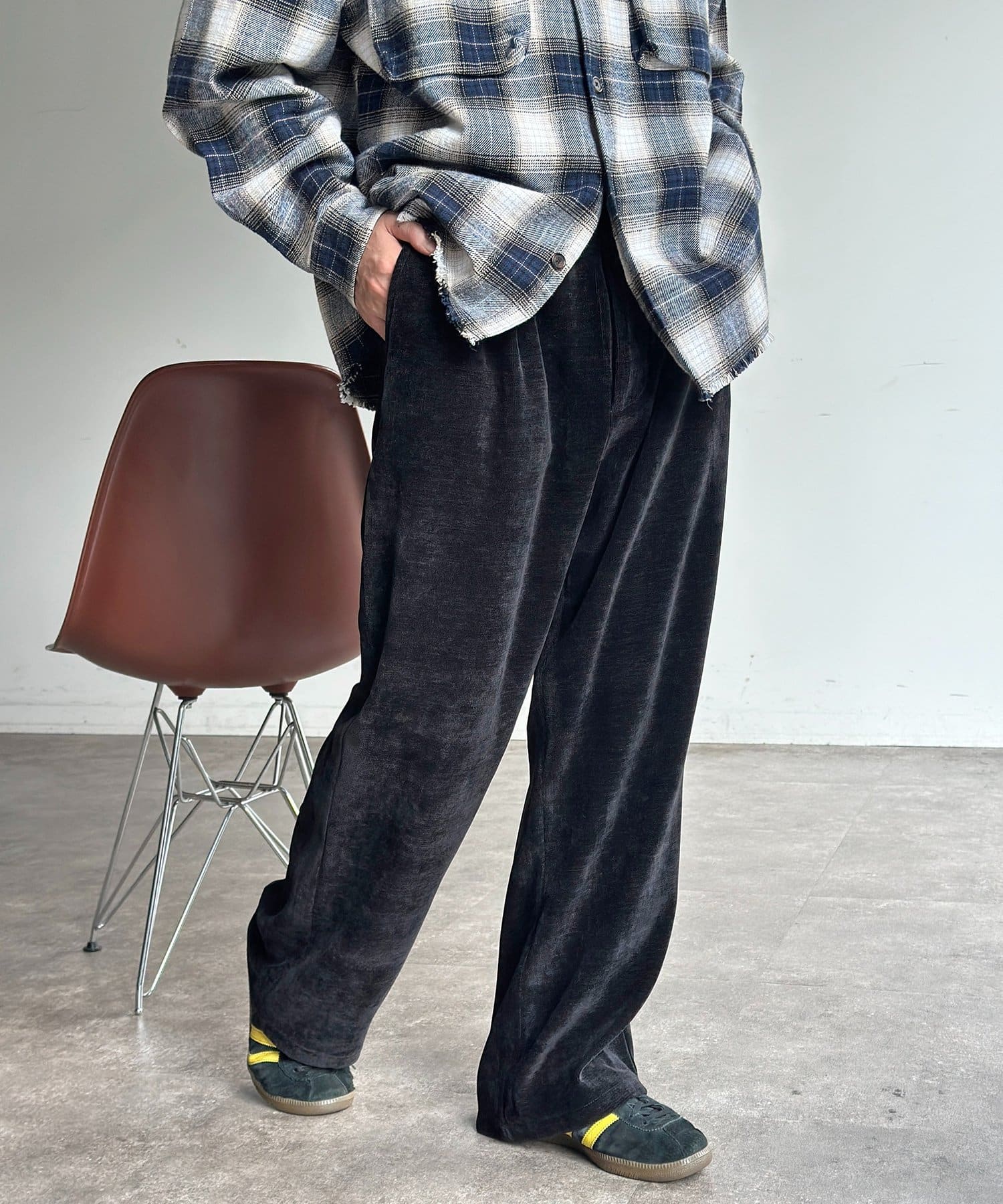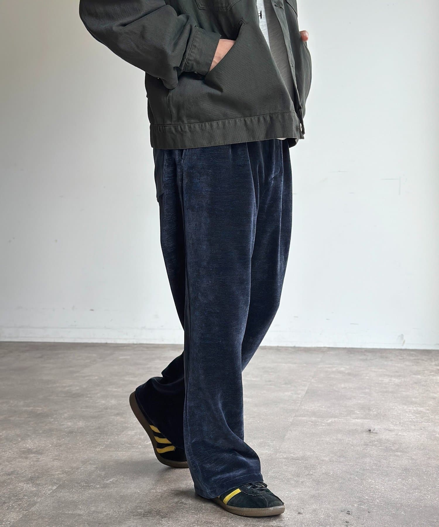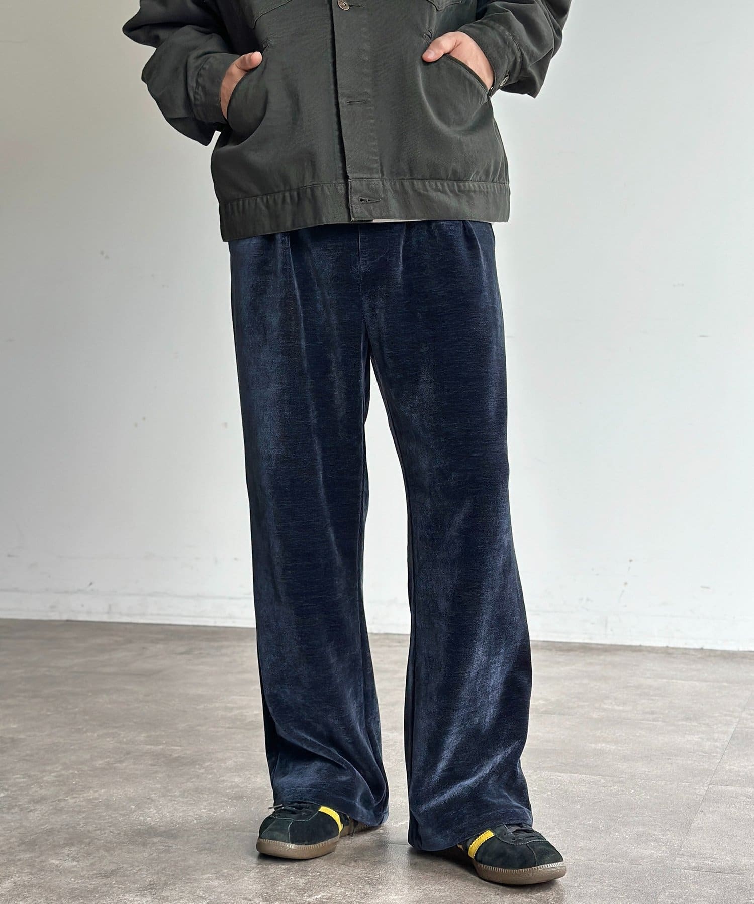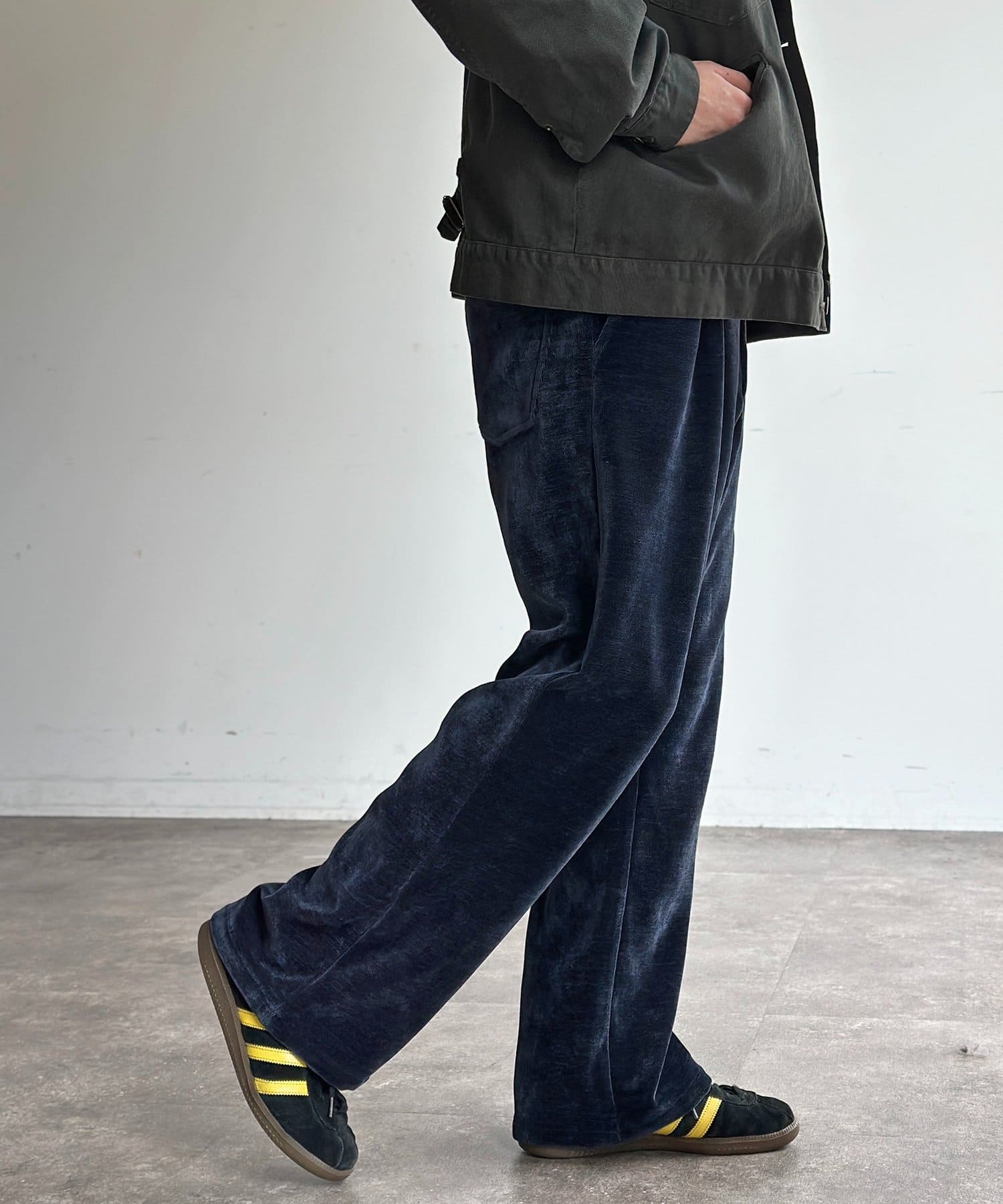 メンズファッションでトレンドのセミフレアは、脚長効果も期待できます◎
