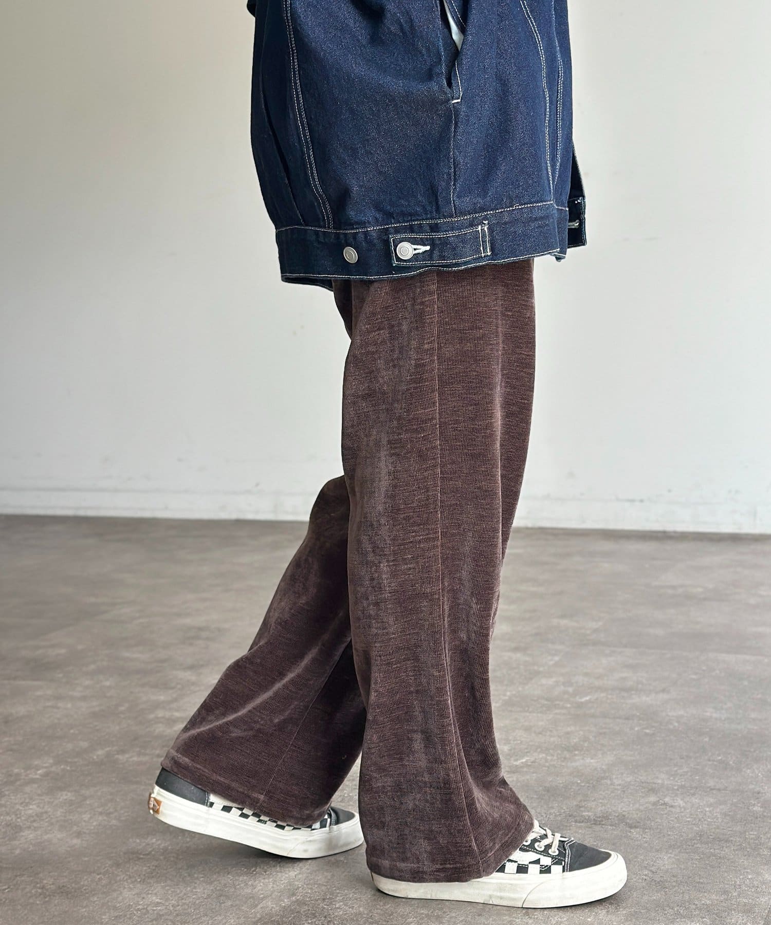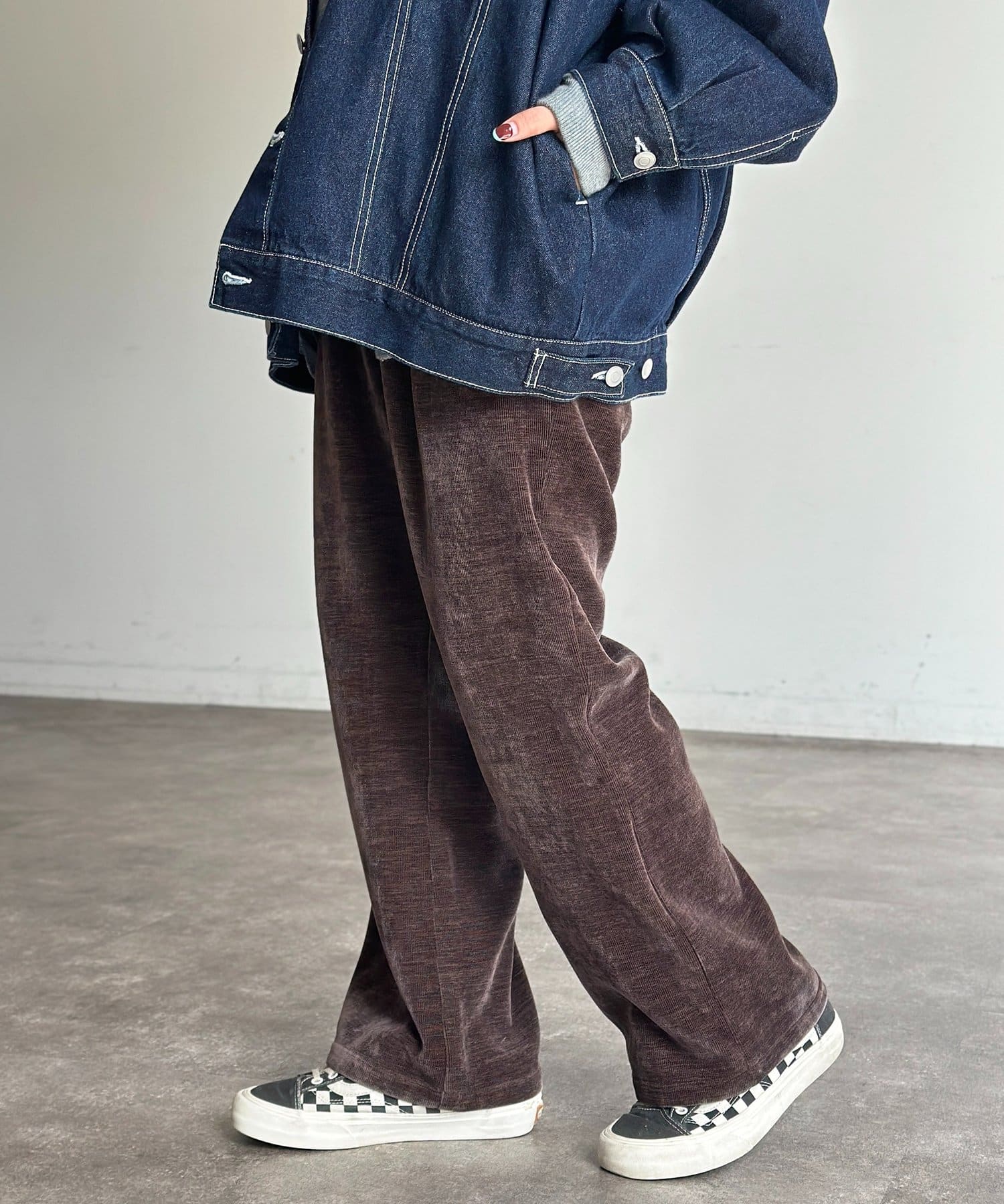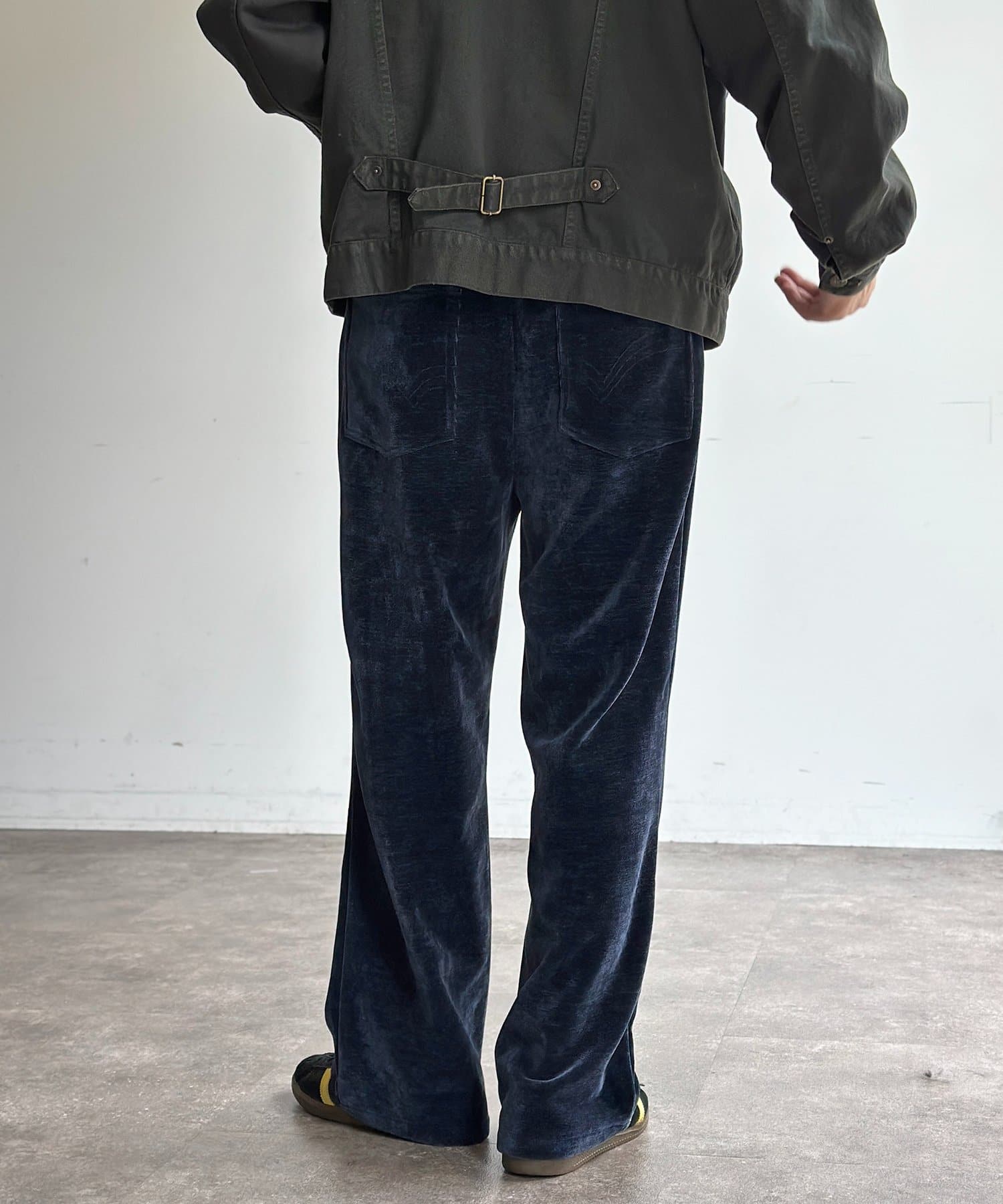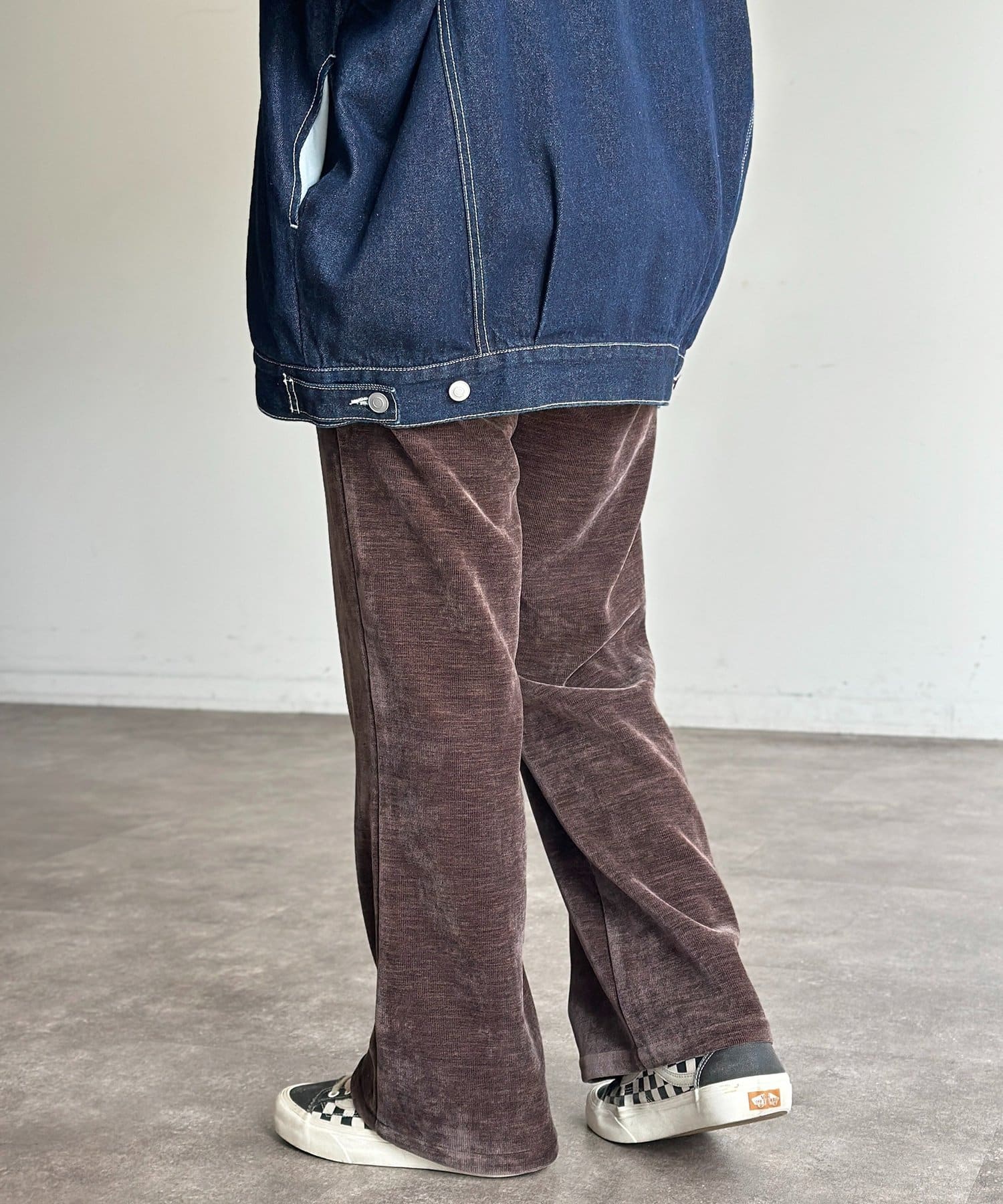 上品な雰囲気のベロアコーデュロイ生地を使用したセミフレアパンツ