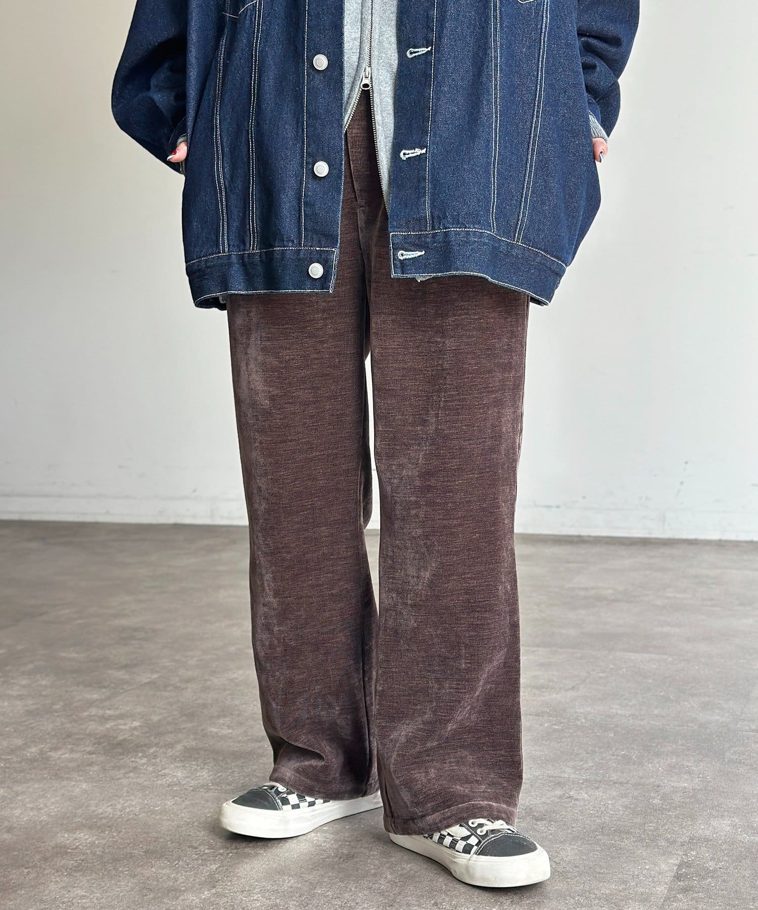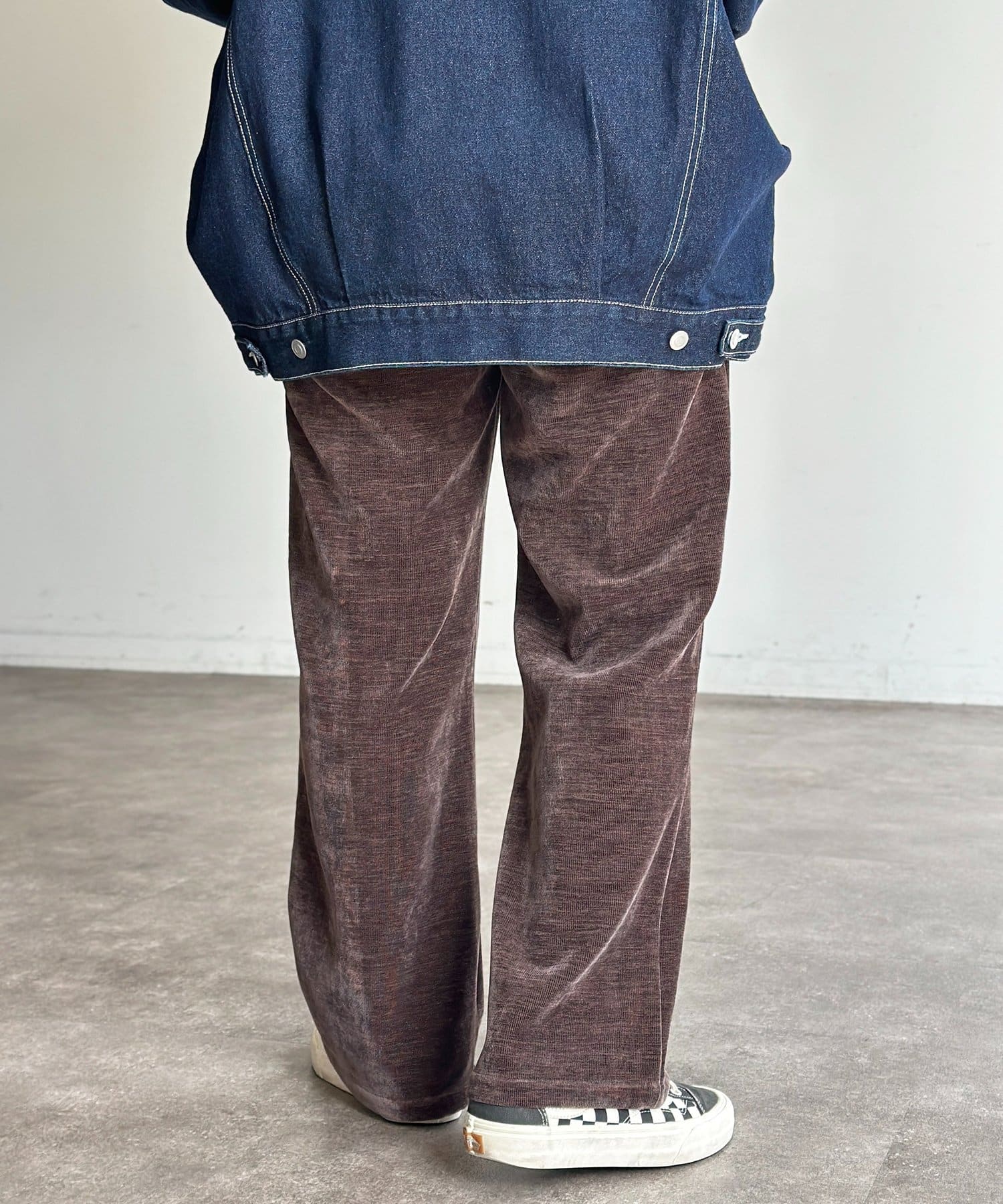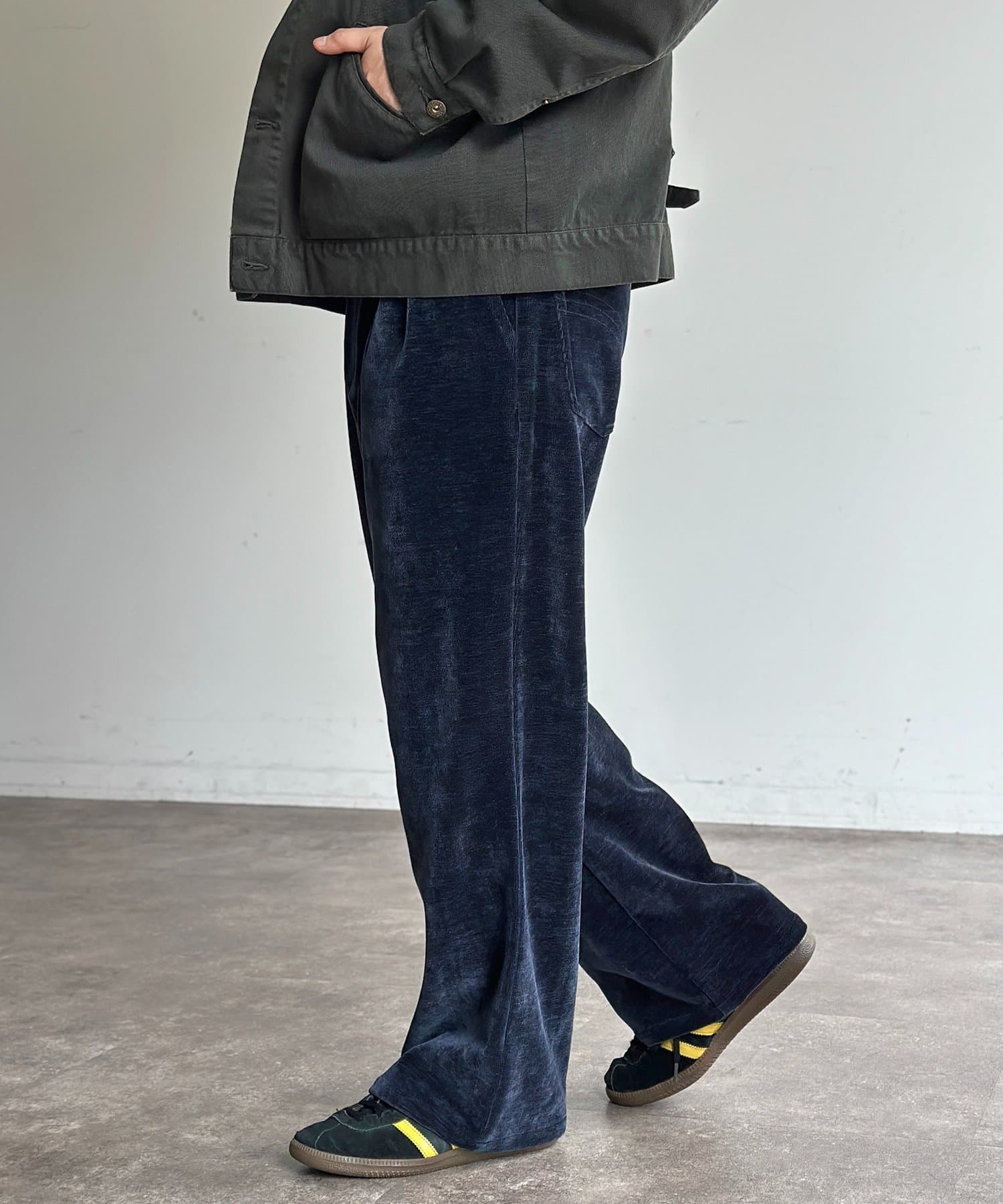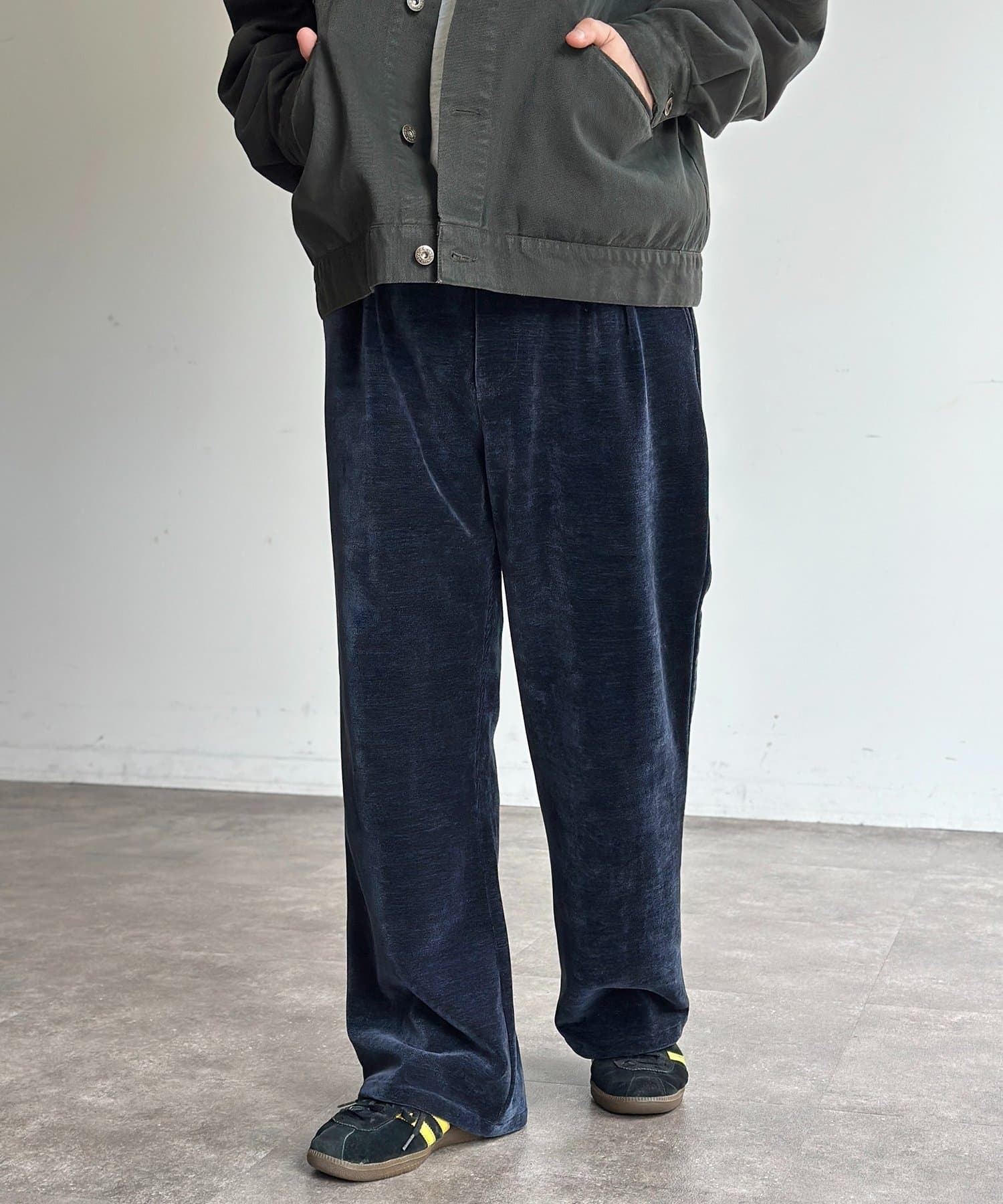 上品な雰囲気のベロアコーデュロイ生地を使用したセミフレアパンツ