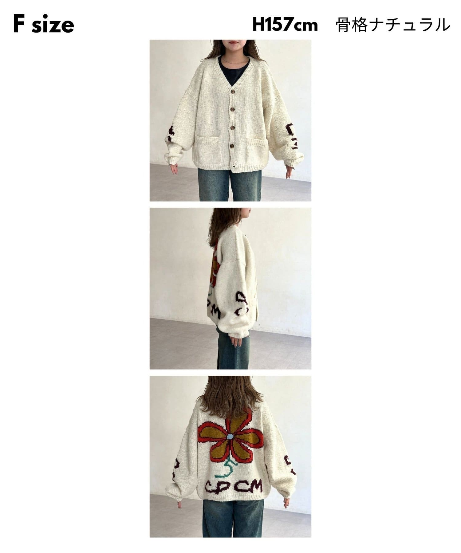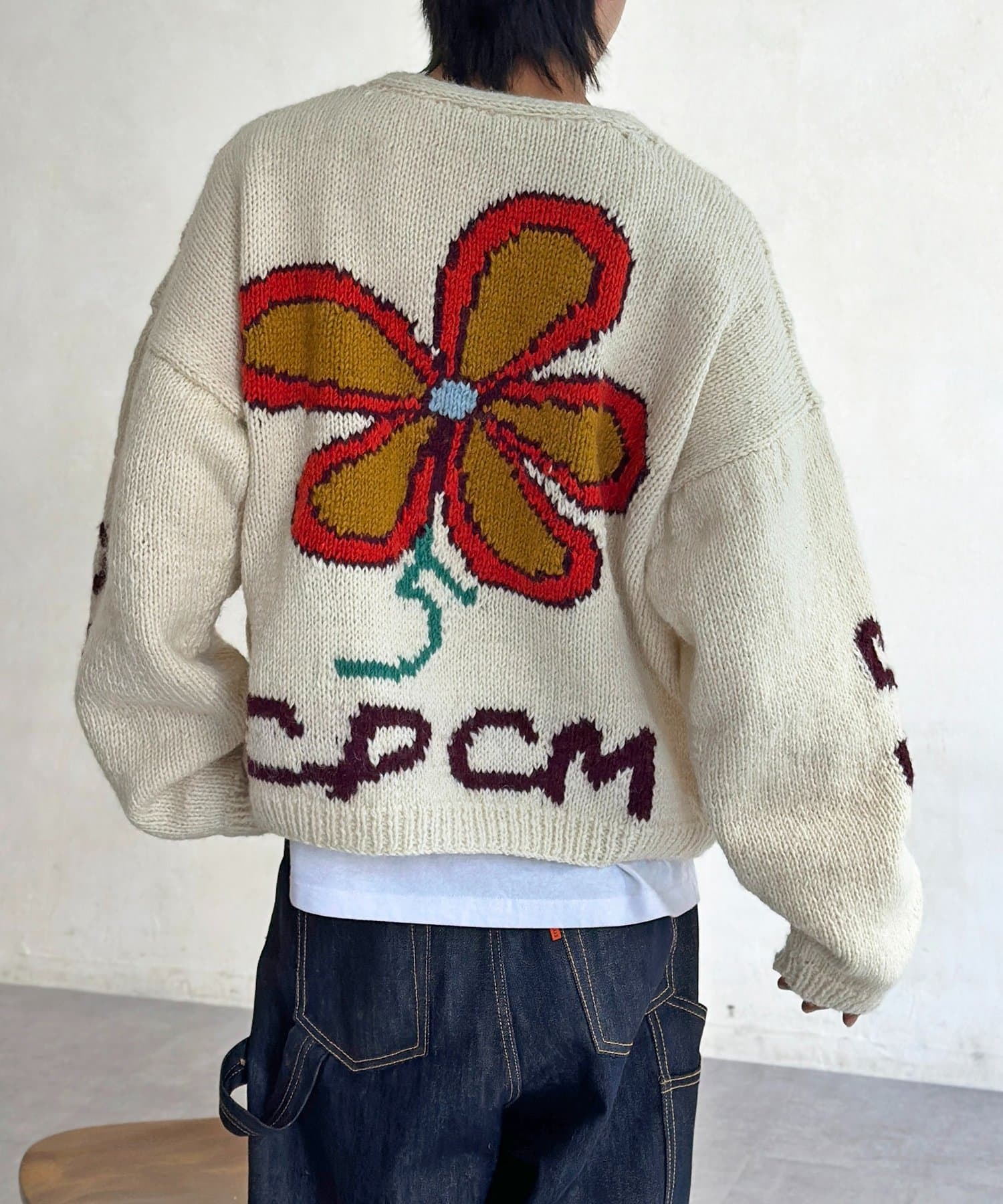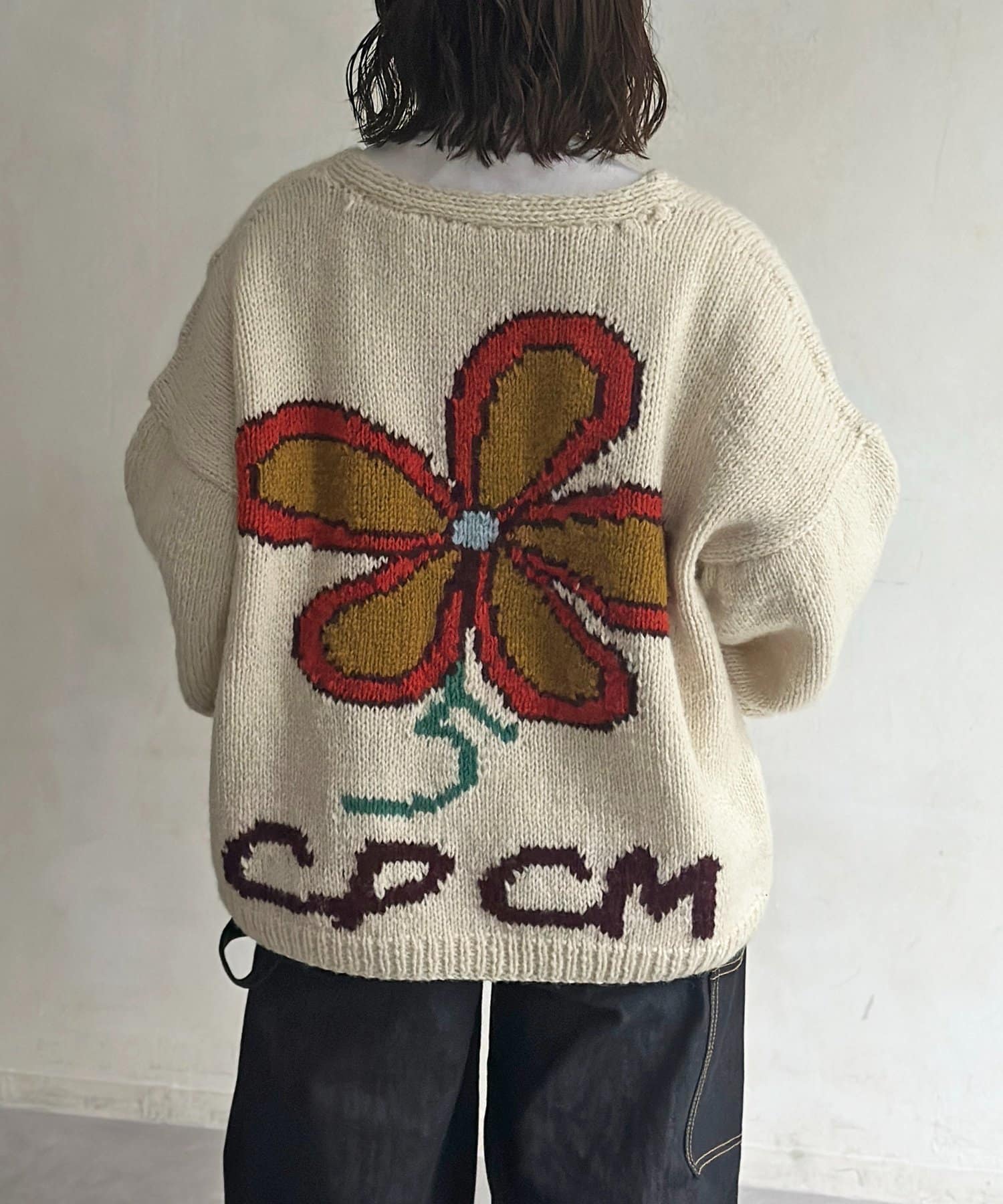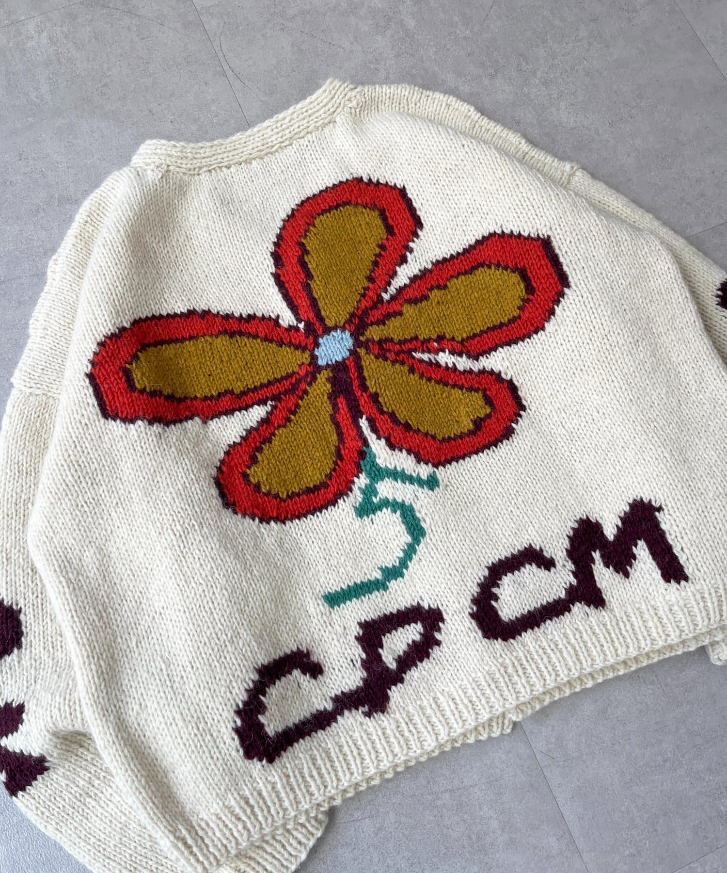 葉っぱの部分5周年の"5"になっていて、袖にもCPCMのロゴが入っているハンドメイドのカーディガン!