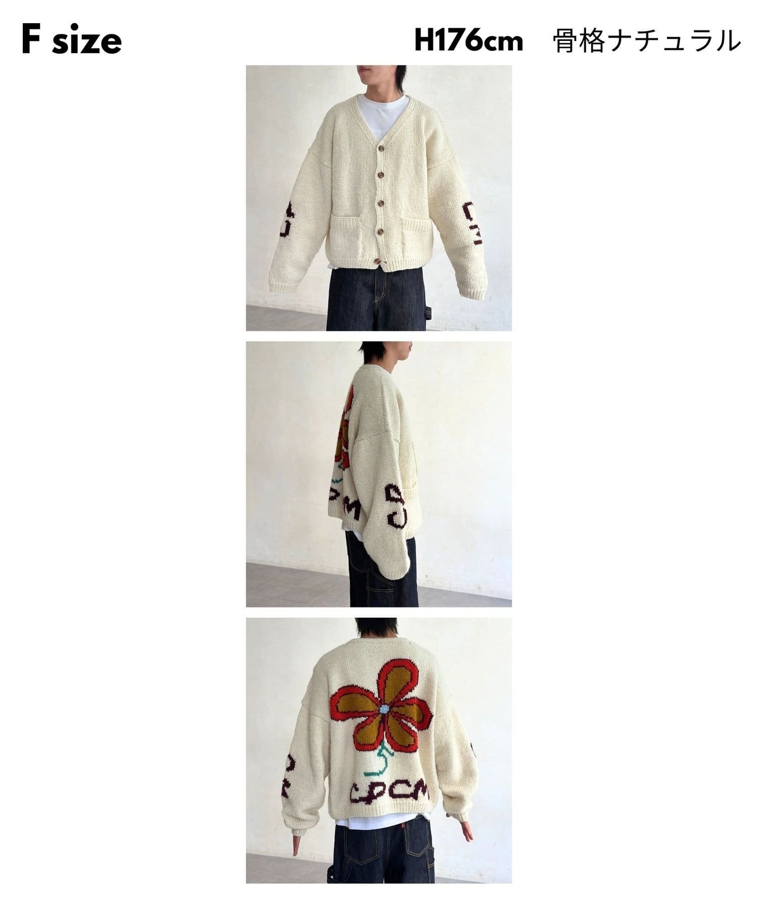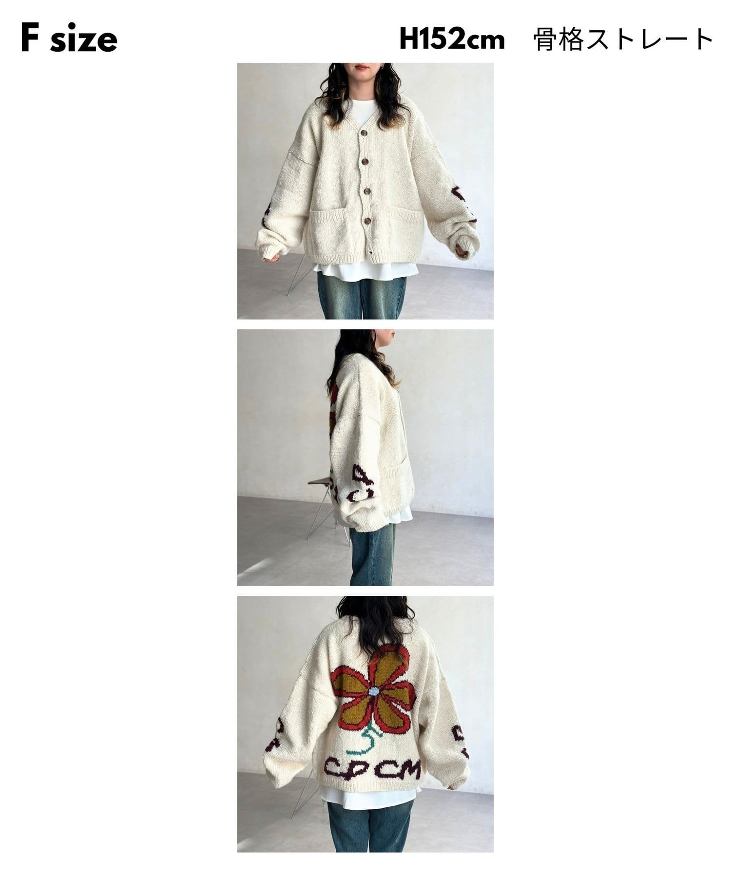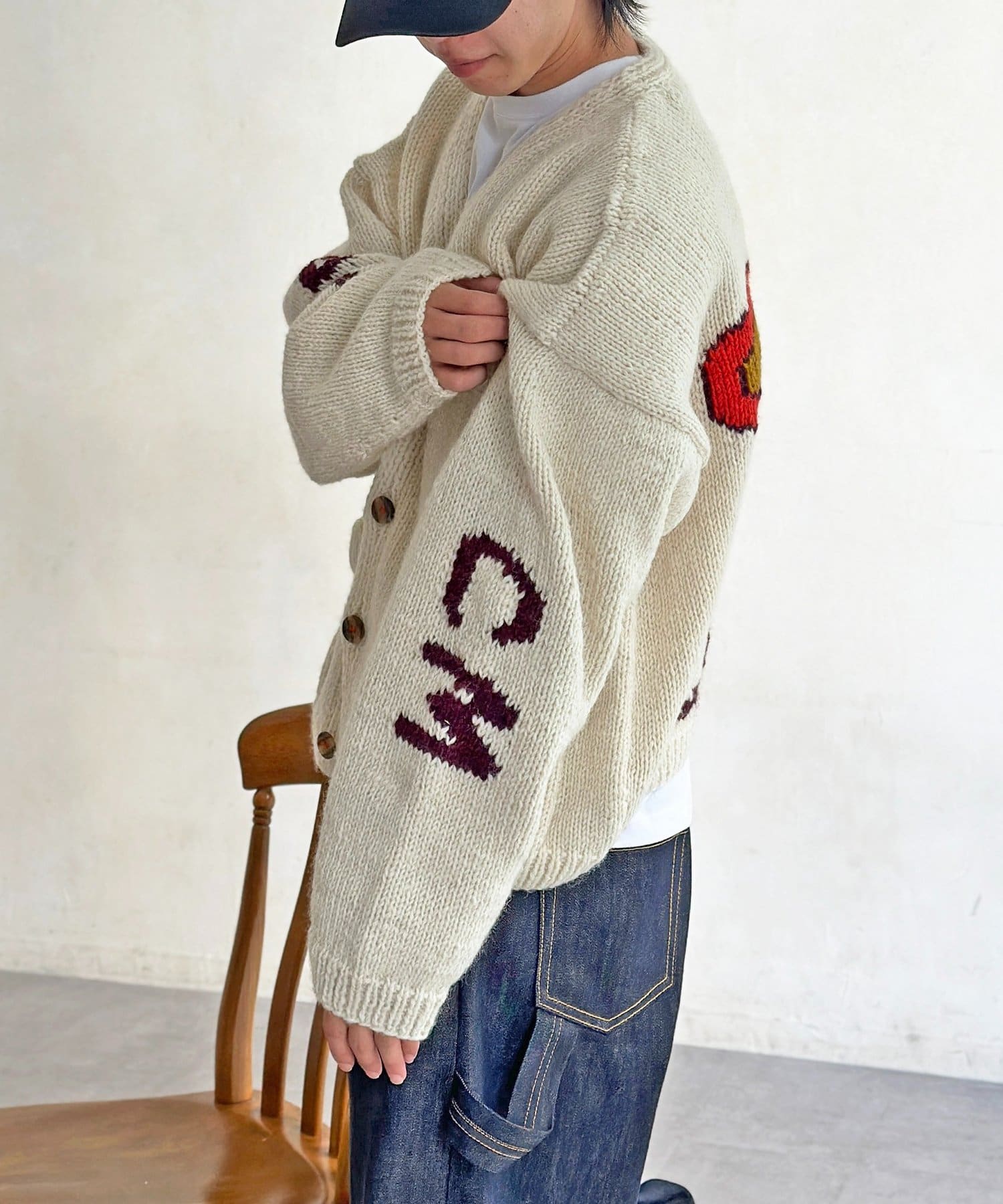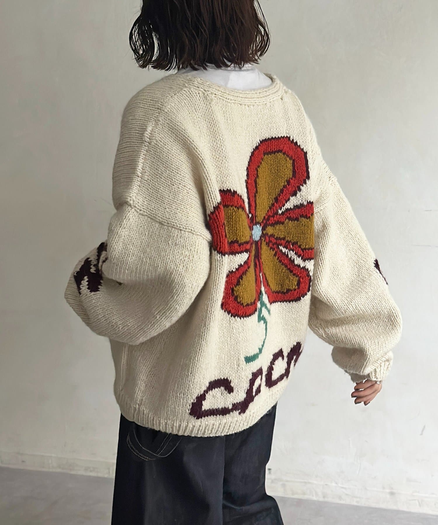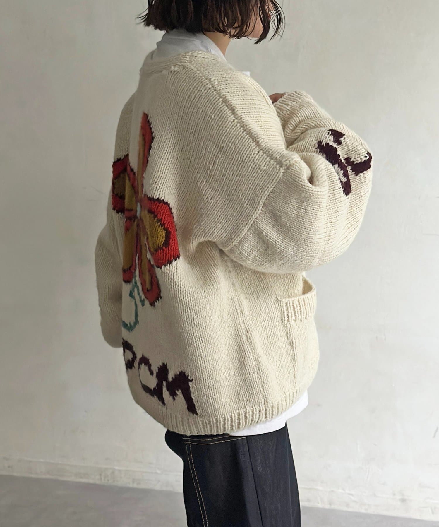 葉っぱの部分5周年の"5"になっていて、袖にもCPCMのロゴが入っているハンドメイドのカーディガン!