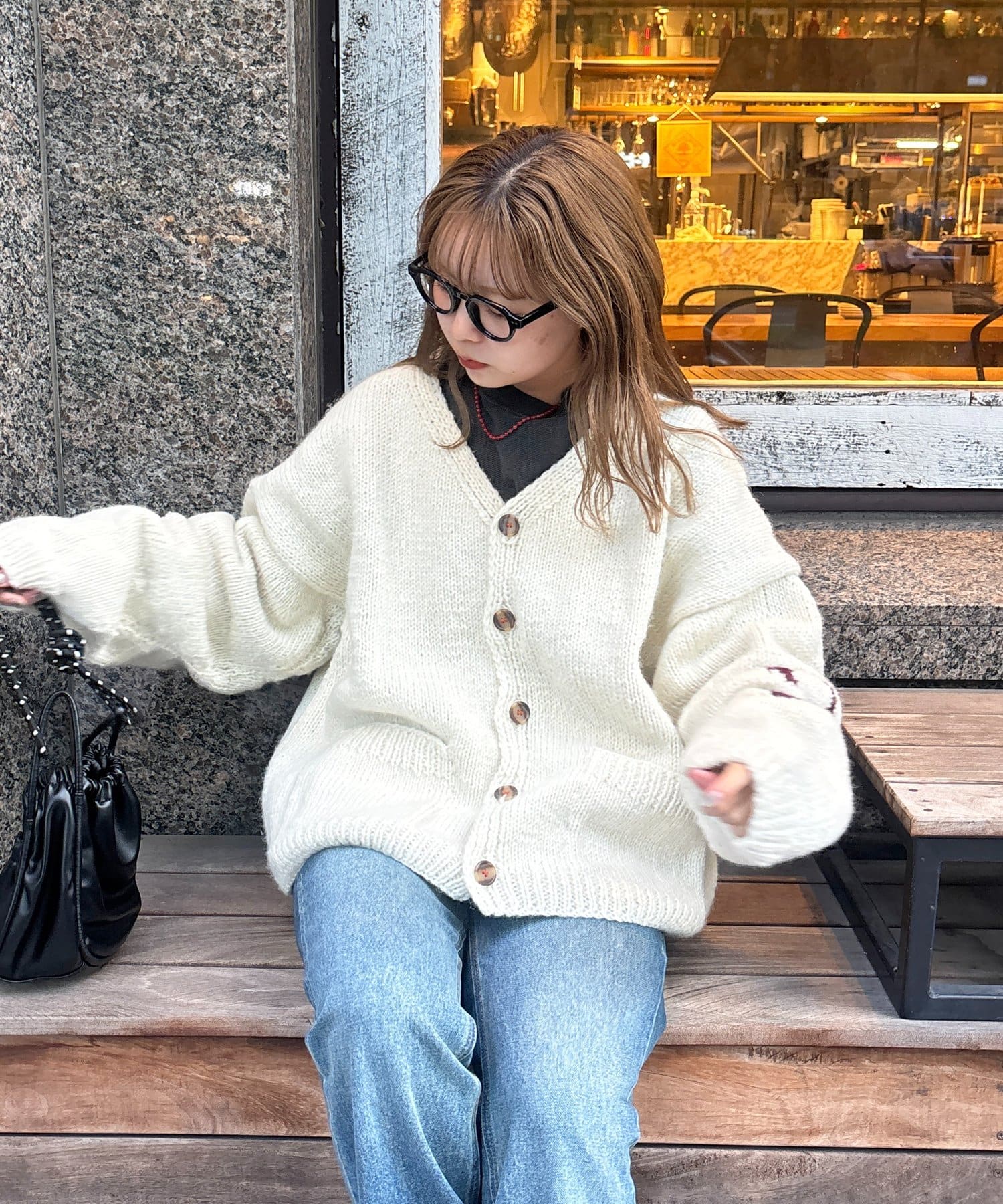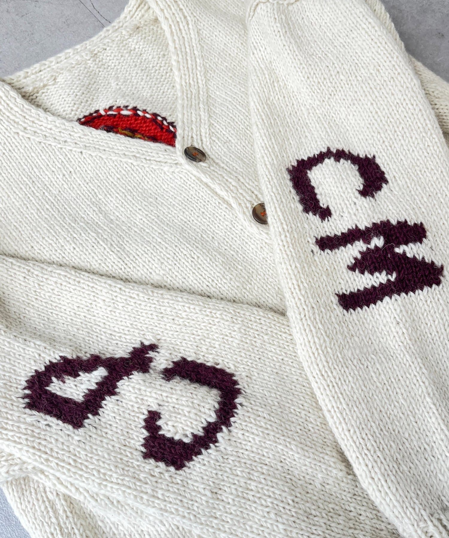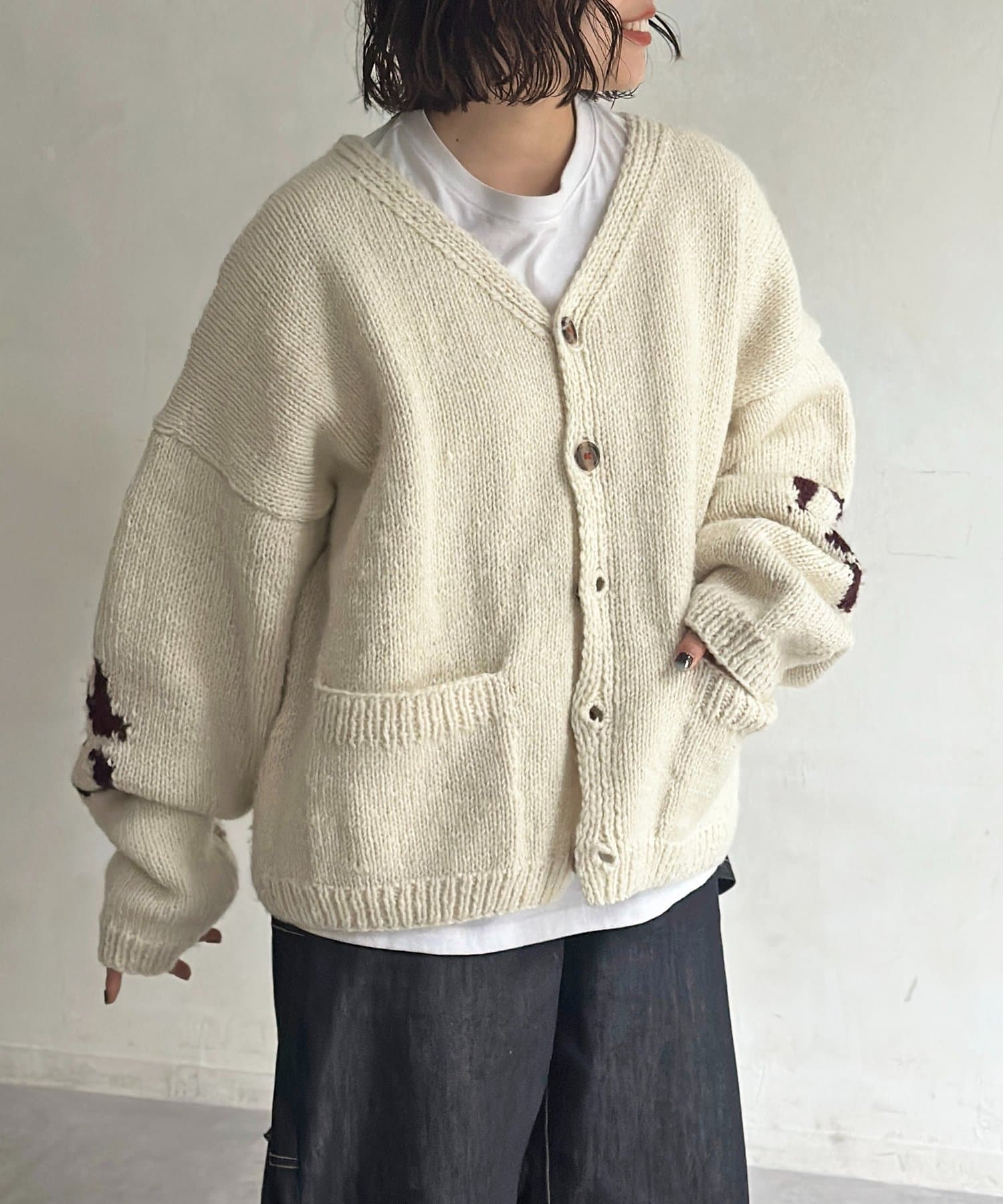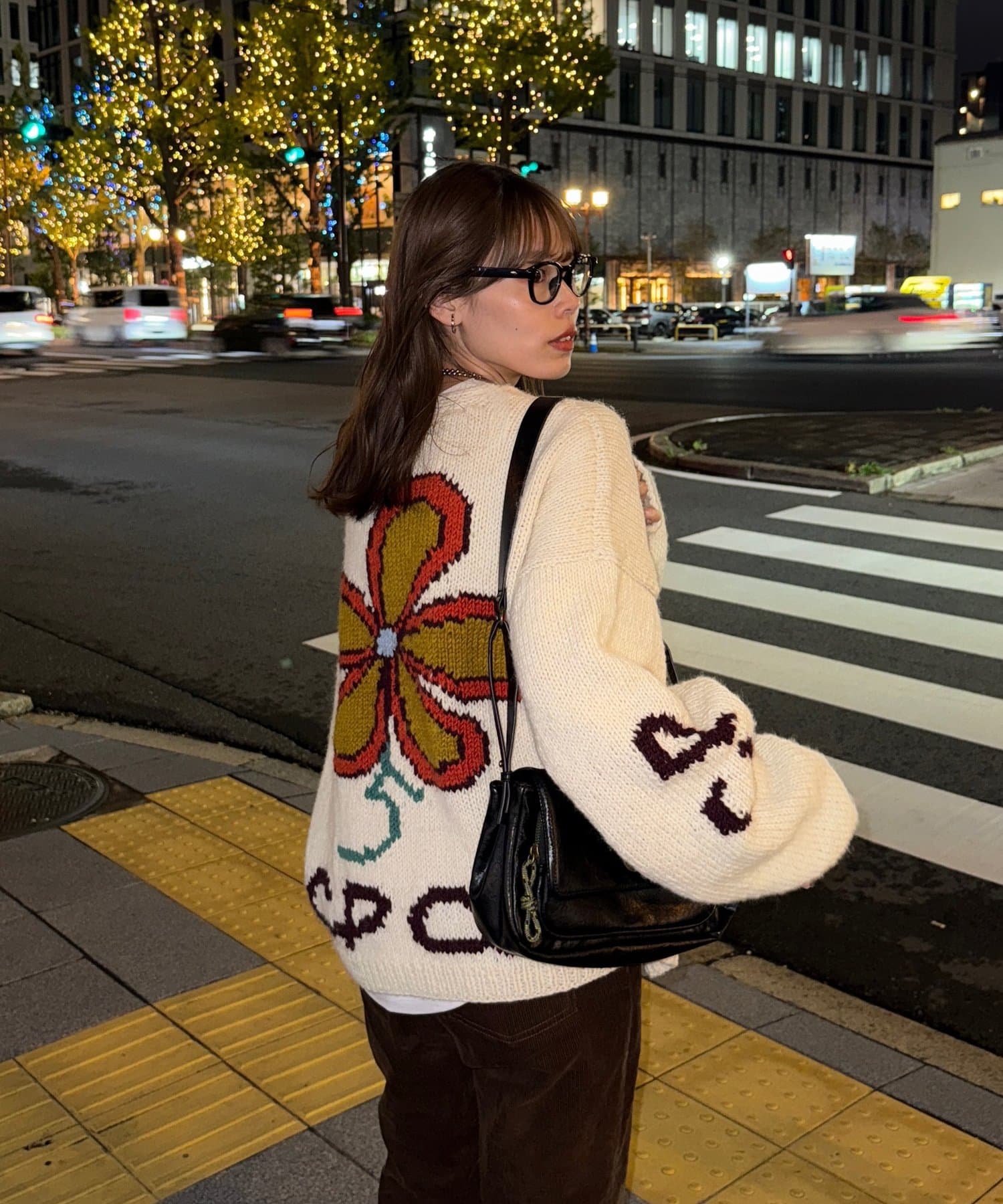 葉っぱの部分5周年の"5"になっていて、袖にもCPCMのロゴが入っているハンドメイドのカーディガン!