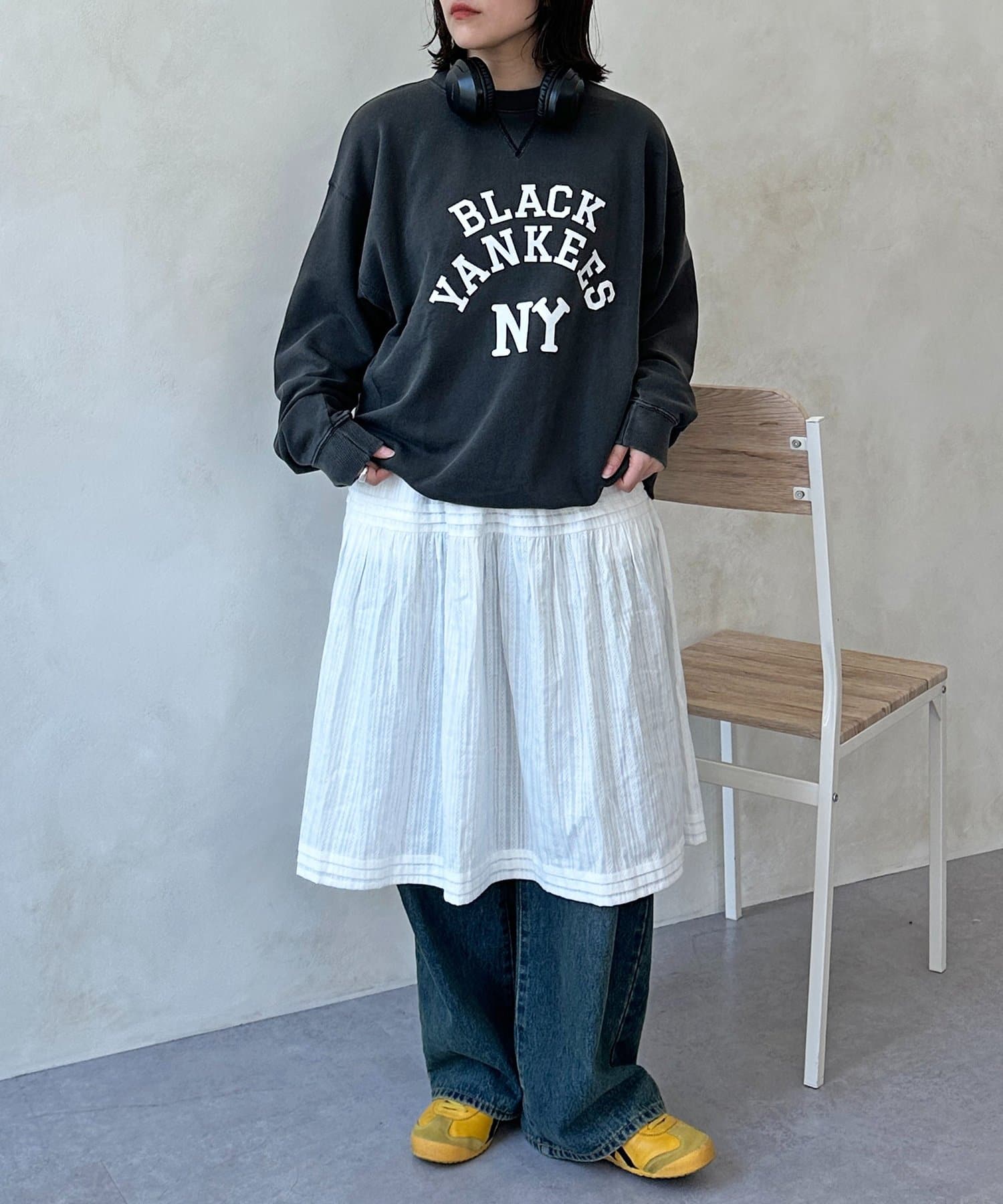 ・ワンピースやスカートにレイヤードして、カジュアルMIXスタイル