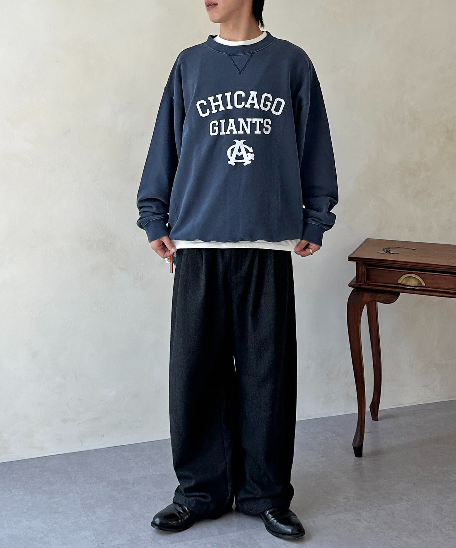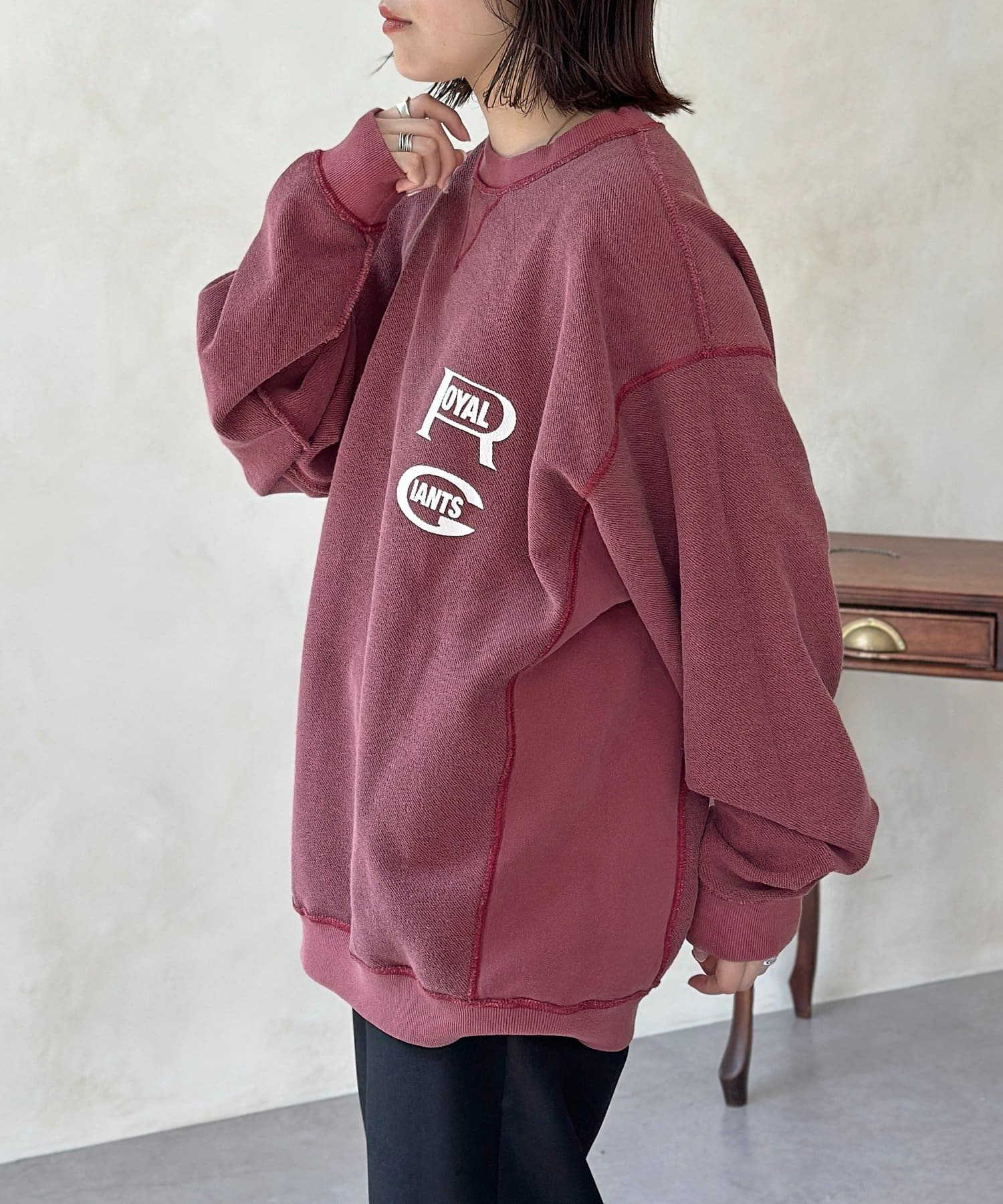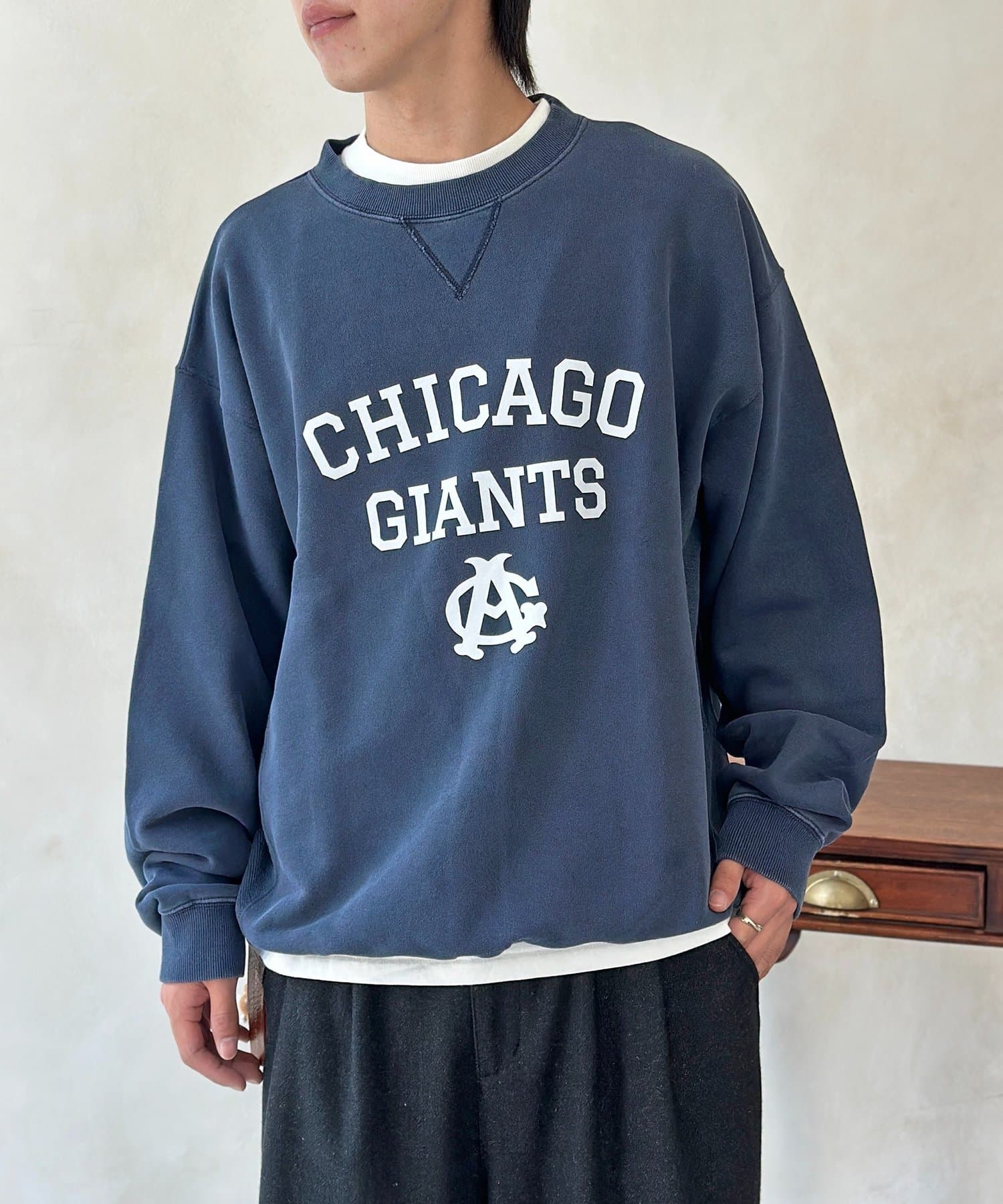 ヴィンテージライクなカレッジロゴが目を引く、リバーシブルスウェット!