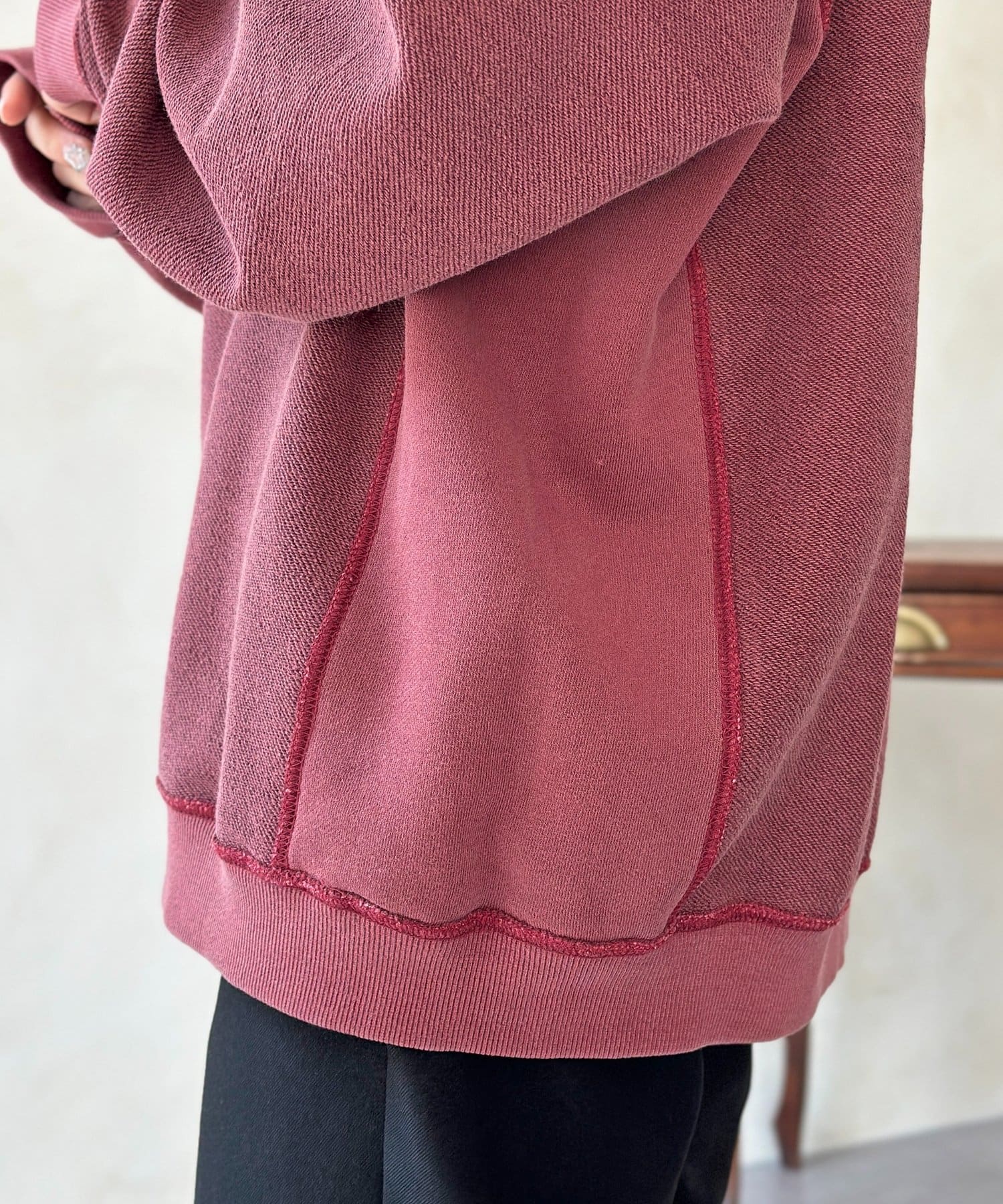・スウェットにスラックスを合わせた、大人のリラックスカジュアル