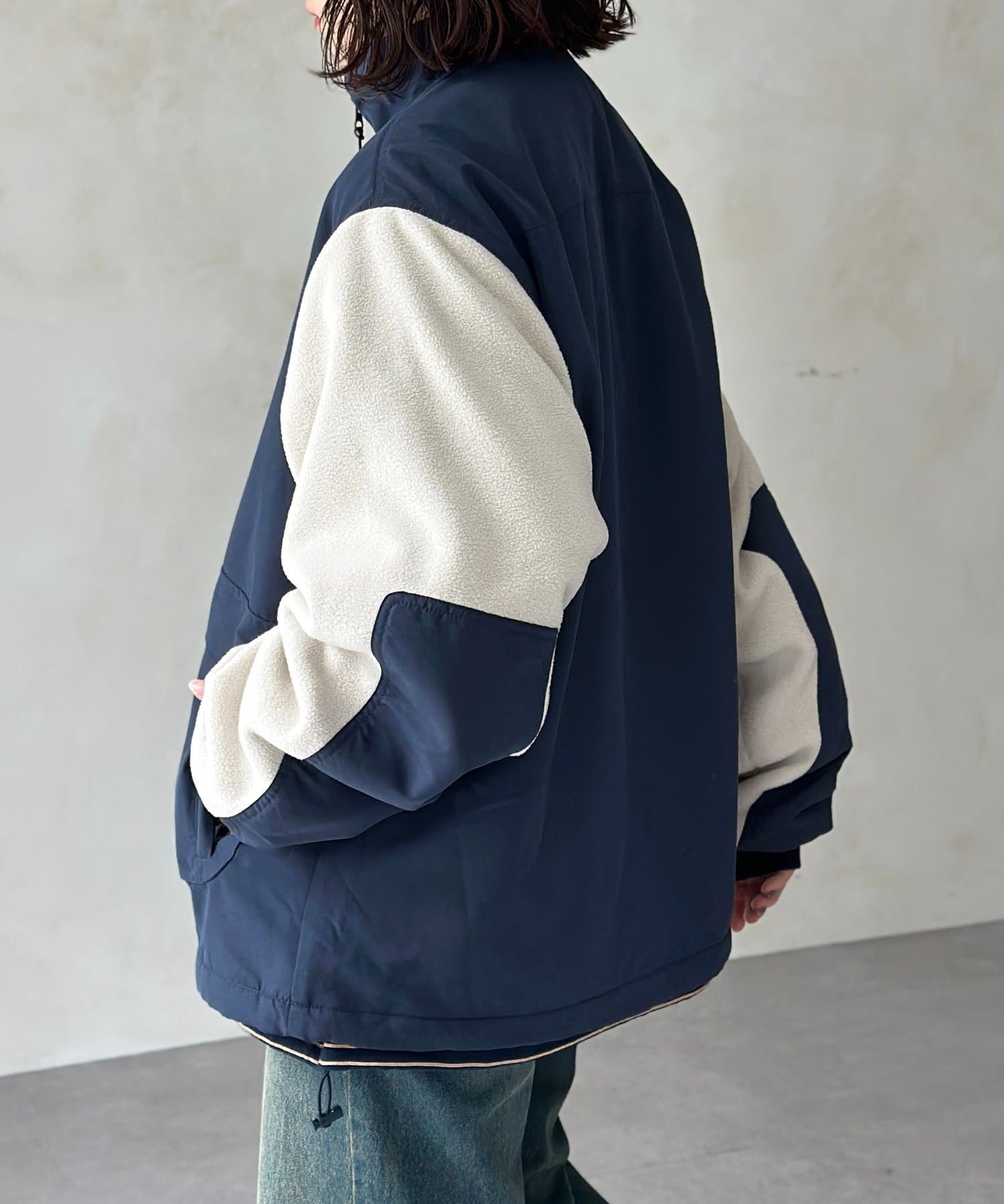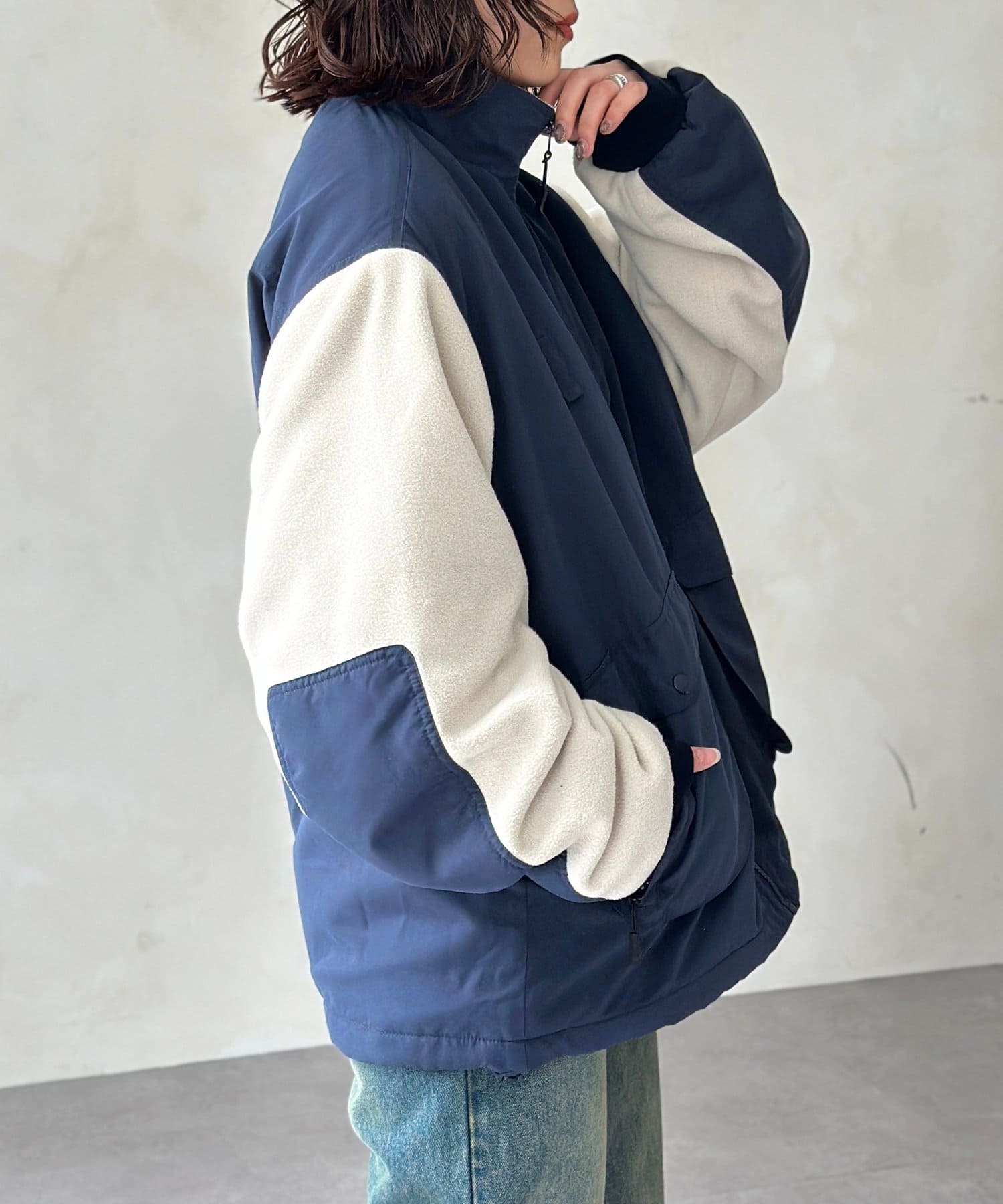 袖のフリース素材が、スタイリングにこなれ感と暖かさをプラスします。