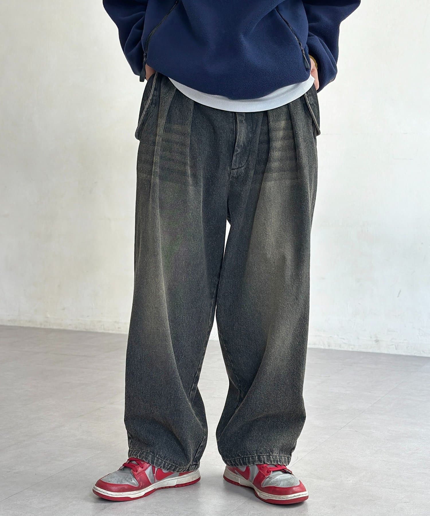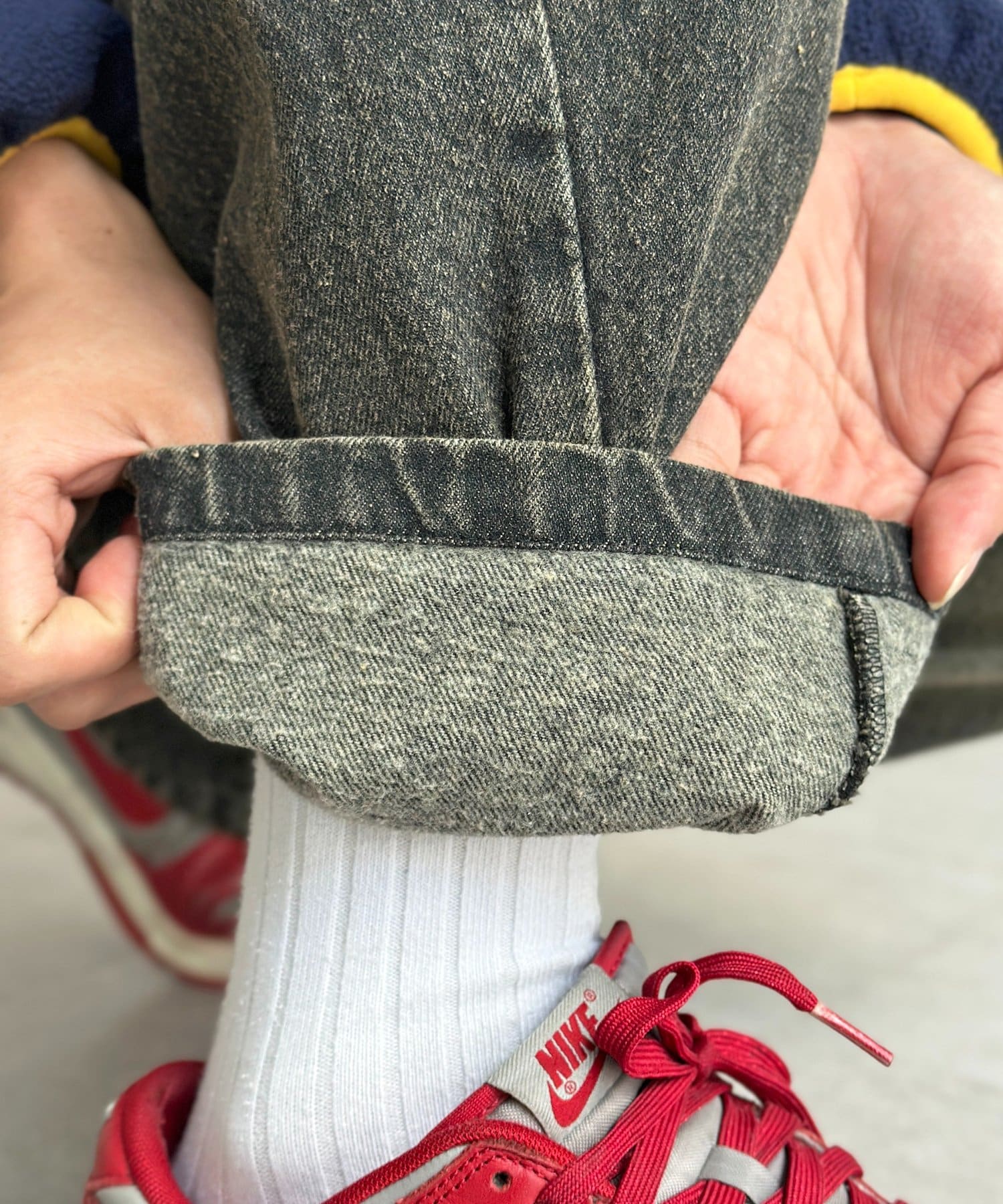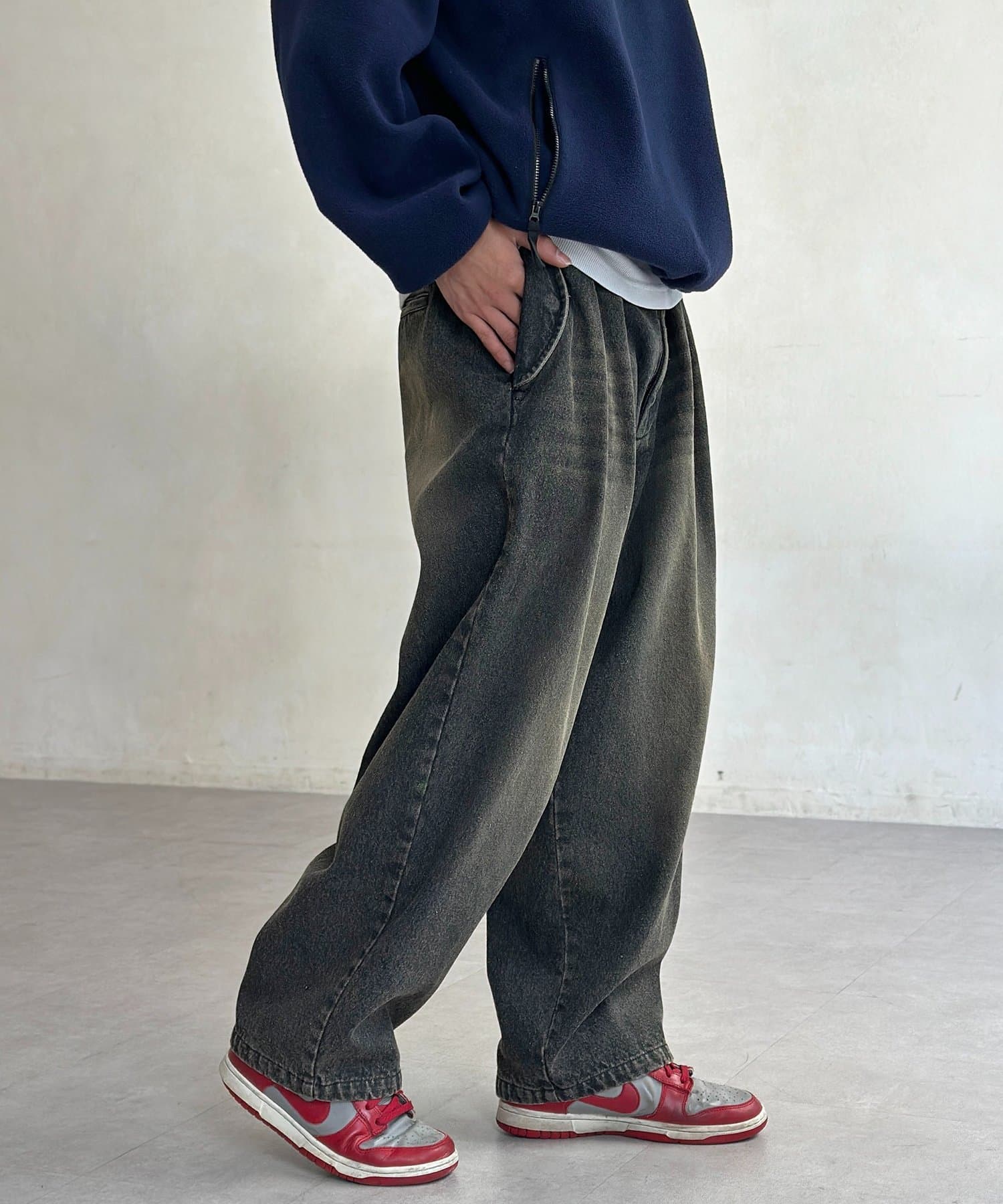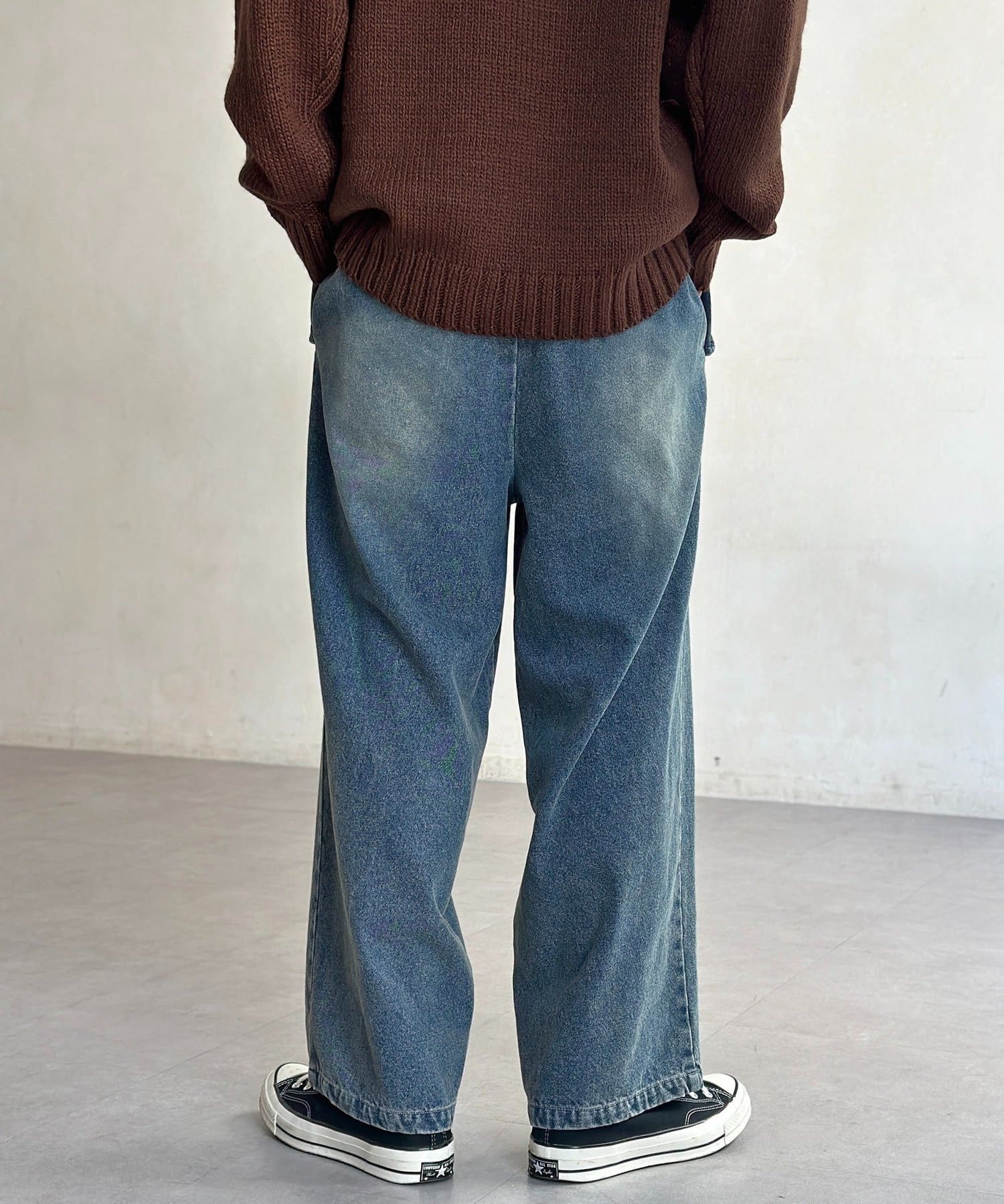 ミリタリー感のあるルーズなシルエットで、冬でも安心して履けるデニムパンツ!