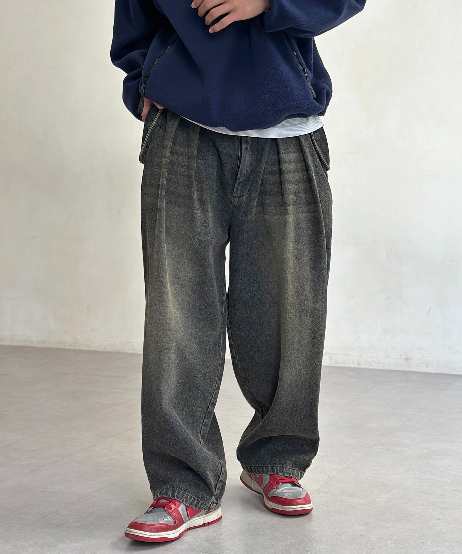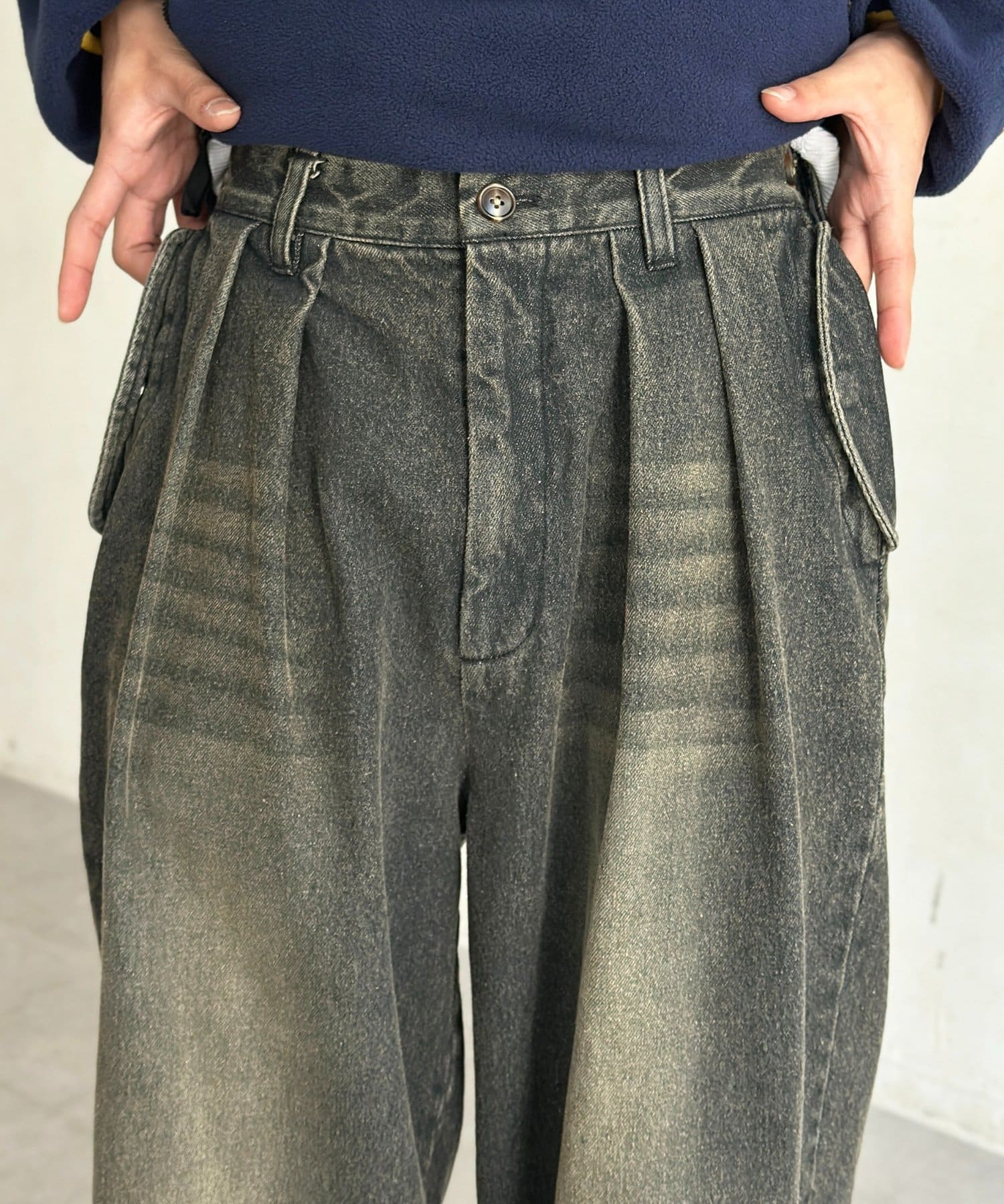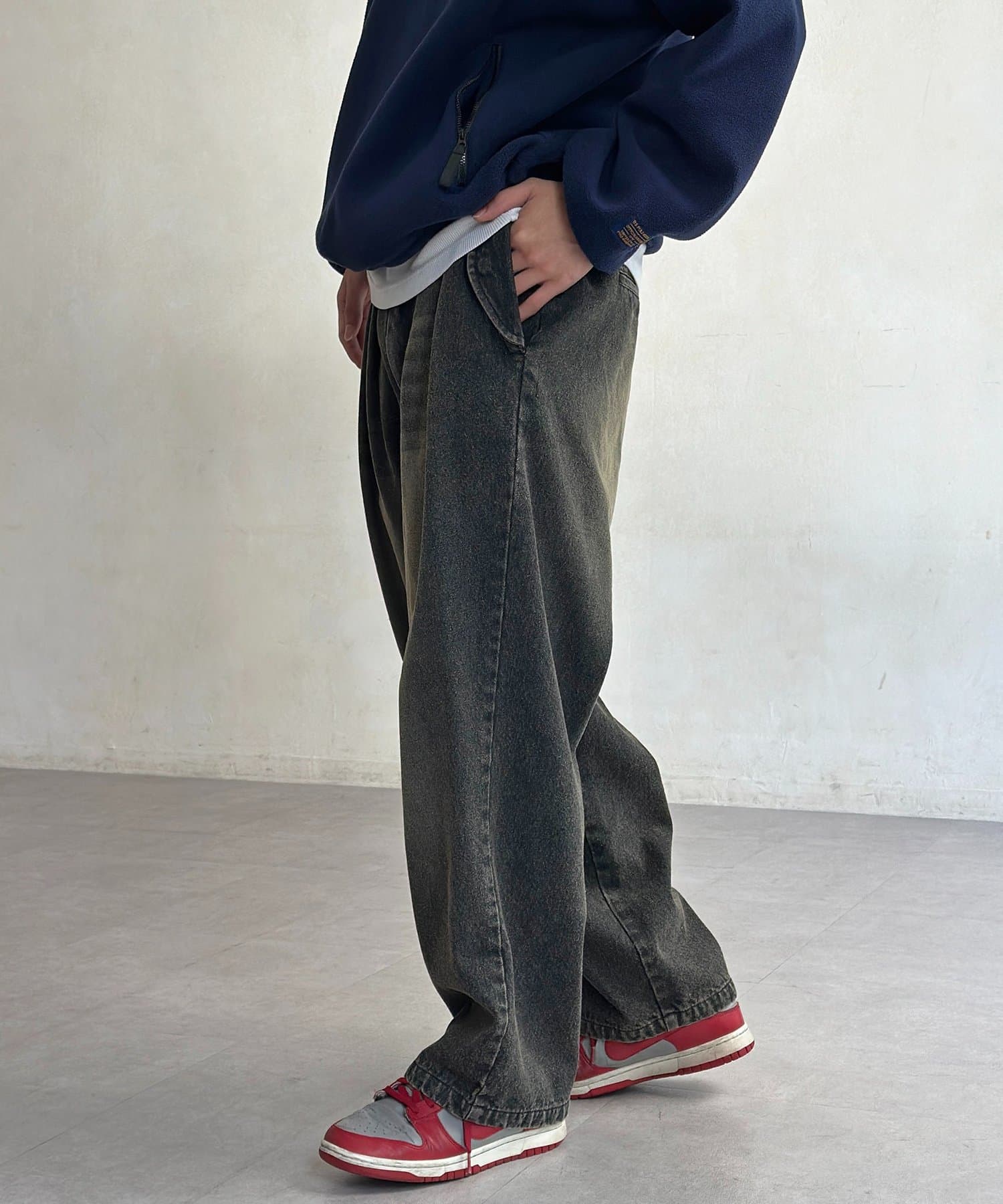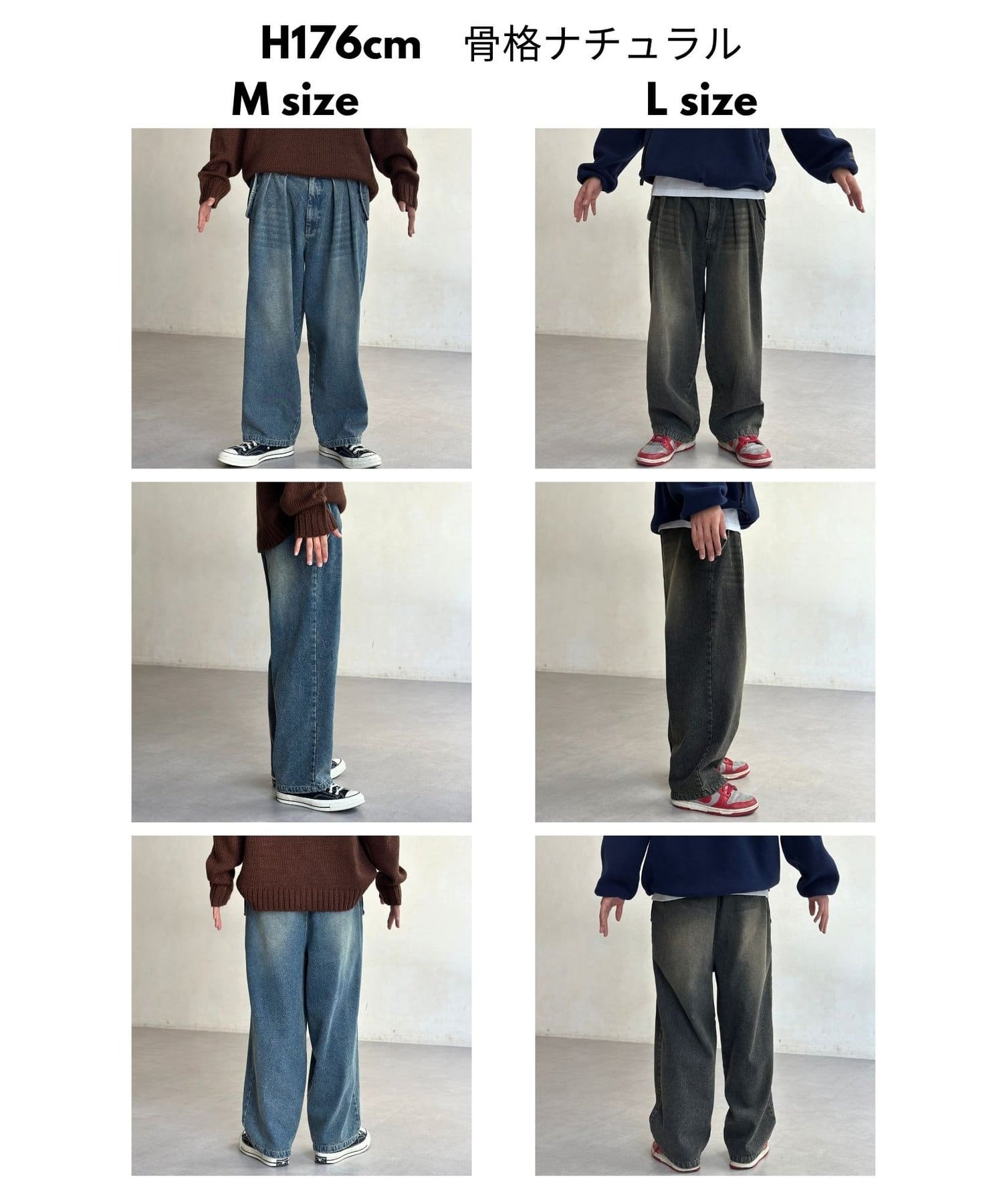 ミリタリー感のあるルーズなシルエットで、冬でも安心して履けるデニムパンツ!