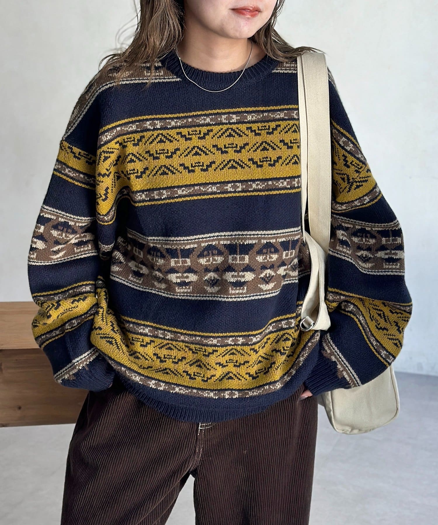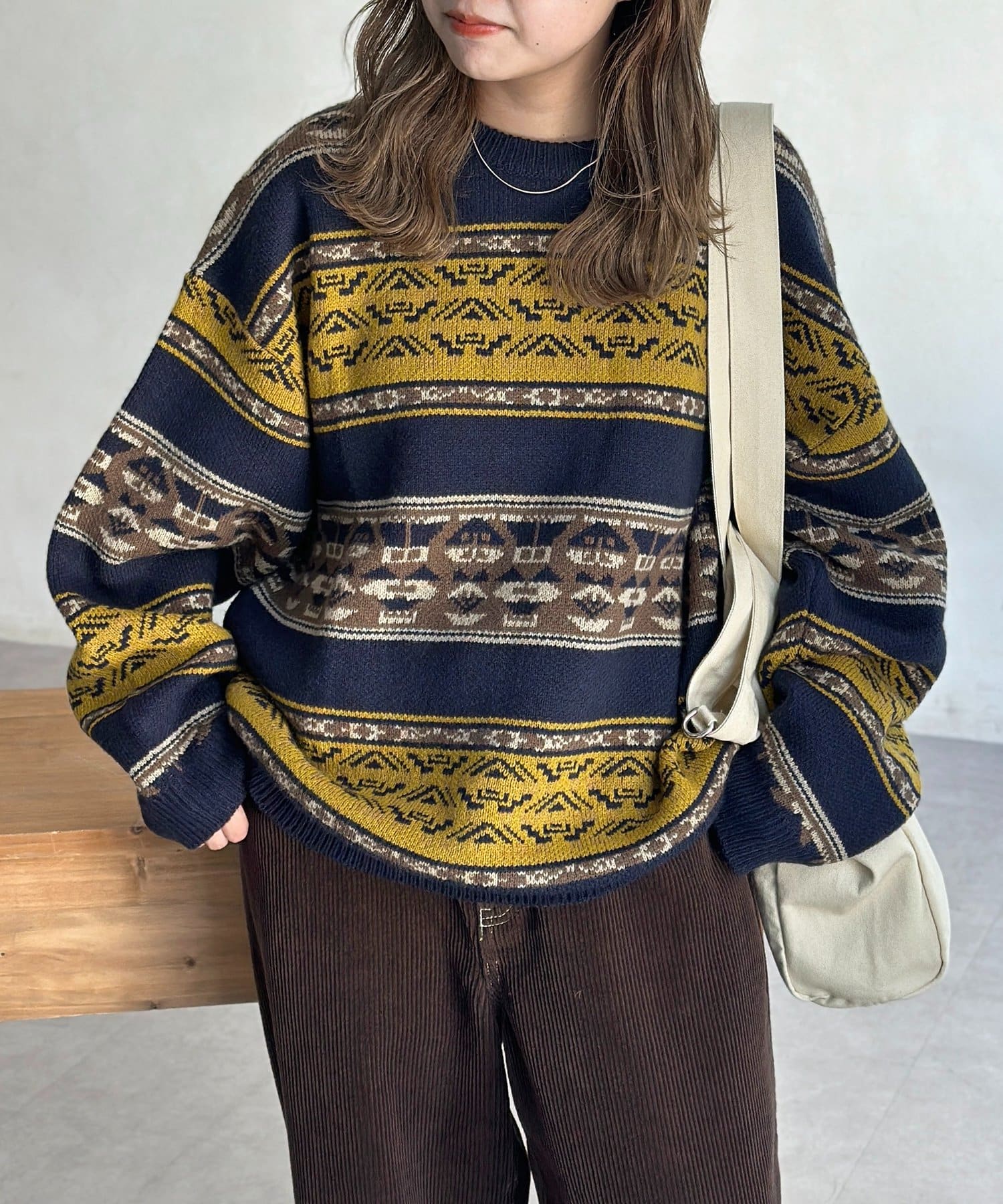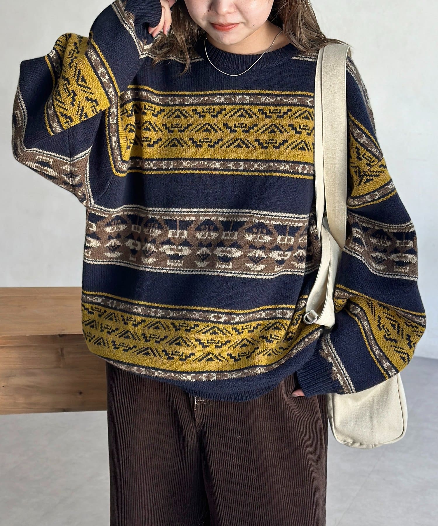 TOP > CPCM > レディース > トップス > ニット/セーター > レトロボーダージャガードニットプルオーバー