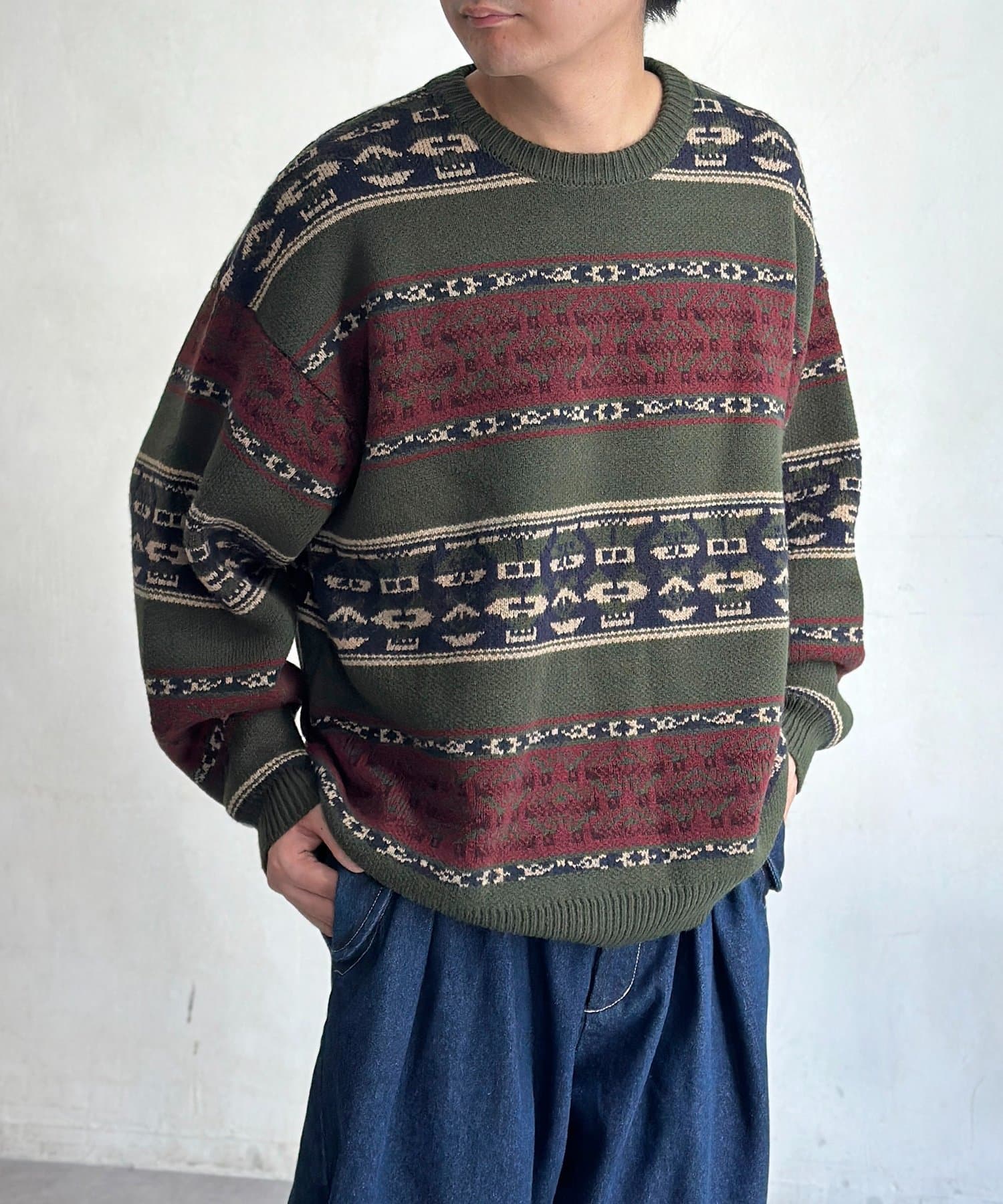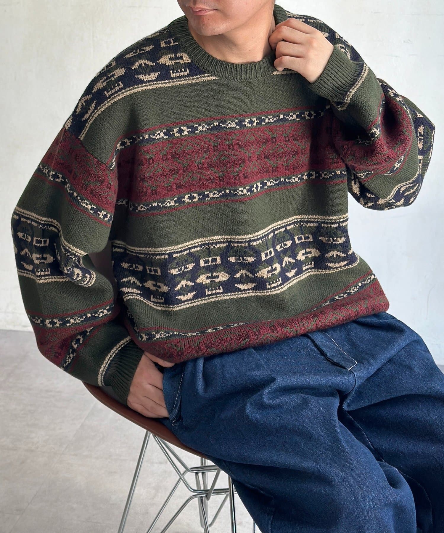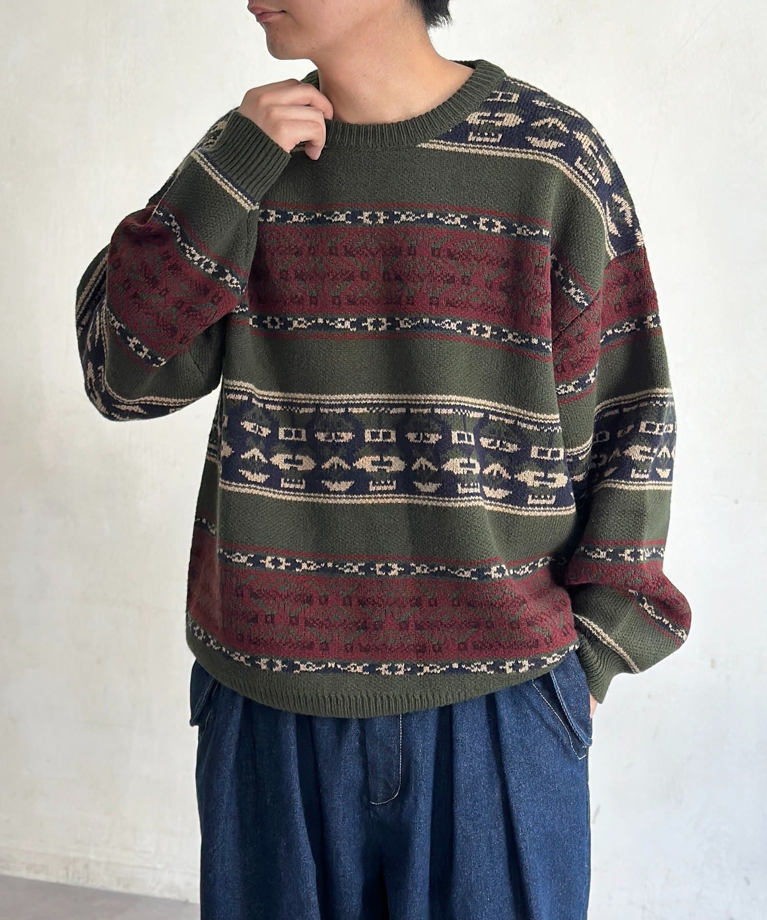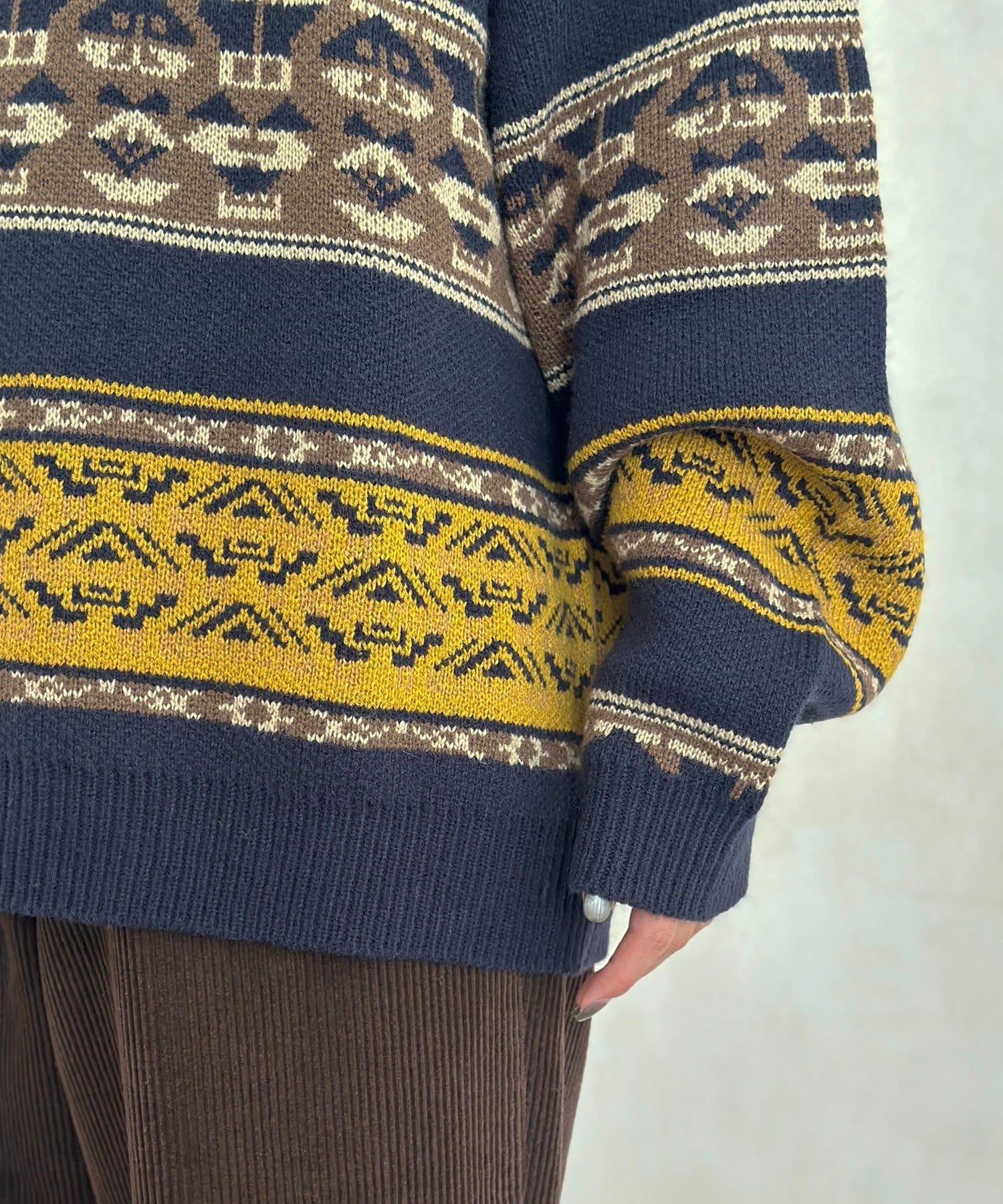 • CPCM(シーピーシーエム) レトロボーダージャガードニットプルオーバー