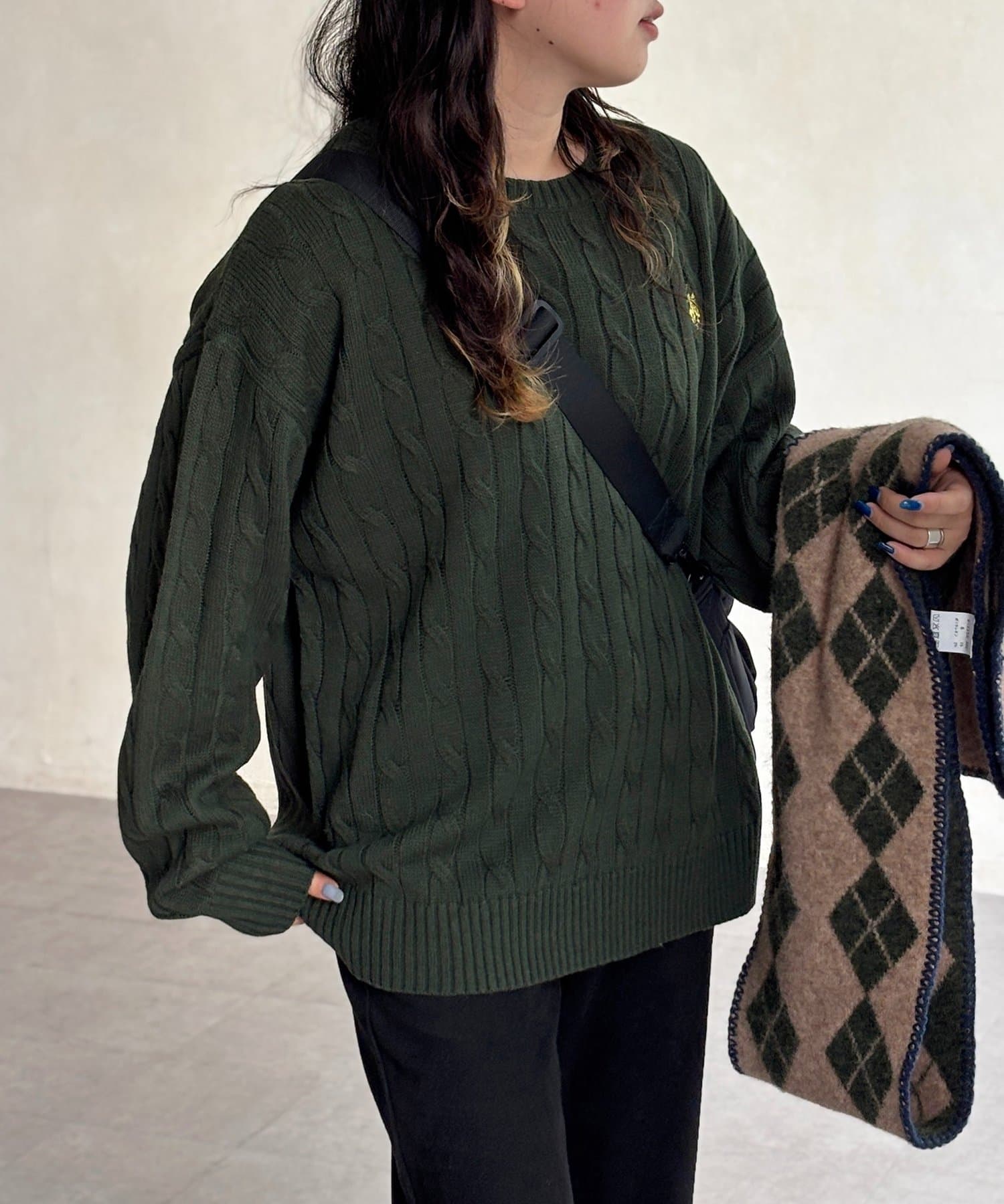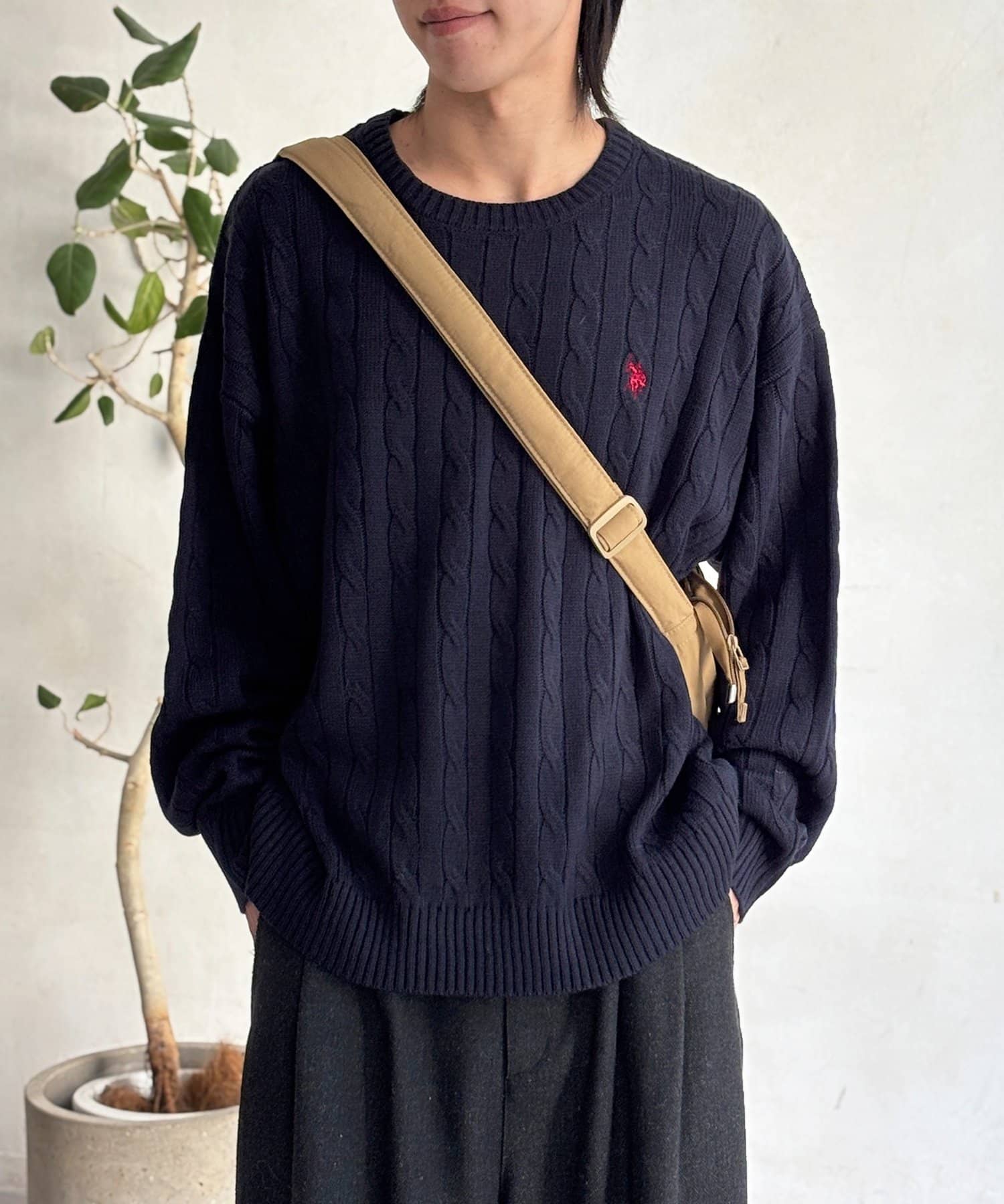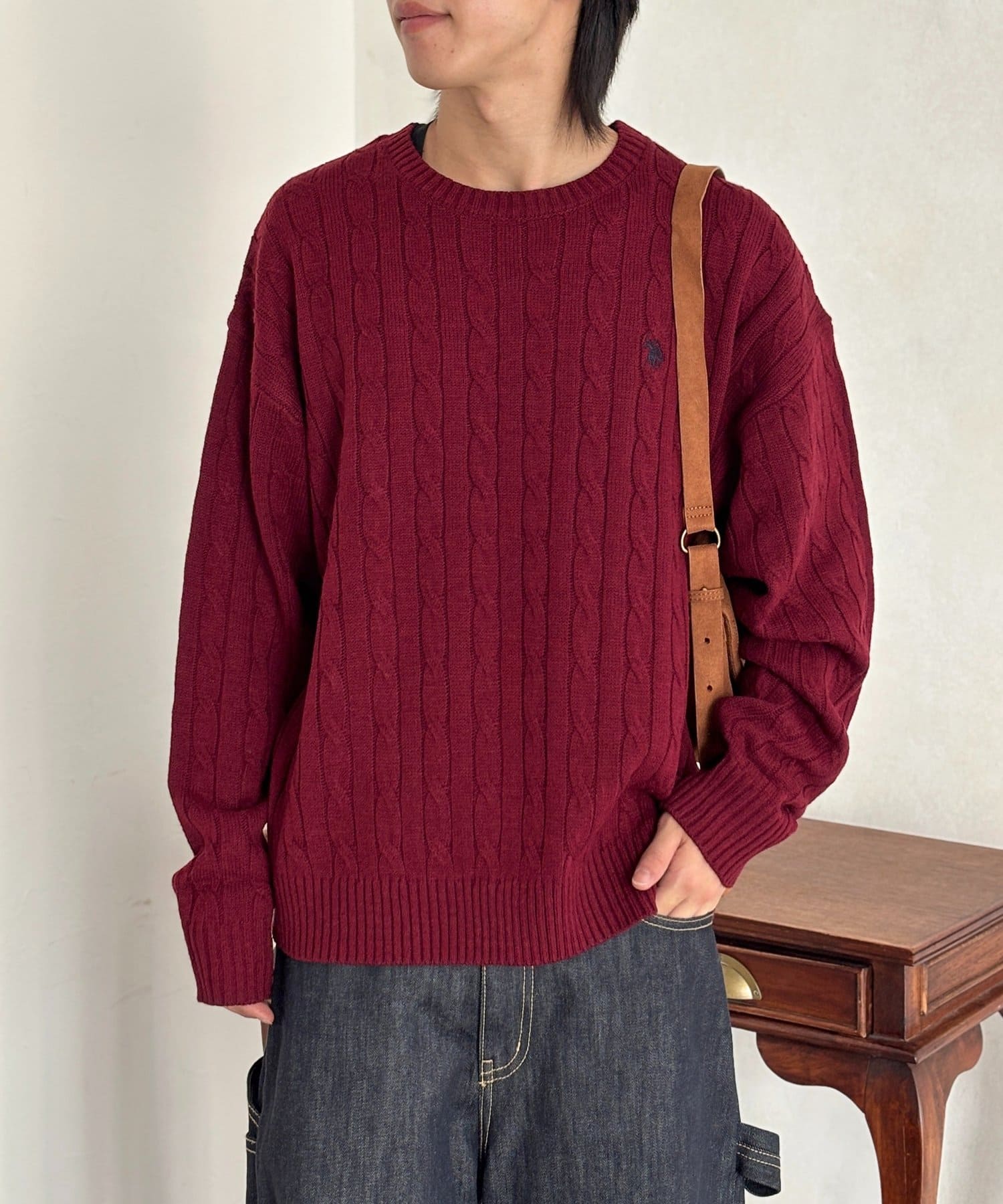 【U.S. POLO ASSN. 】1ポイント刺繍ケーブルニットプルオーバー