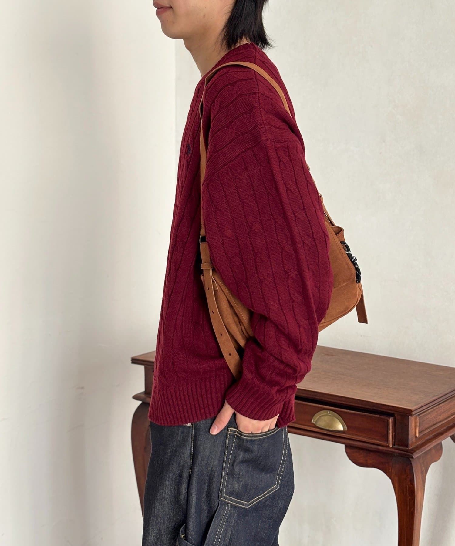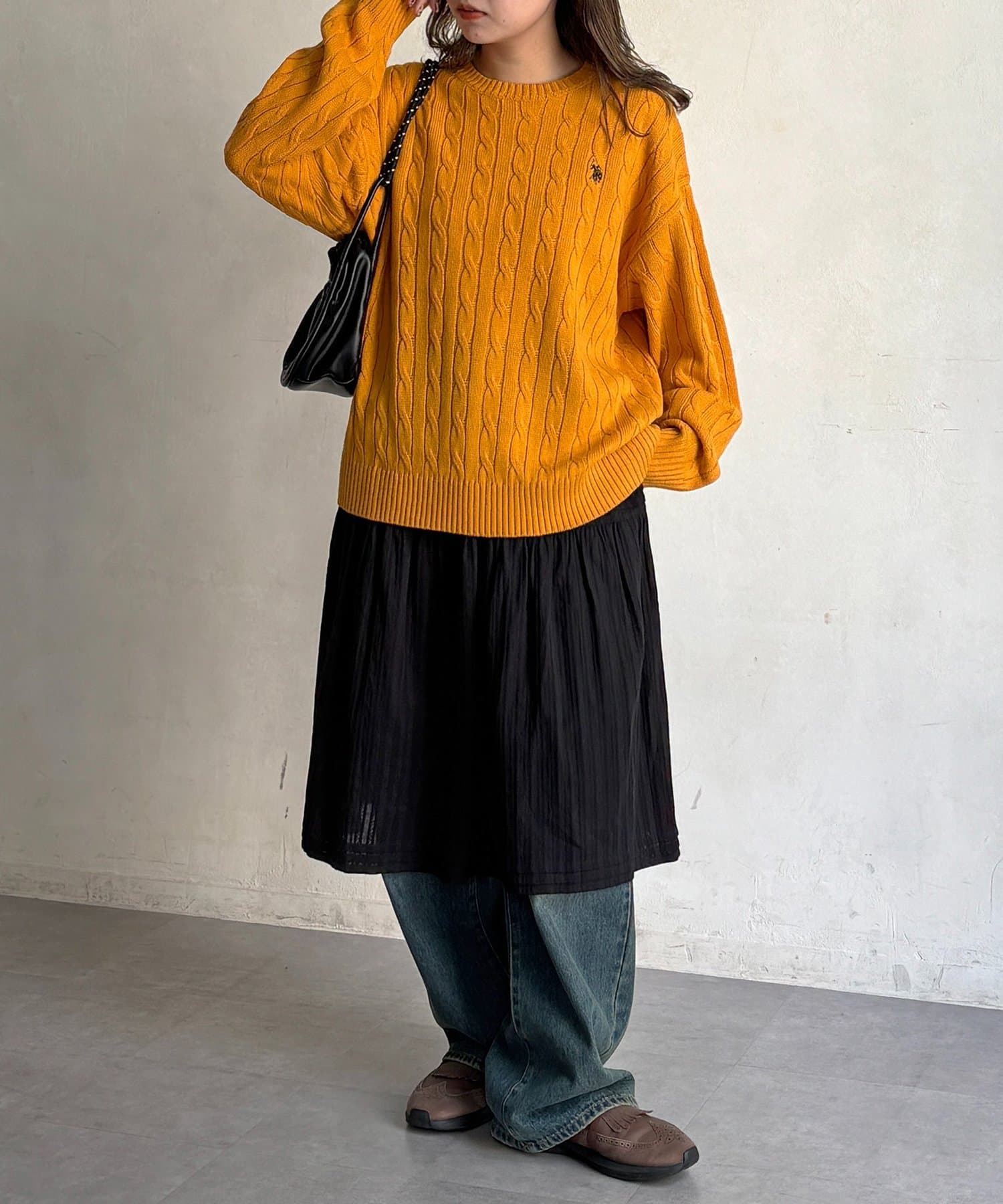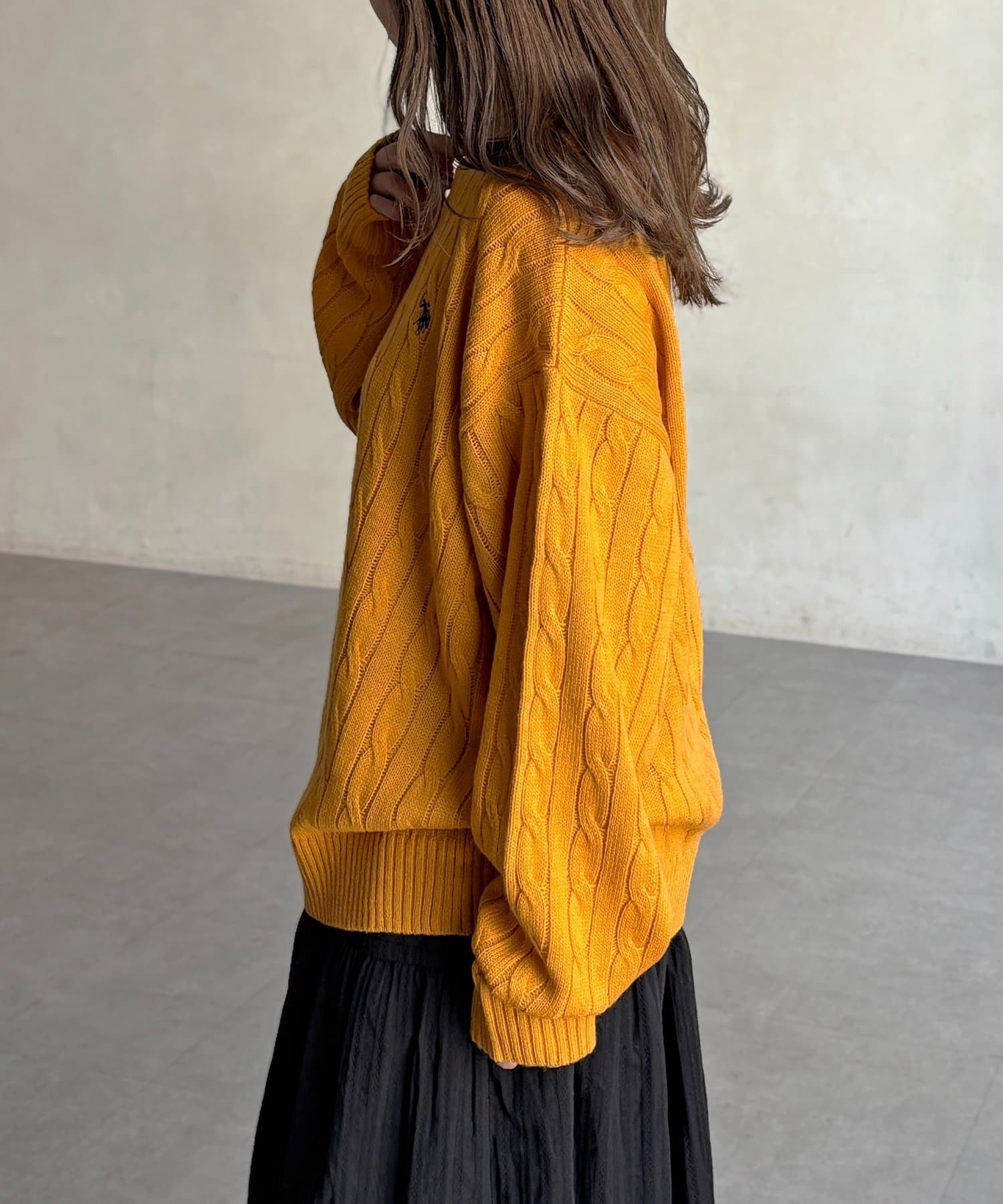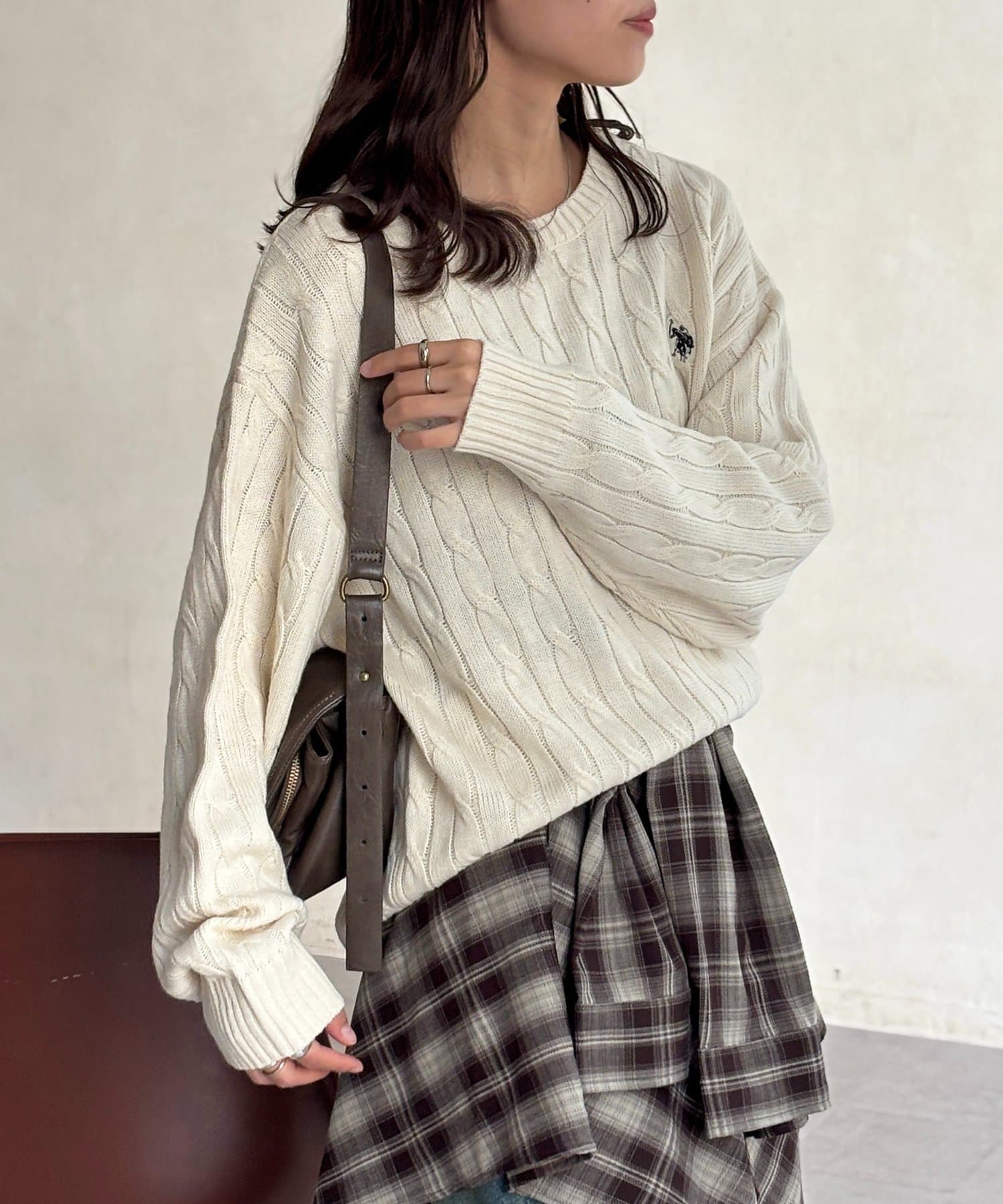 【U.S. POLO ASSN. 】1ポイント刺繍ケーブルニットプルオーバー