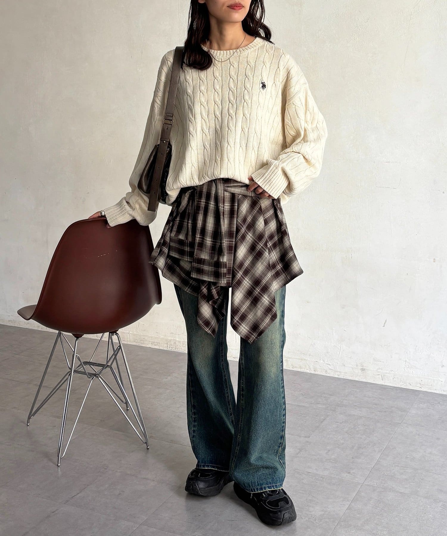 カジュアルながらも上品な印象を与えてくれる、大人っぽケーブルニット
