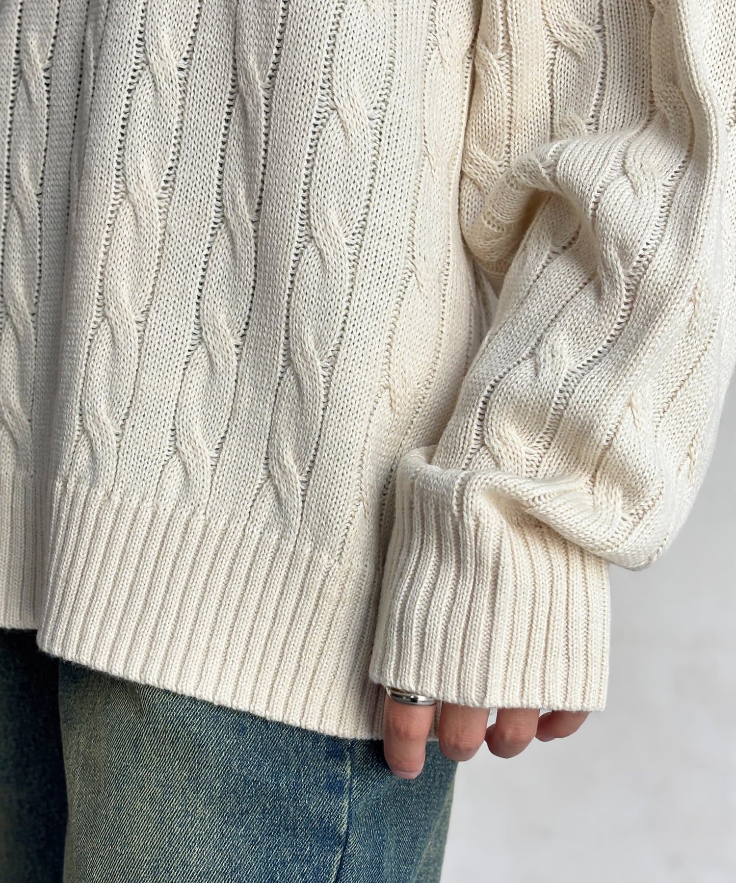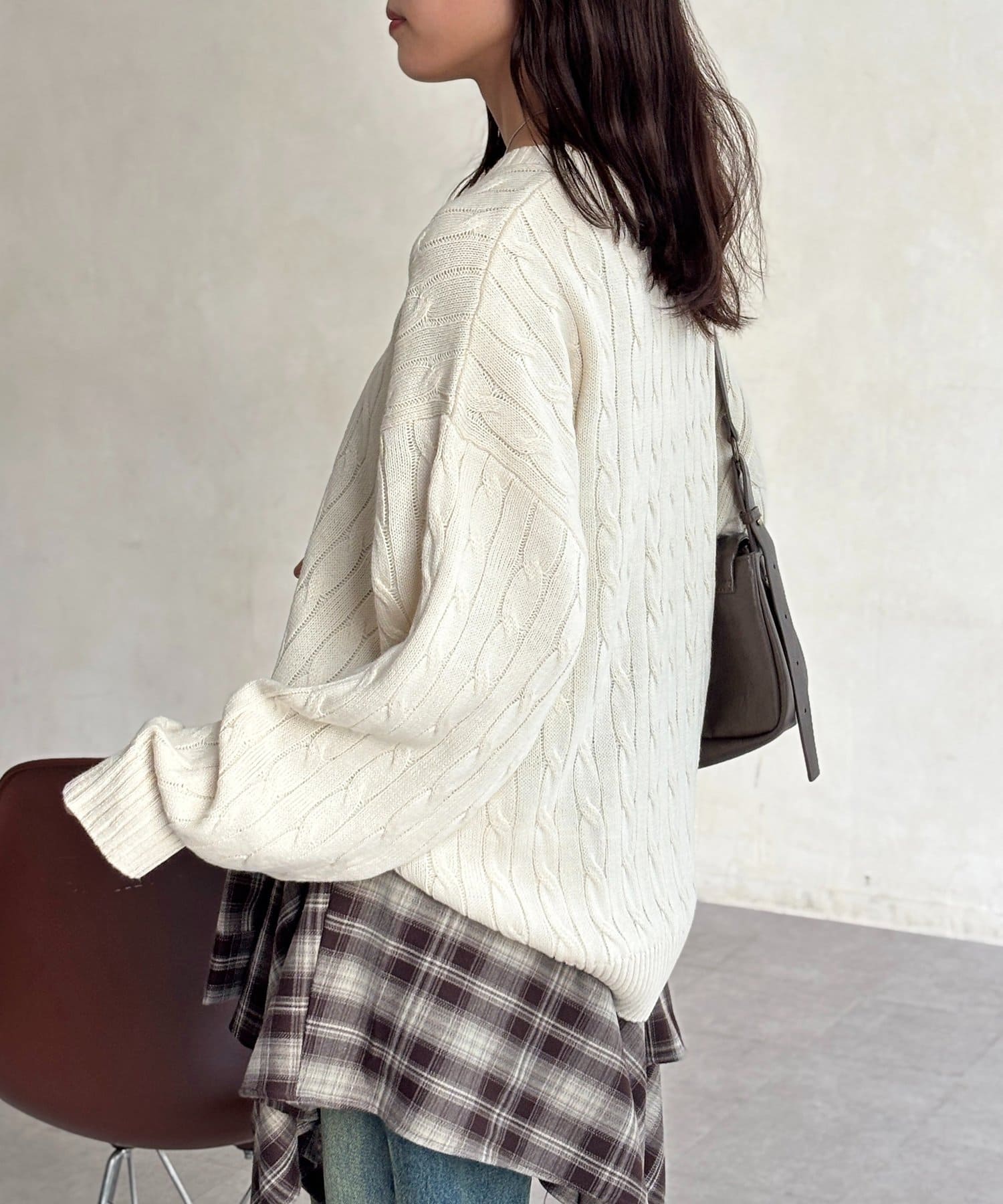 ・存在感のあるケーブル編みで、シンプルながらも表情豊かな印象に