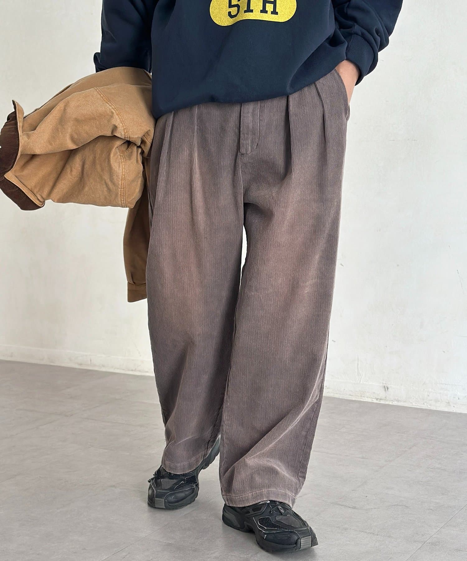 風合い豊かなフェード感のあるコーデュロイ生地で、こなれた印象を演出してくれるイージーパンツ!