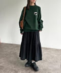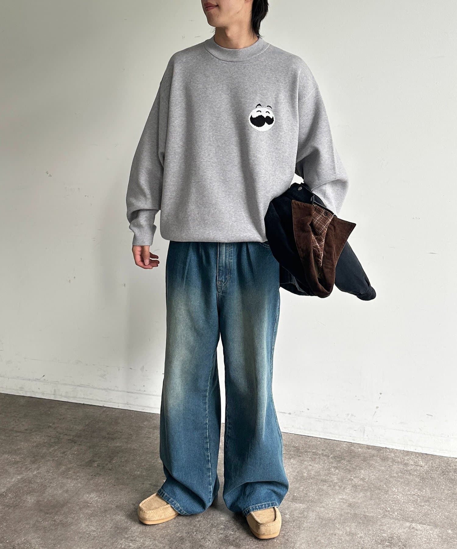・デニムパンツと合わせて、大人カジュアルスタイル。足元はスニーカーでラフに決めて。