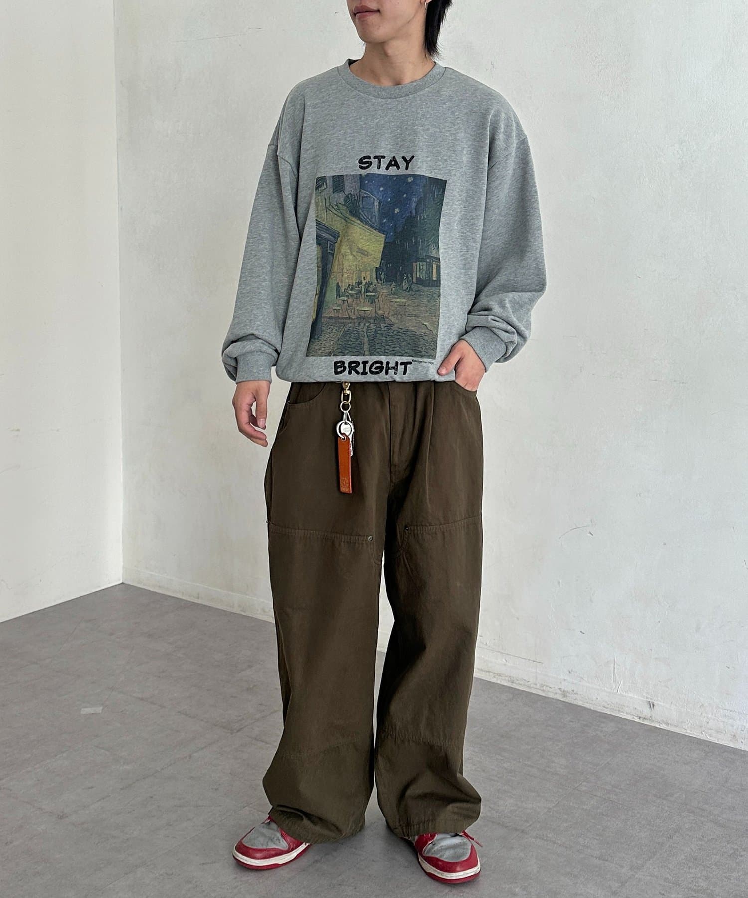 ・ルーズなパンツを合わせて、トレンド感のあるスタイルに