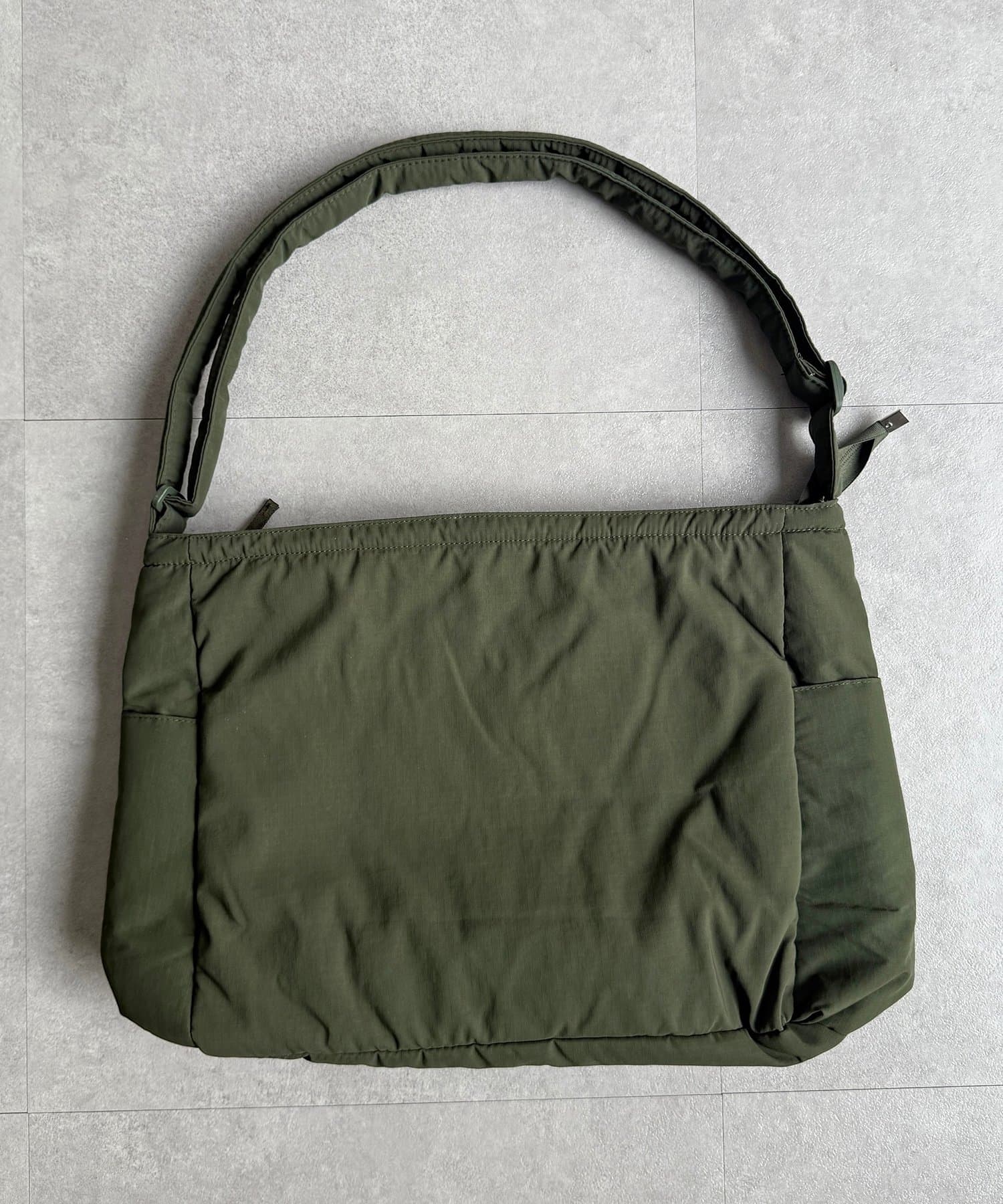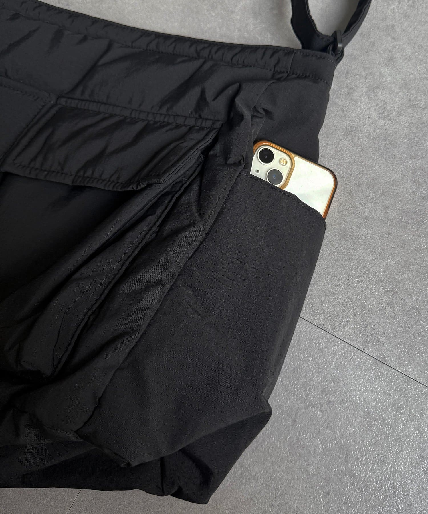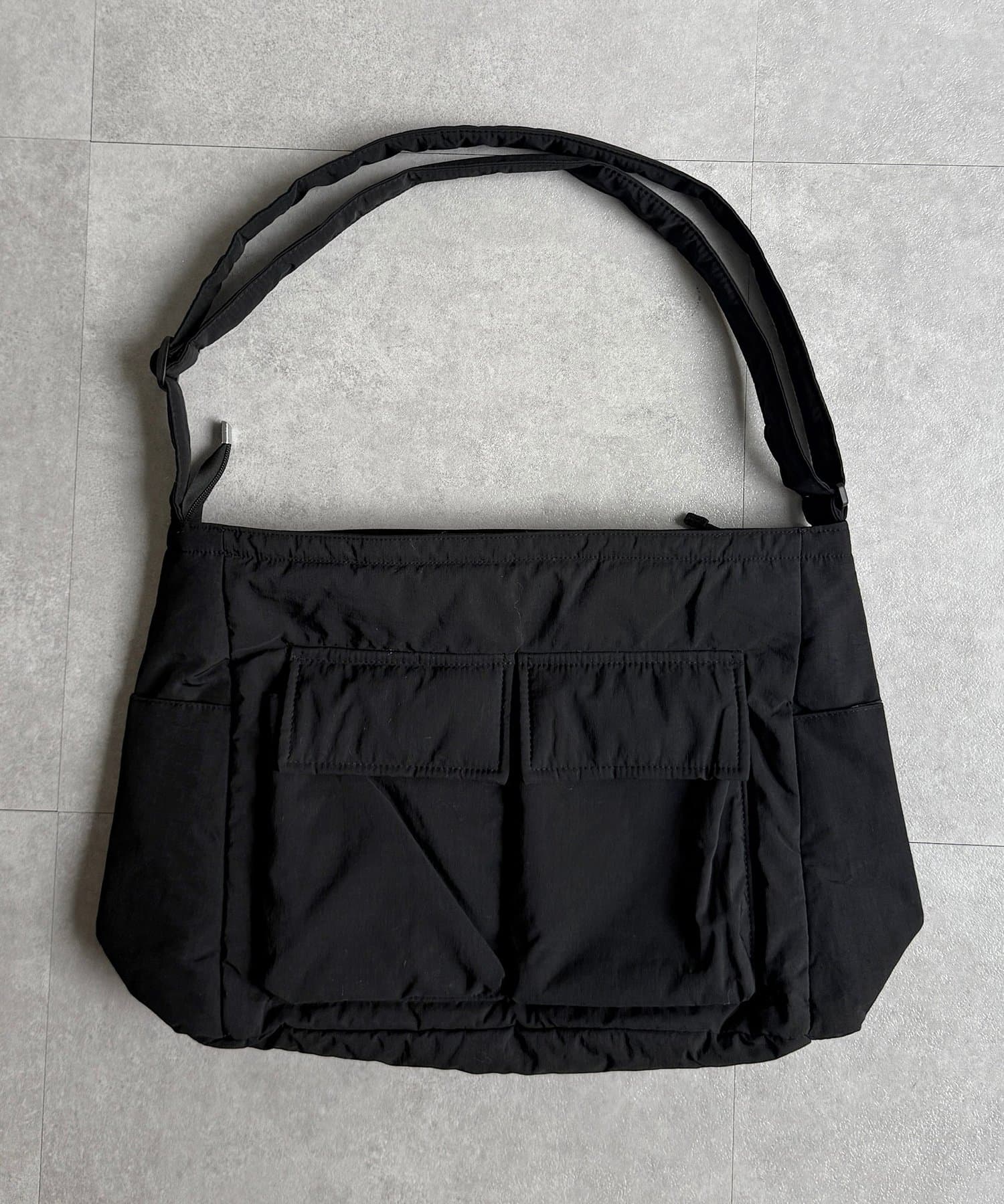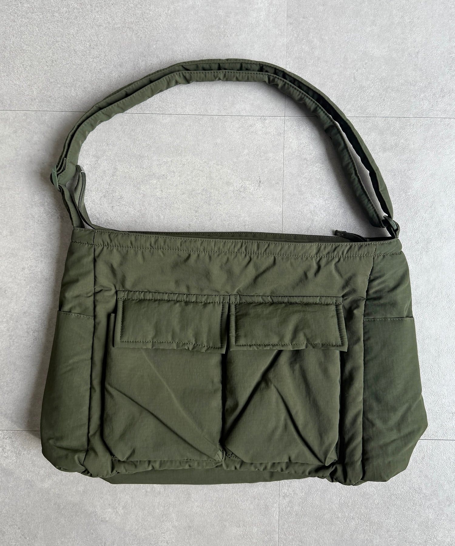 大きめのポケットが特徴的な大容量ショルダーバッグ!