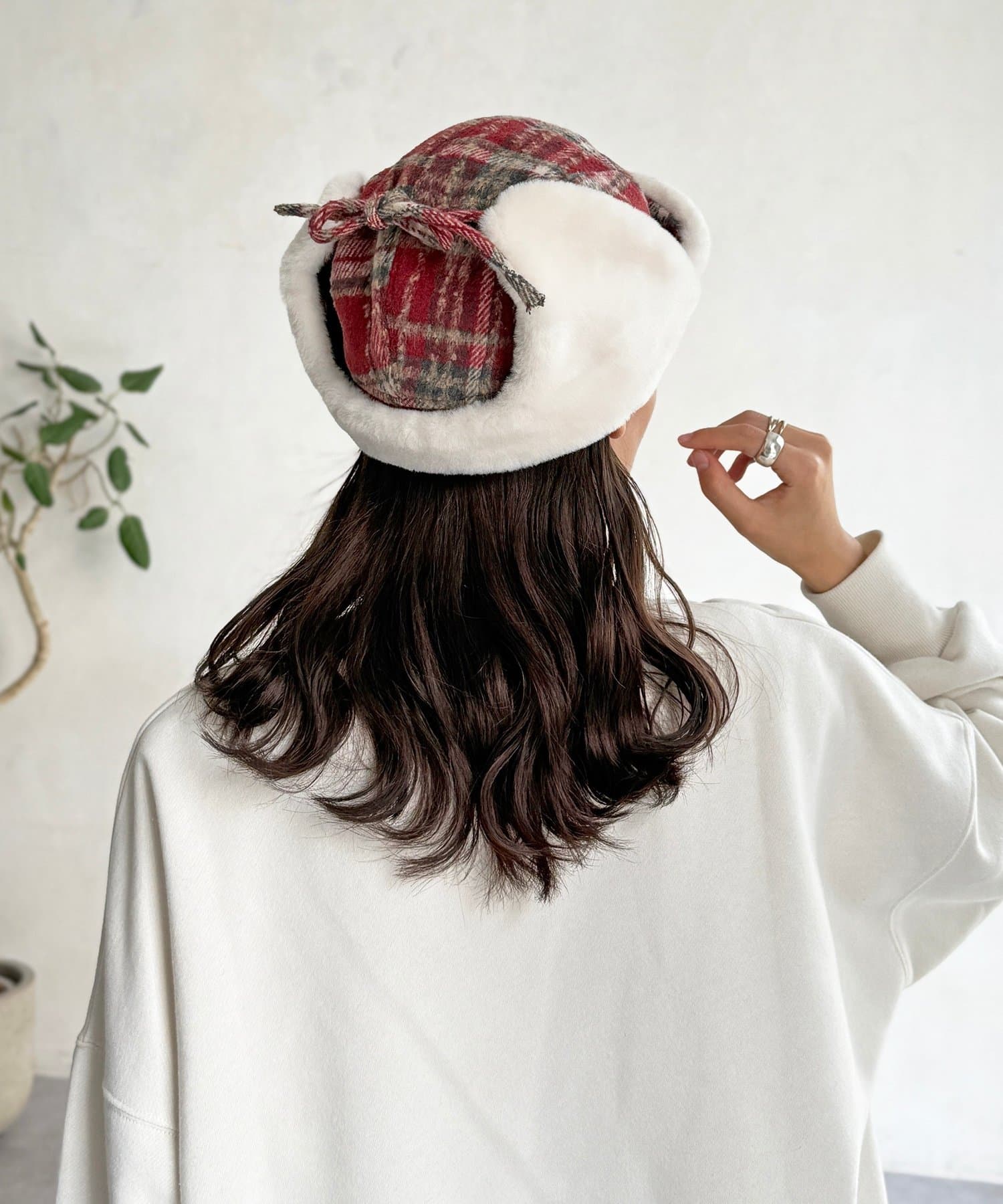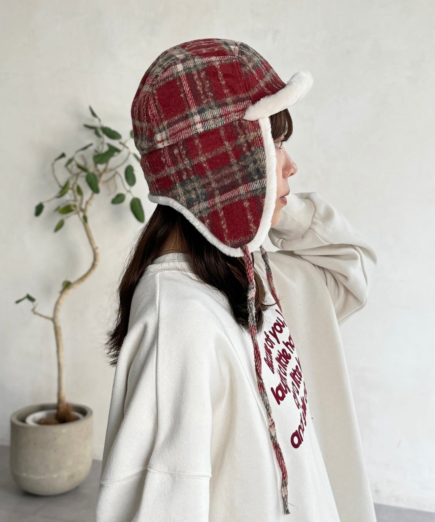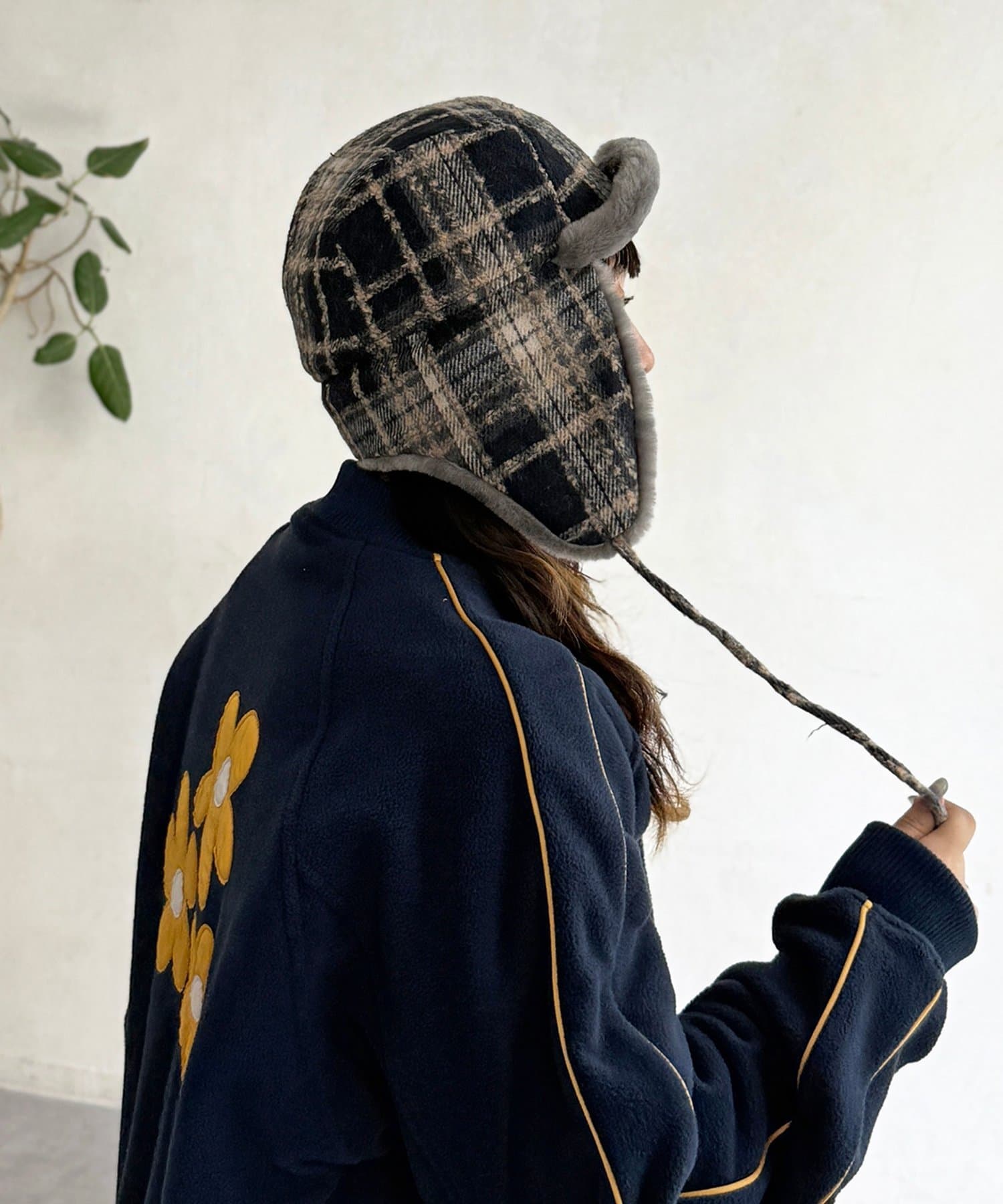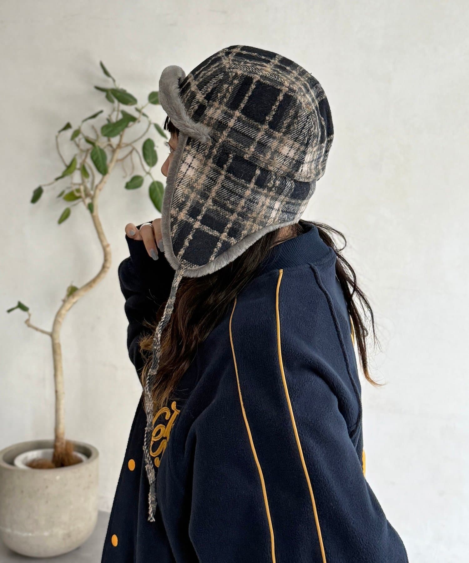 季節感のあるチェック柄がアクセントのフライトキャップ