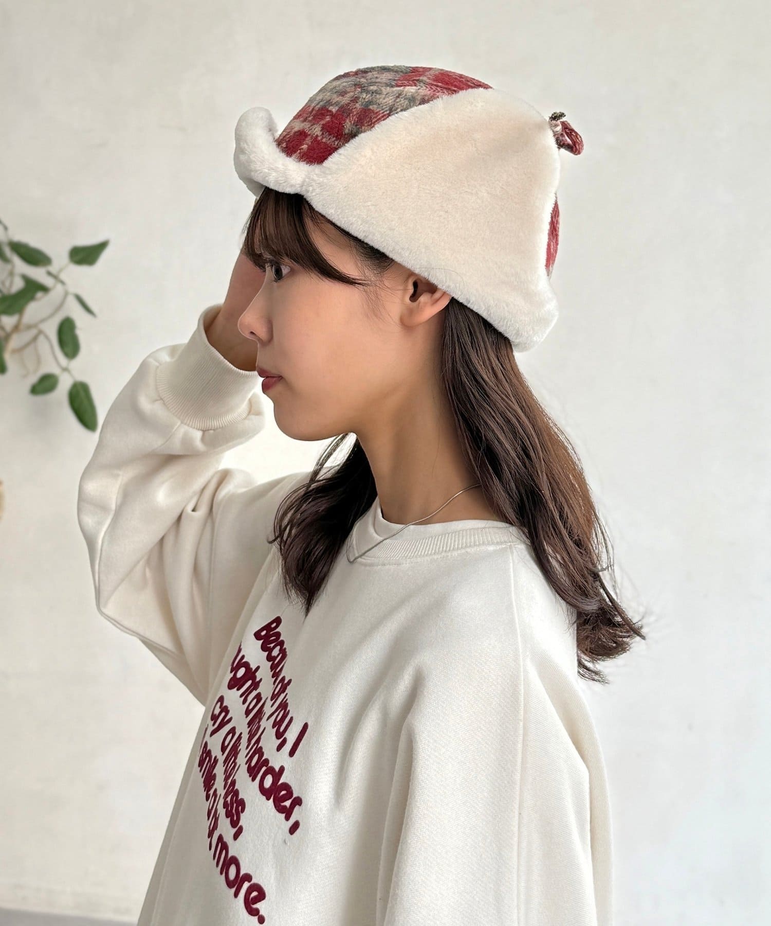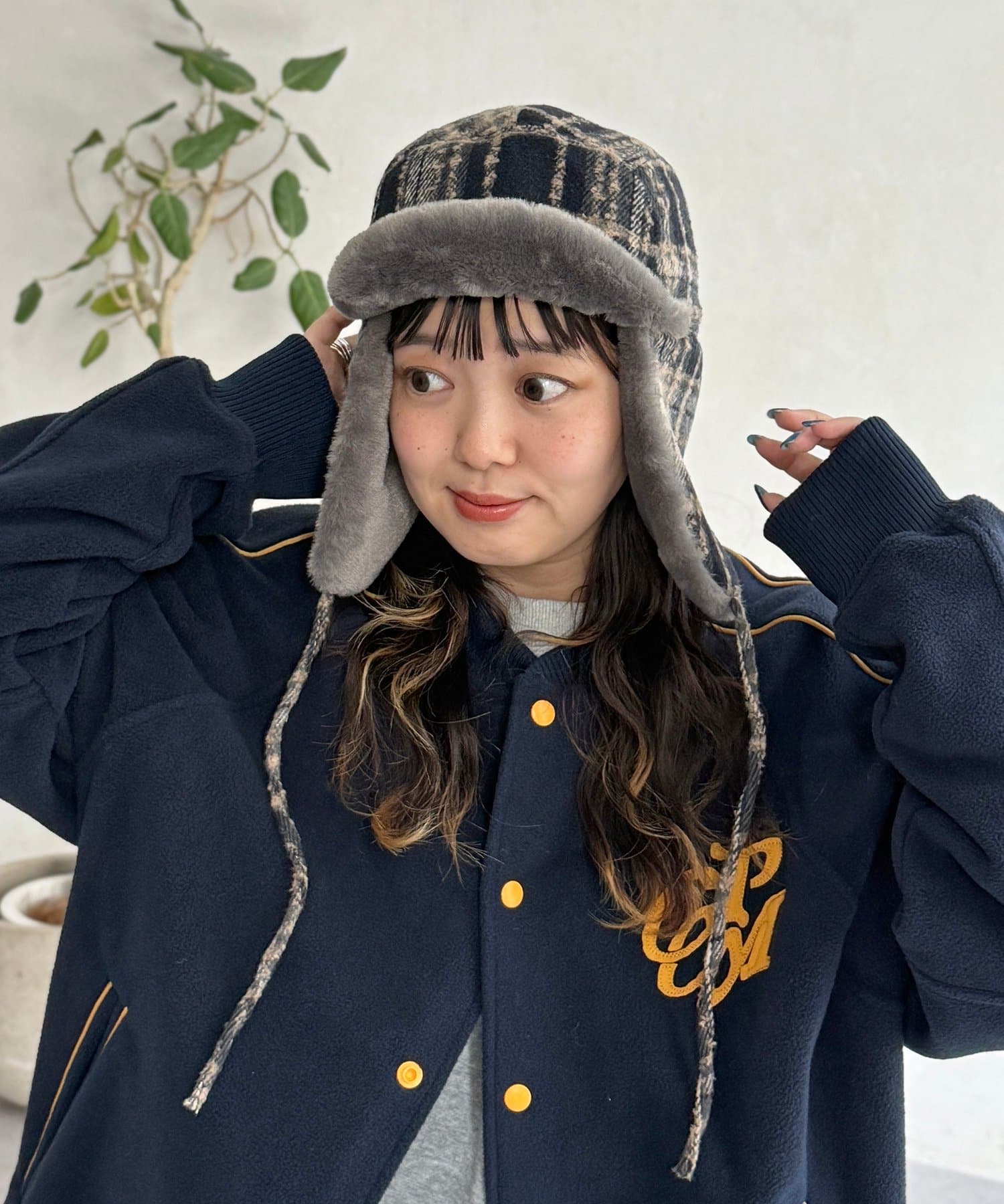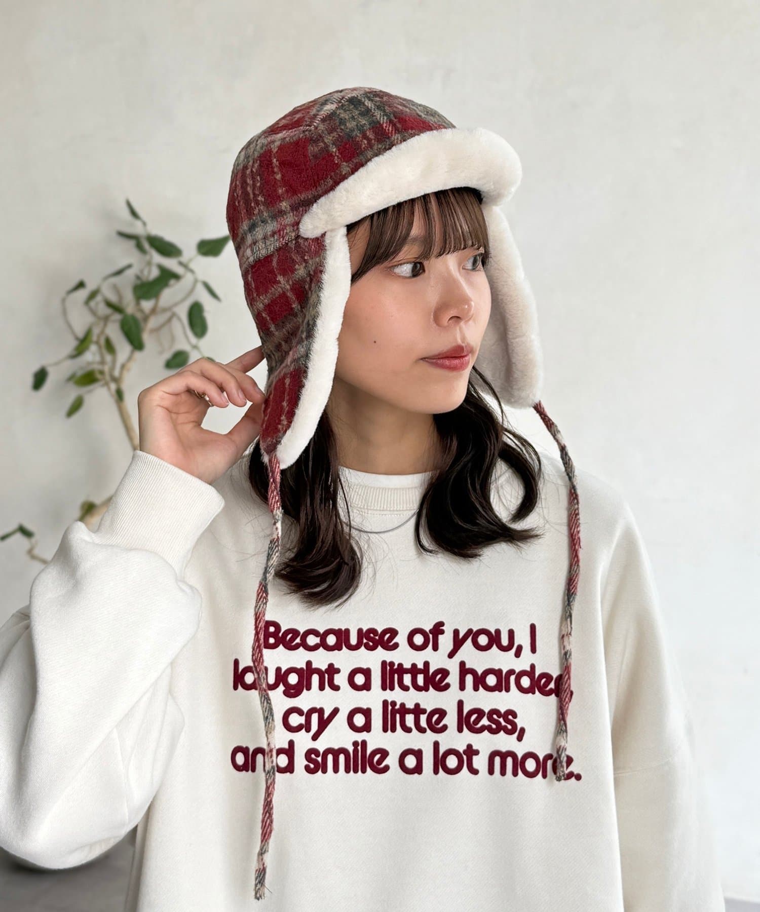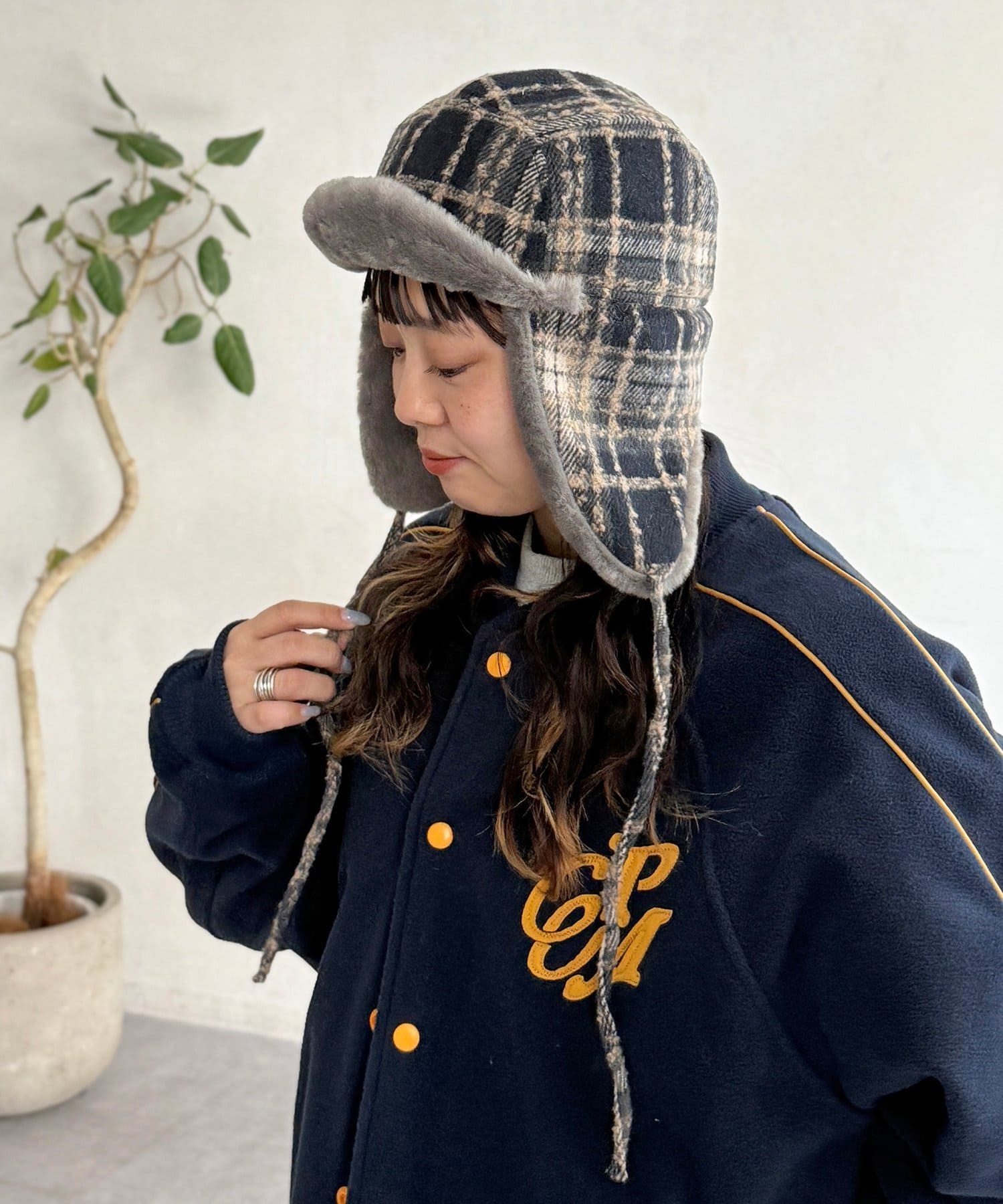 季節感のあるチェック柄がアクセントのフライトキャップ