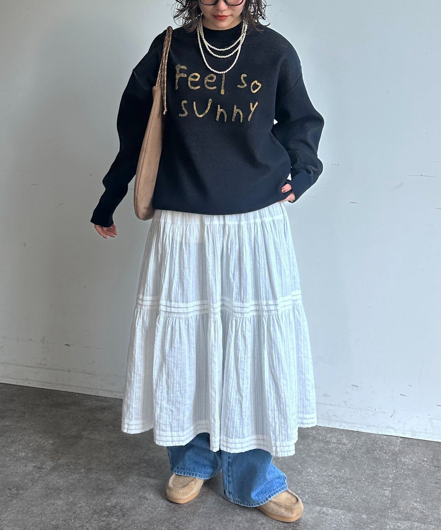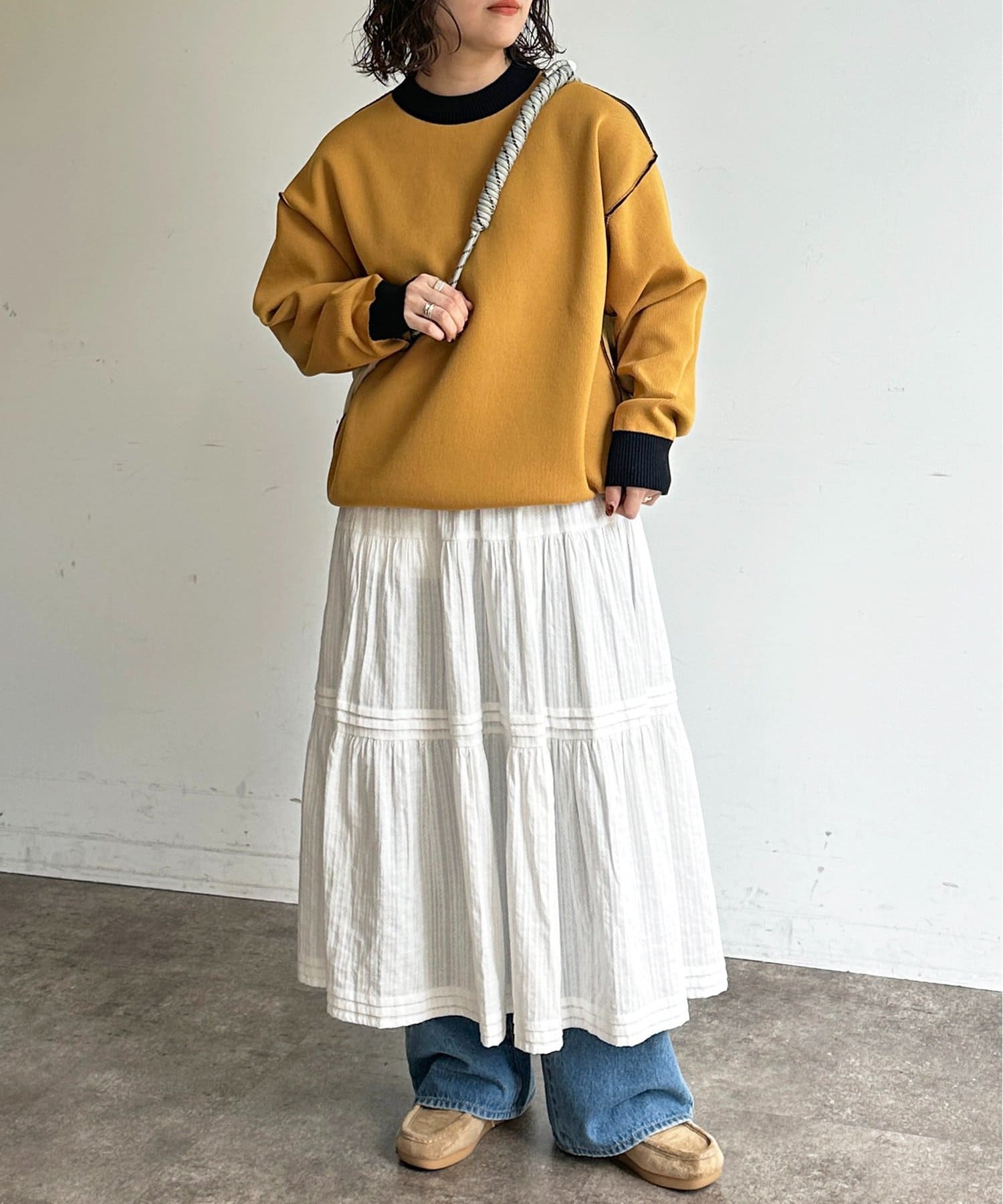 ・ロングスカートをレイヤードした大人カジュアルスタイル