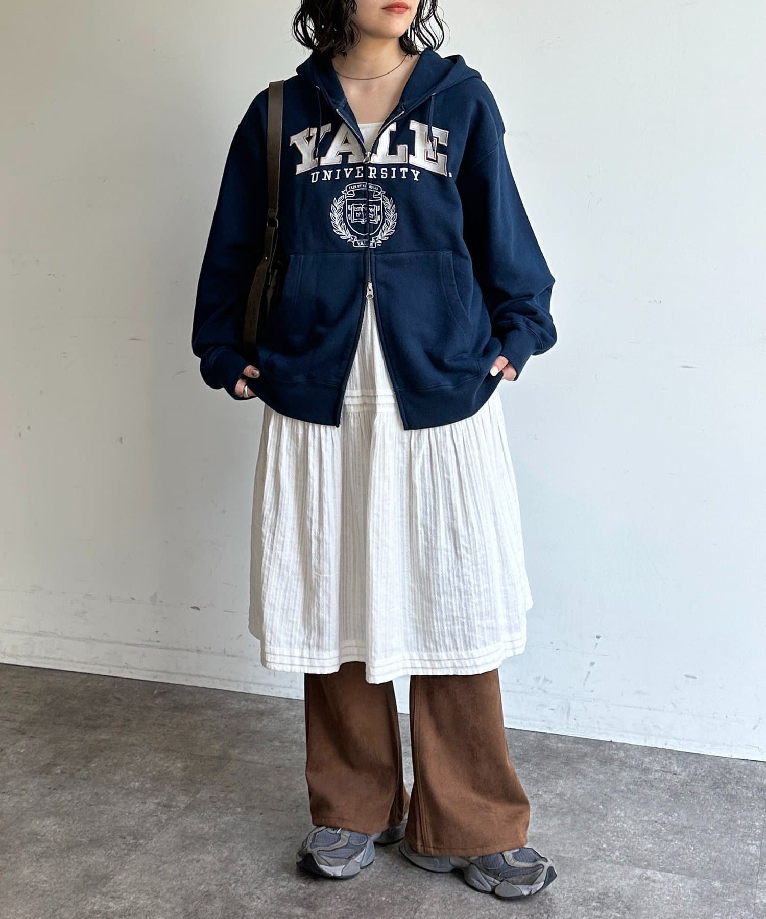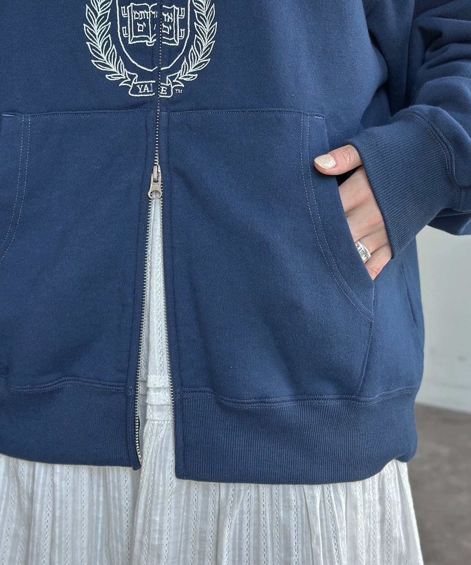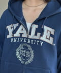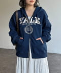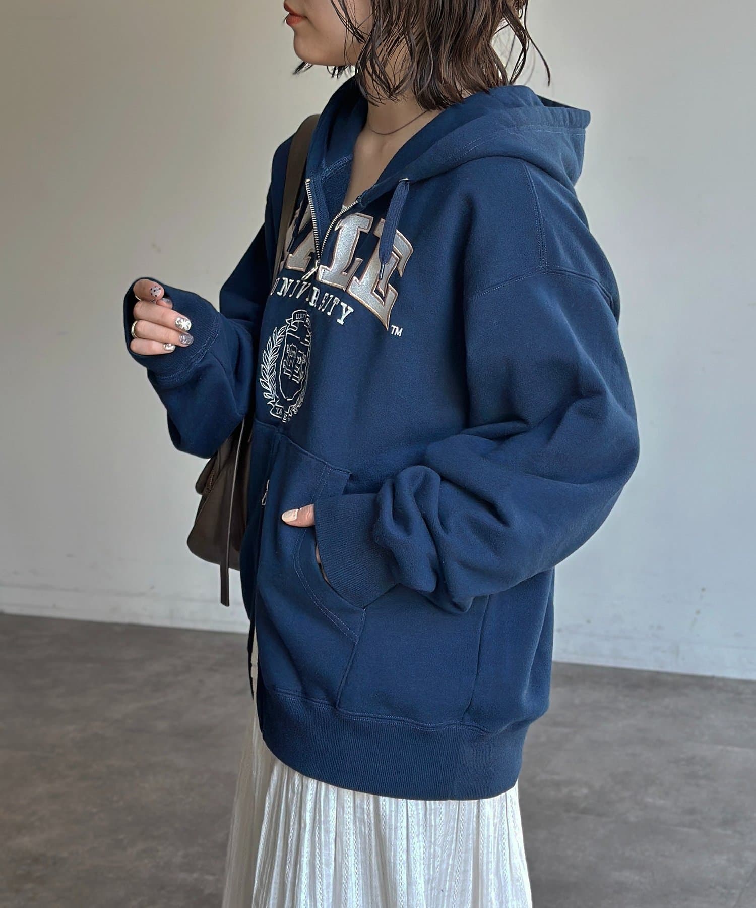 大きめのカレッジロゴが目を引くジップアップパーカー!