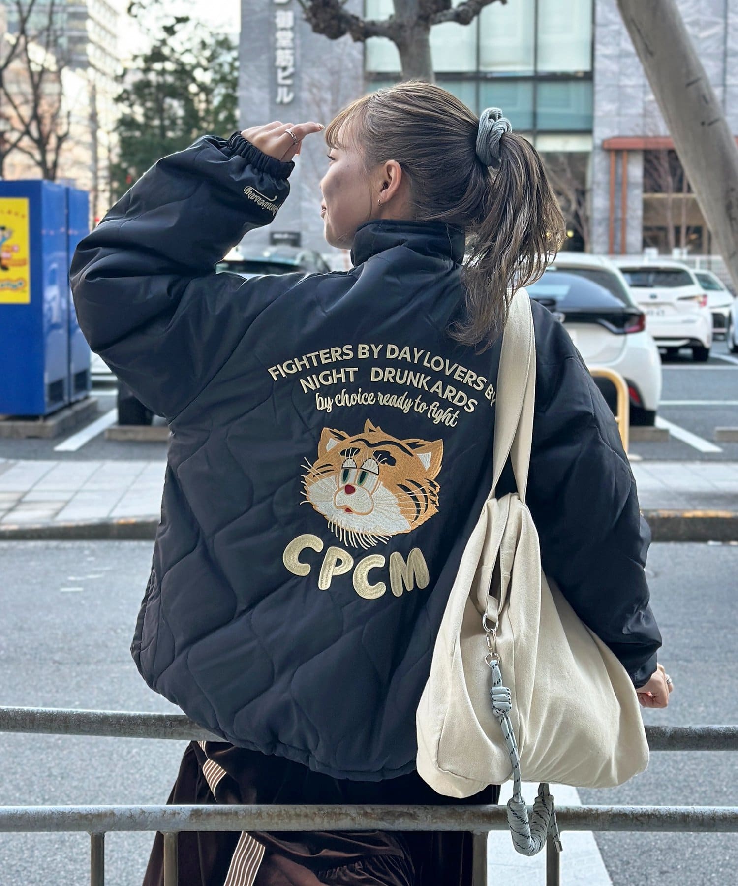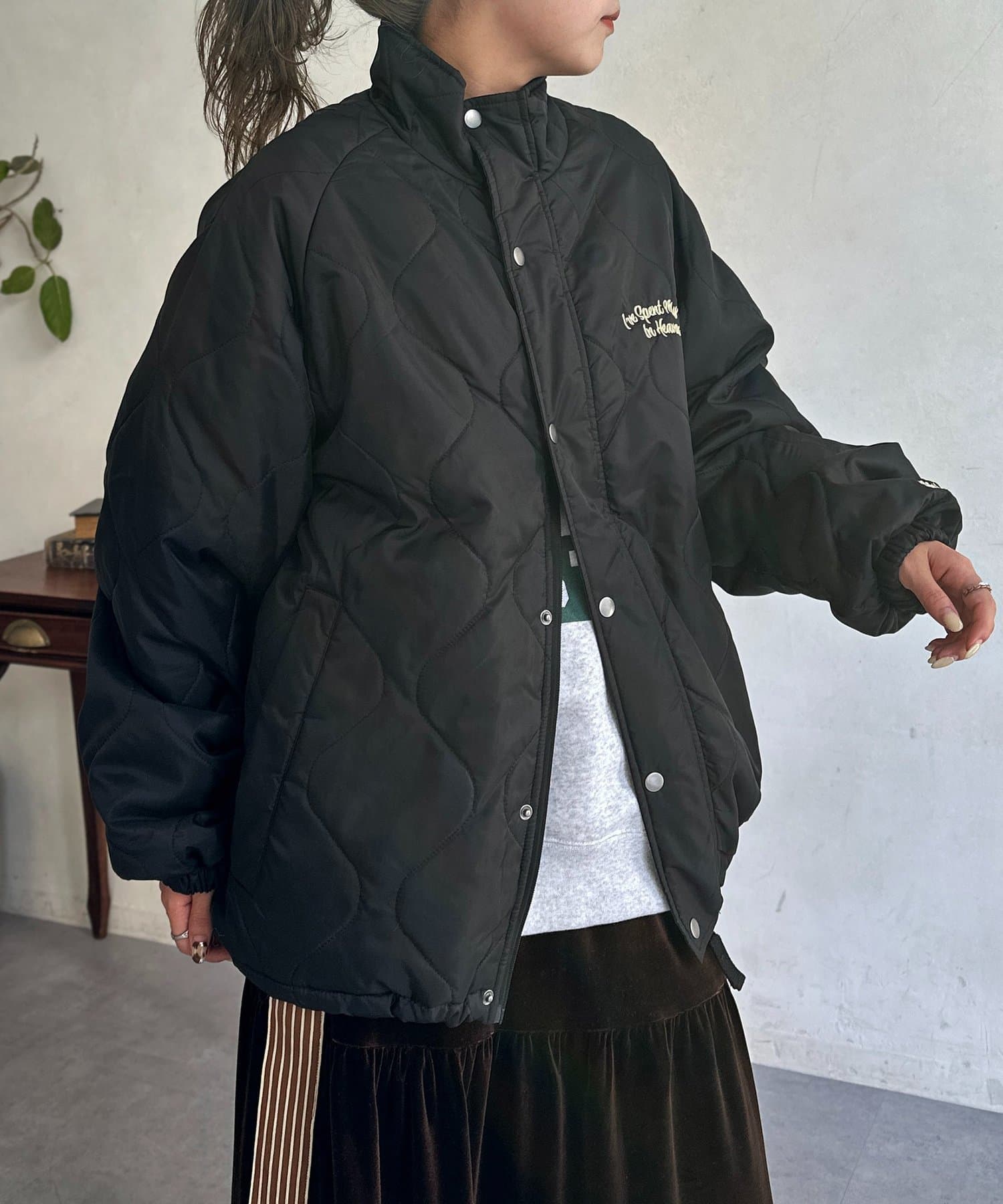 CPCMではおなじみのバック刺繍キルティングジャケットに、