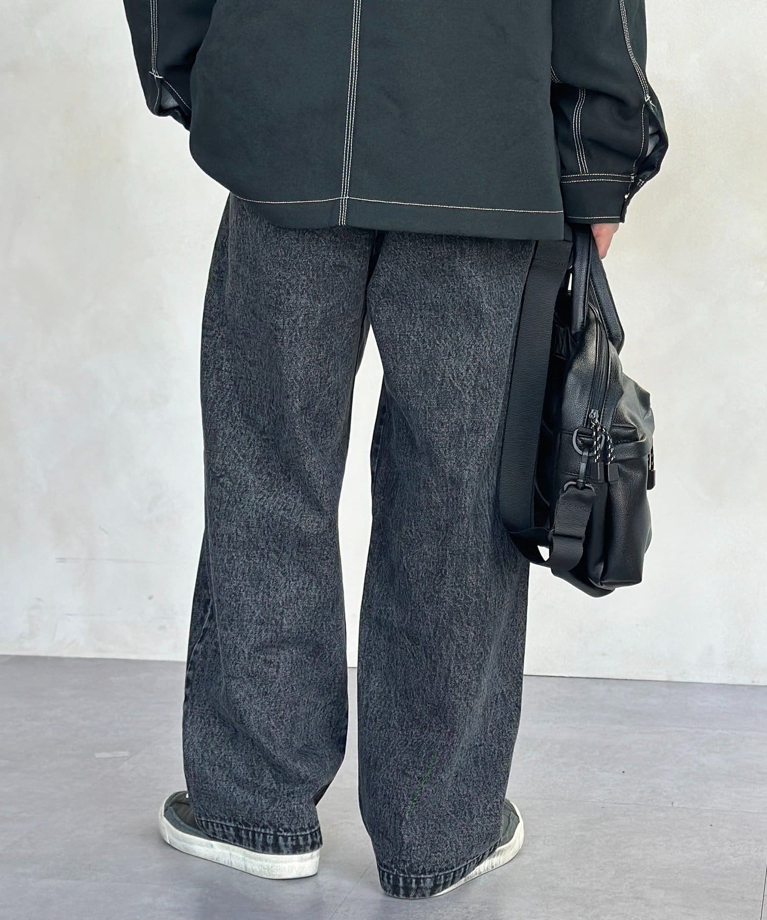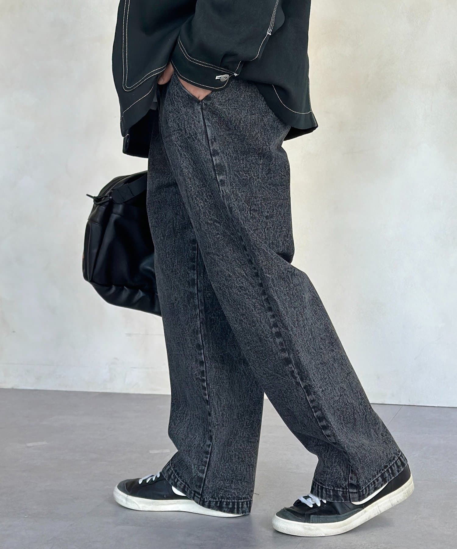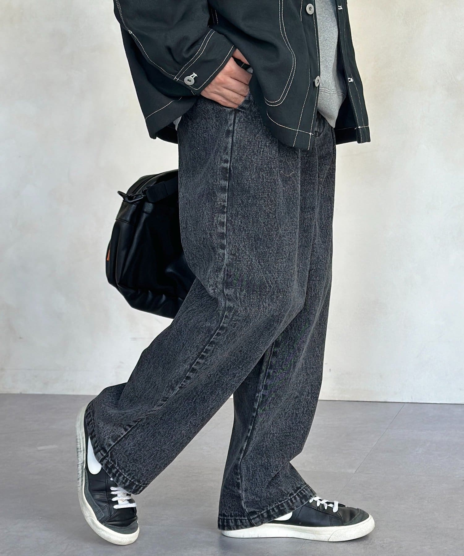 トレンドのワイドシルエットでこなれ感を演出するツータックデニム