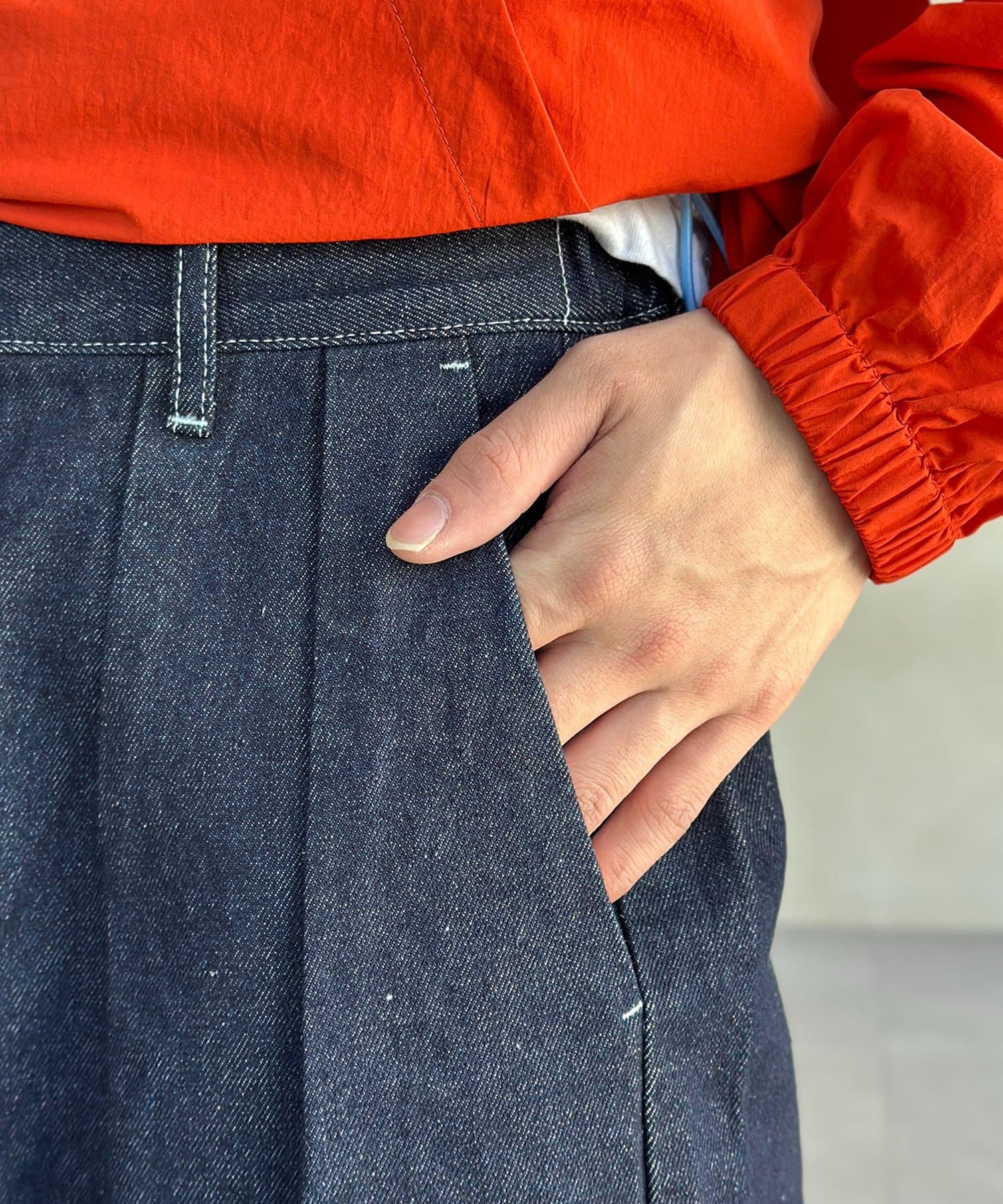 ゆったりとしたシルエットとツータックが魅力のデニムパンツ。