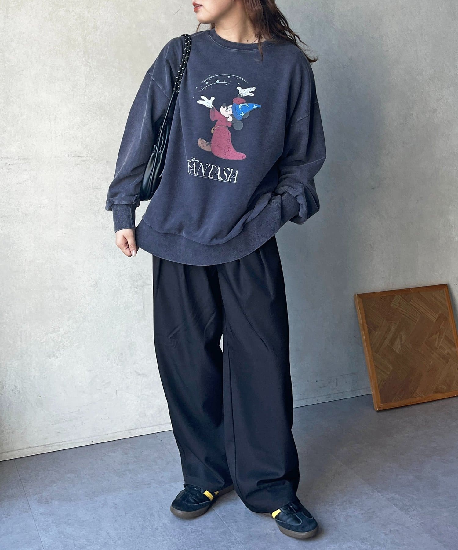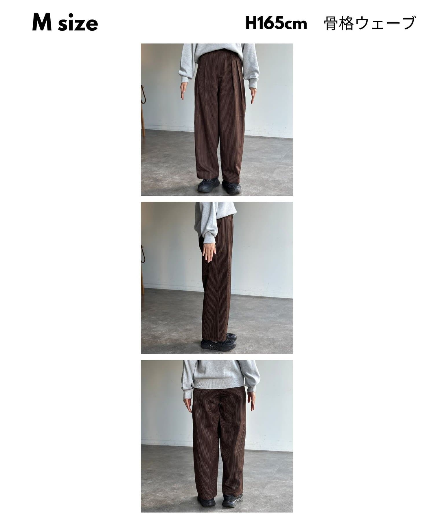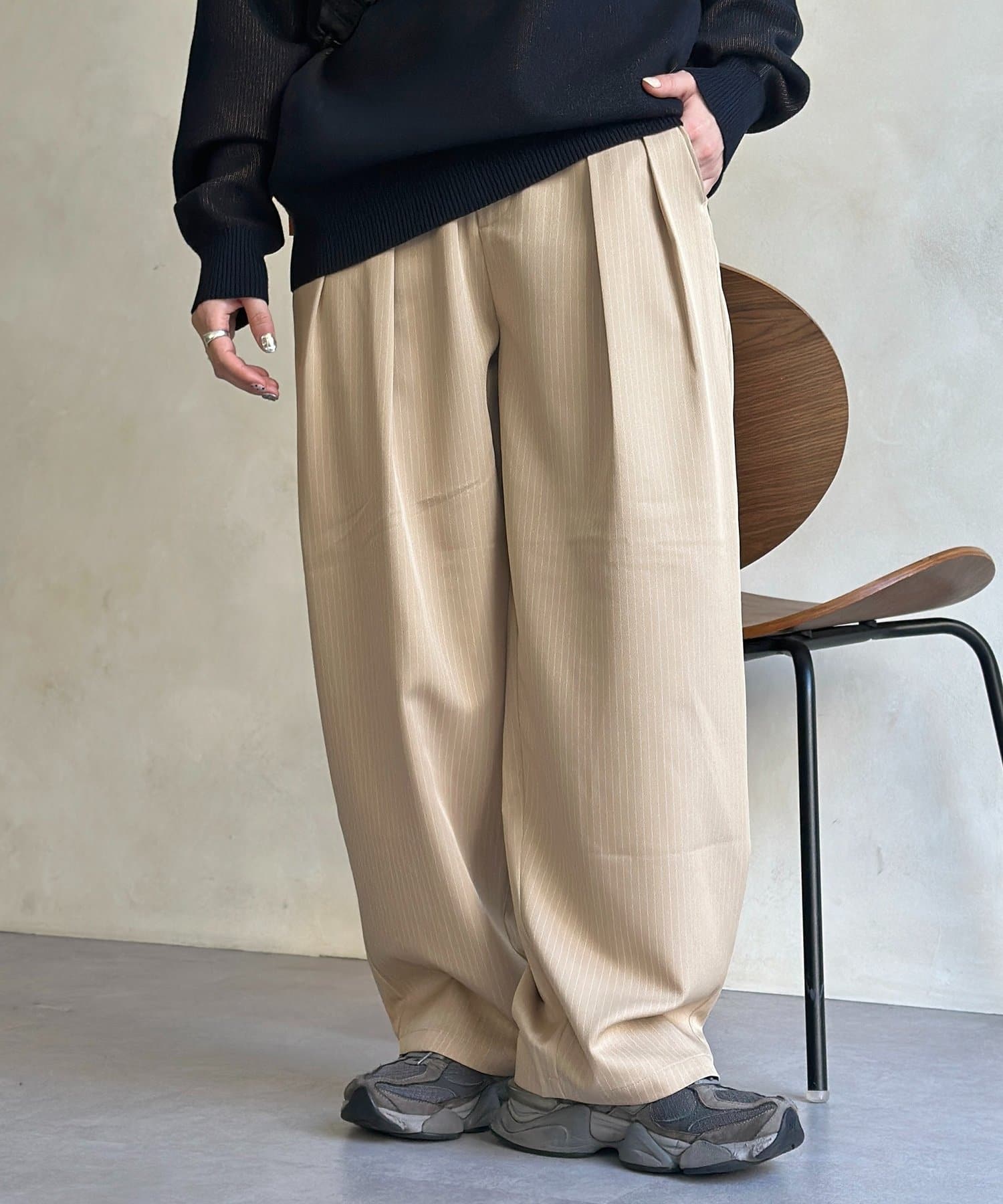 ゆったりとしたワイドシルエットで、リラックス感がありながらも上品な印象に。