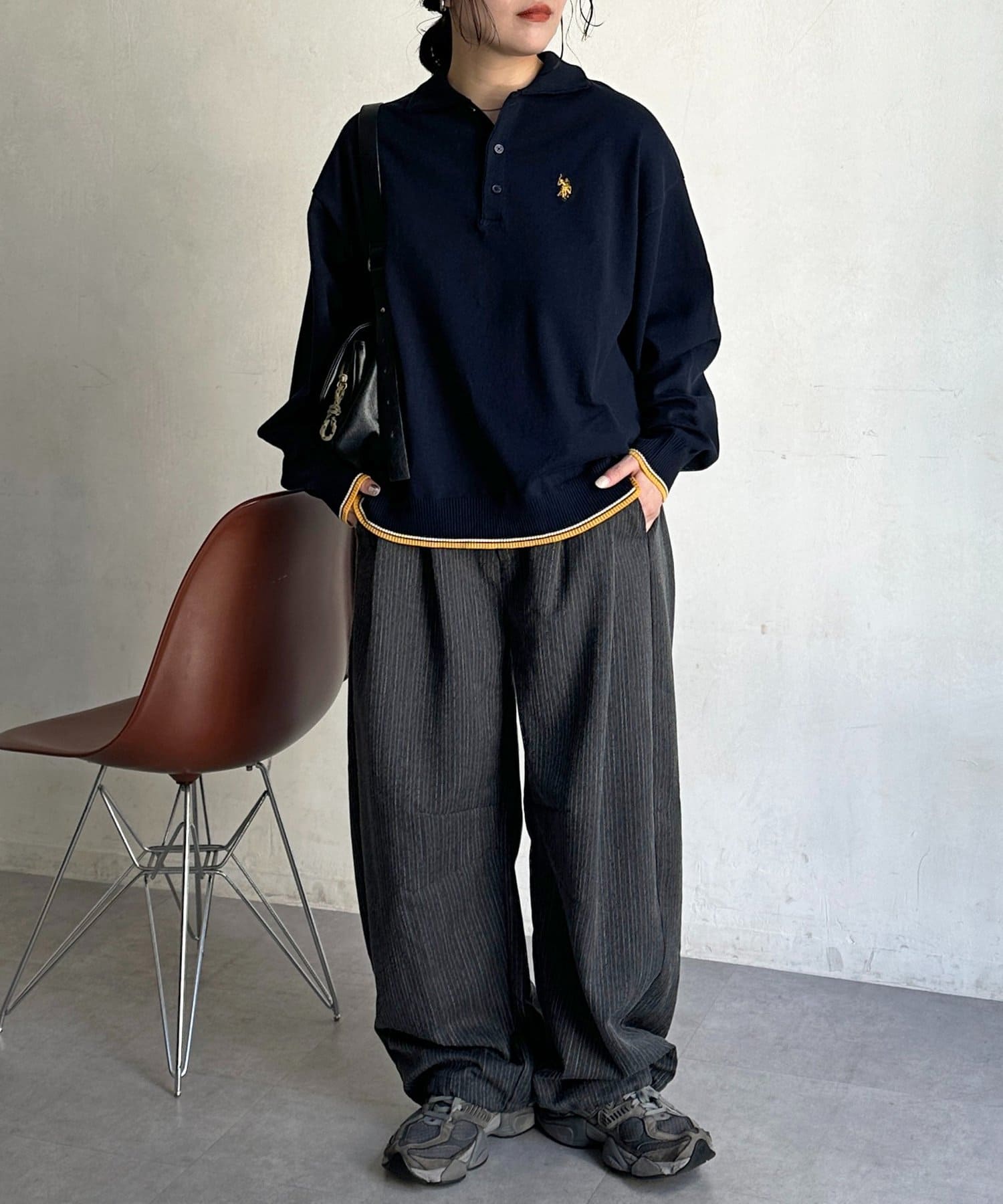 ・ワイドパンツと合わせて、リラックス感のあるカジュアルスタイル