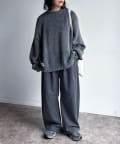 ピグメント加工を施した独特の色合いと、大胆なダメージ加工が目を引くニットトップスです!