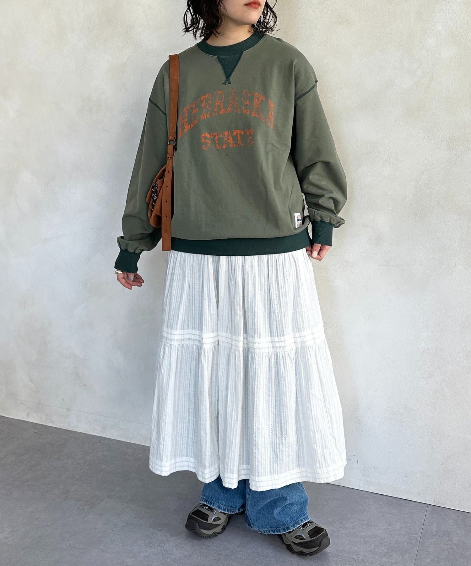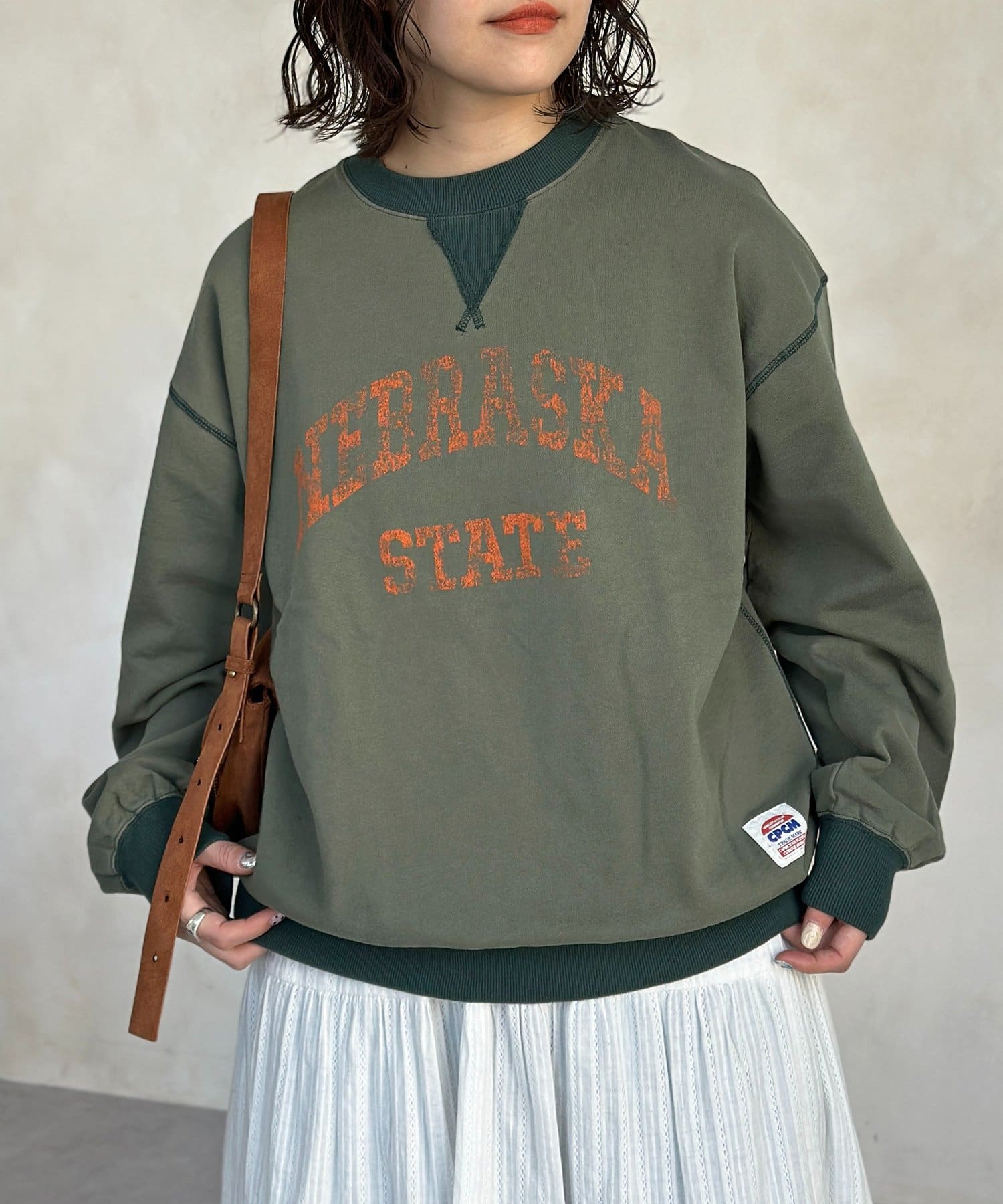 リブ、ステッチが微配色になっている、春らしいカレッジロゴスウェットです!