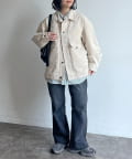 ・白Tシャツにデニムを合わせた定番カジュアルスタイルに、さらっと羽織って大人っぽく。足元はスニーカーでラフに決めて。