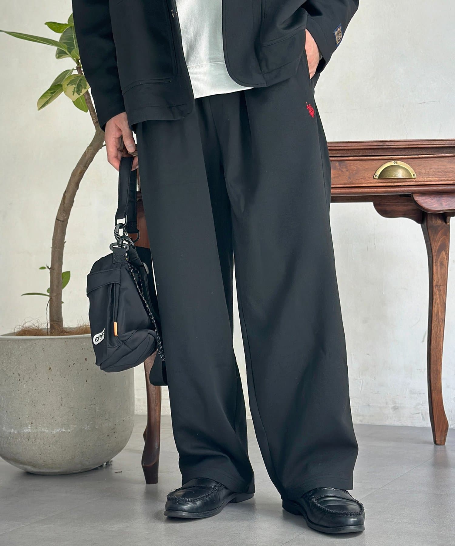 ワイドストレートのシルエットが脚のラインを拾わず、リラックスした履き心地を実現しました!