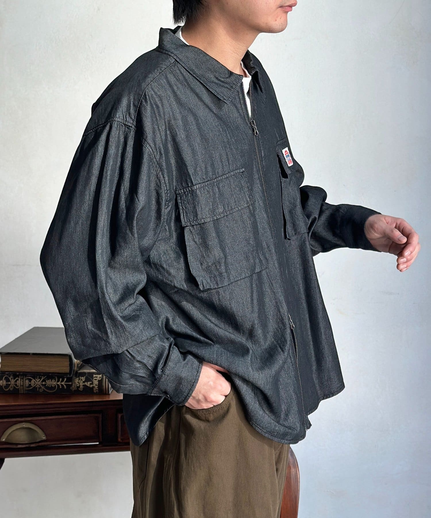 デニムジップシャツ