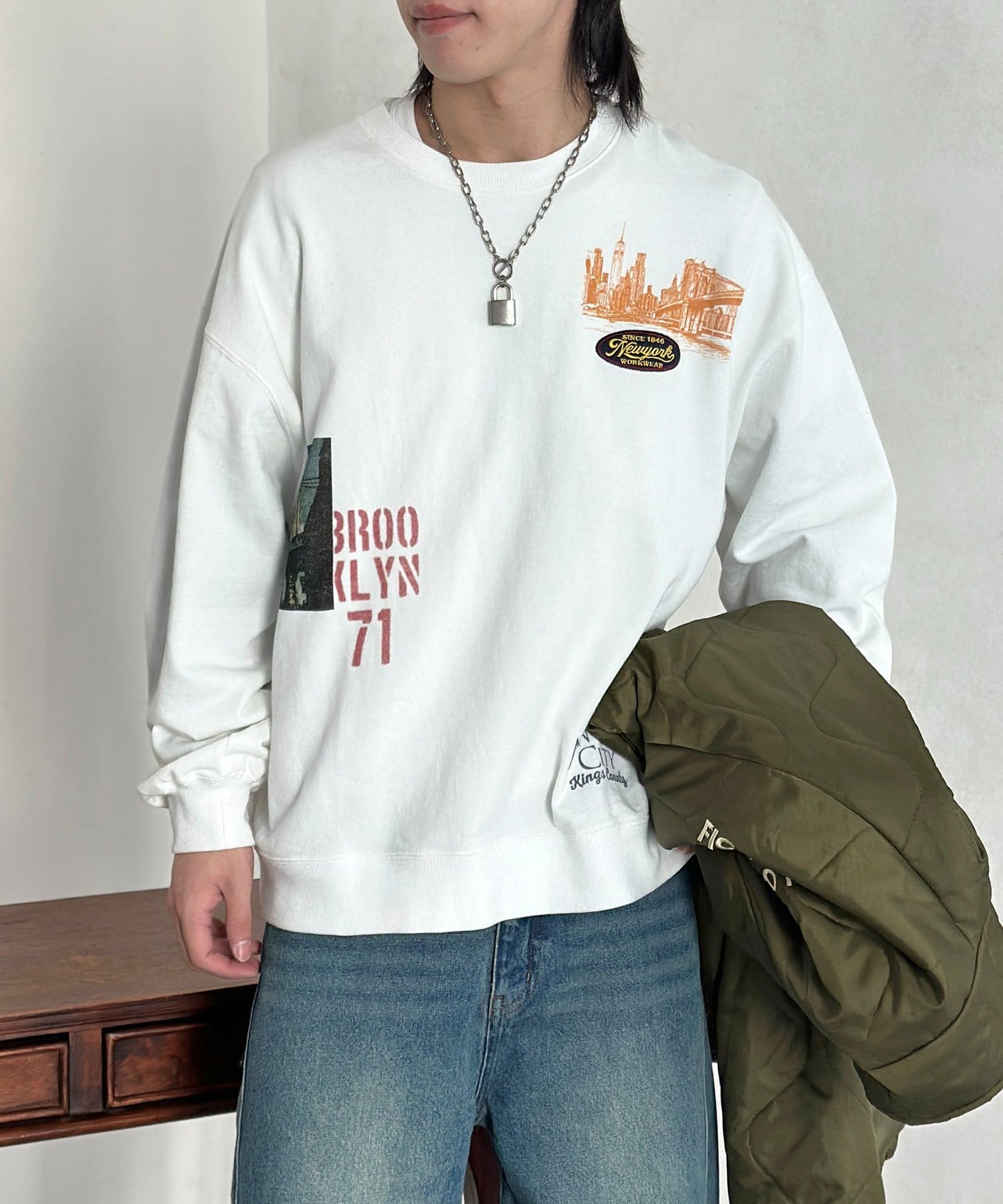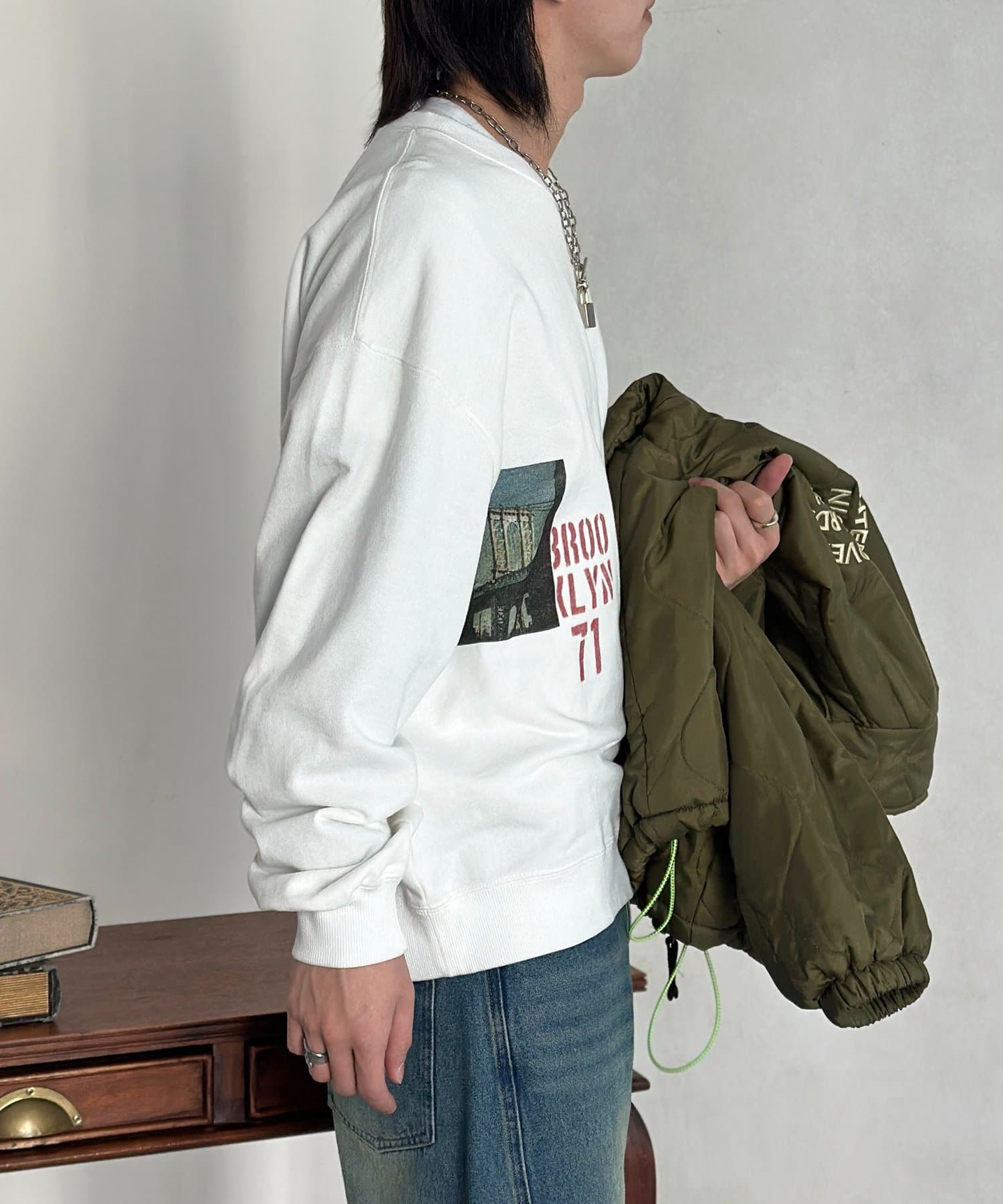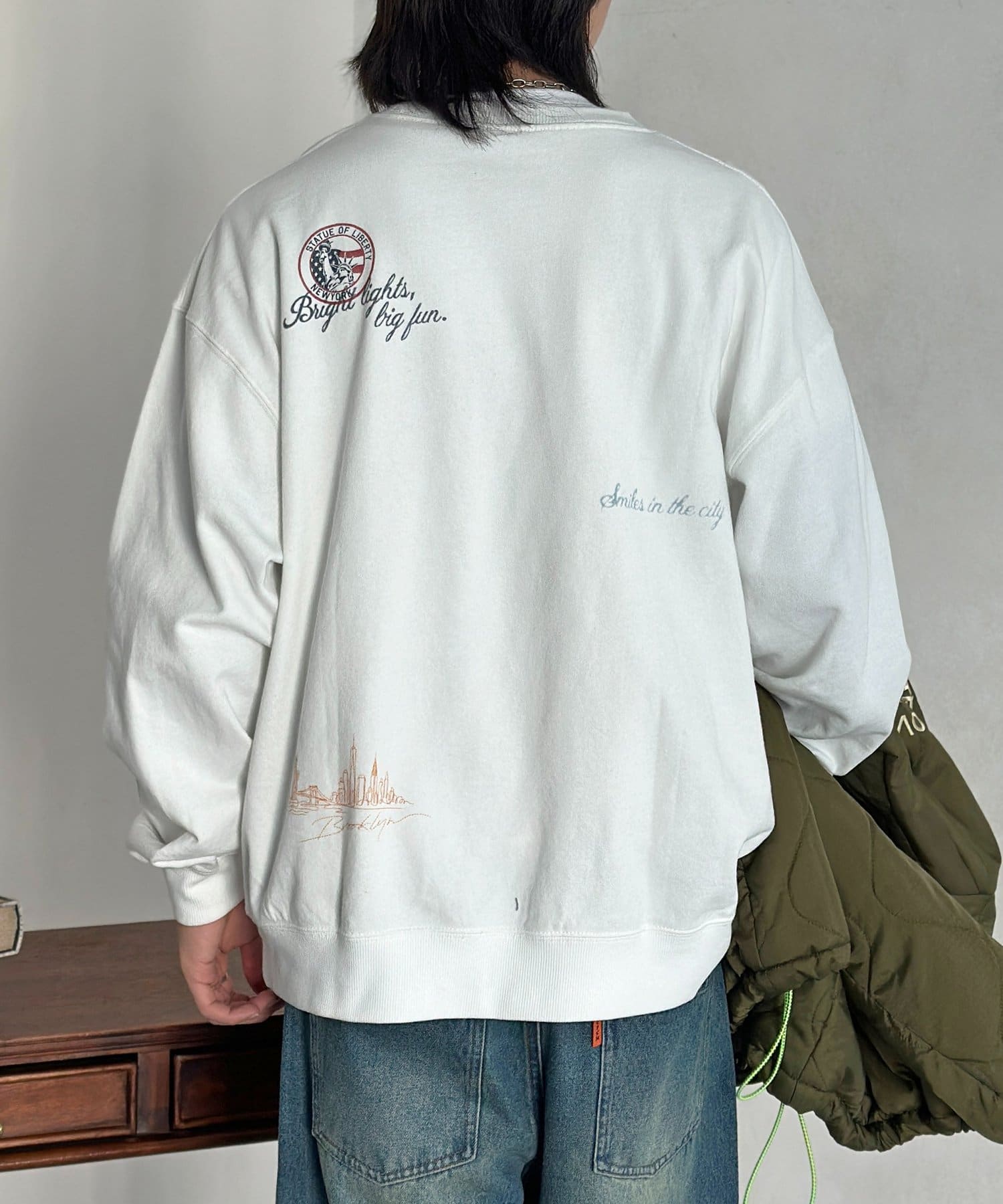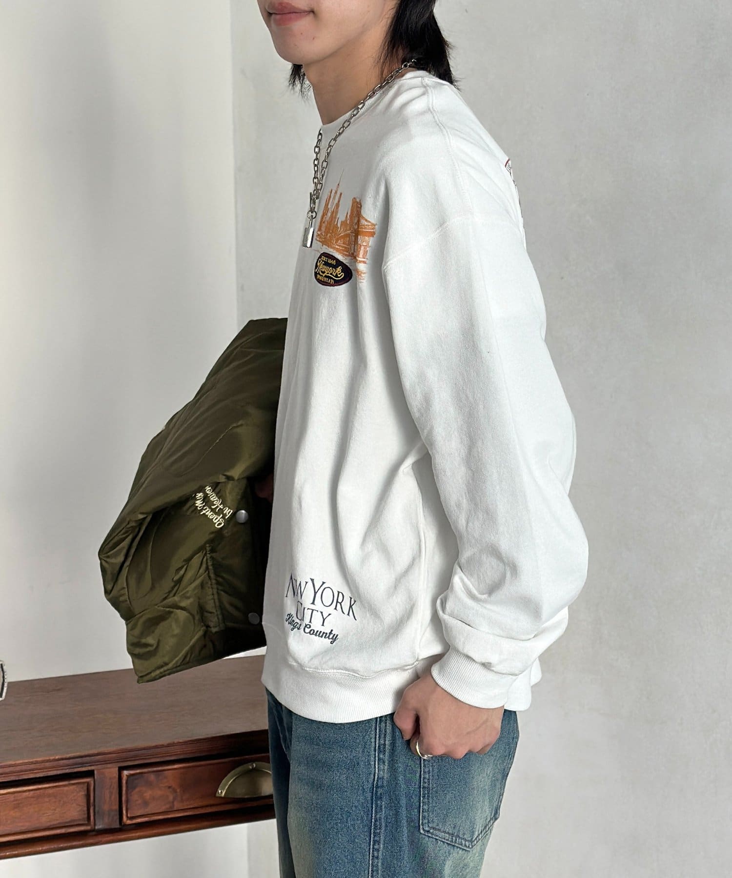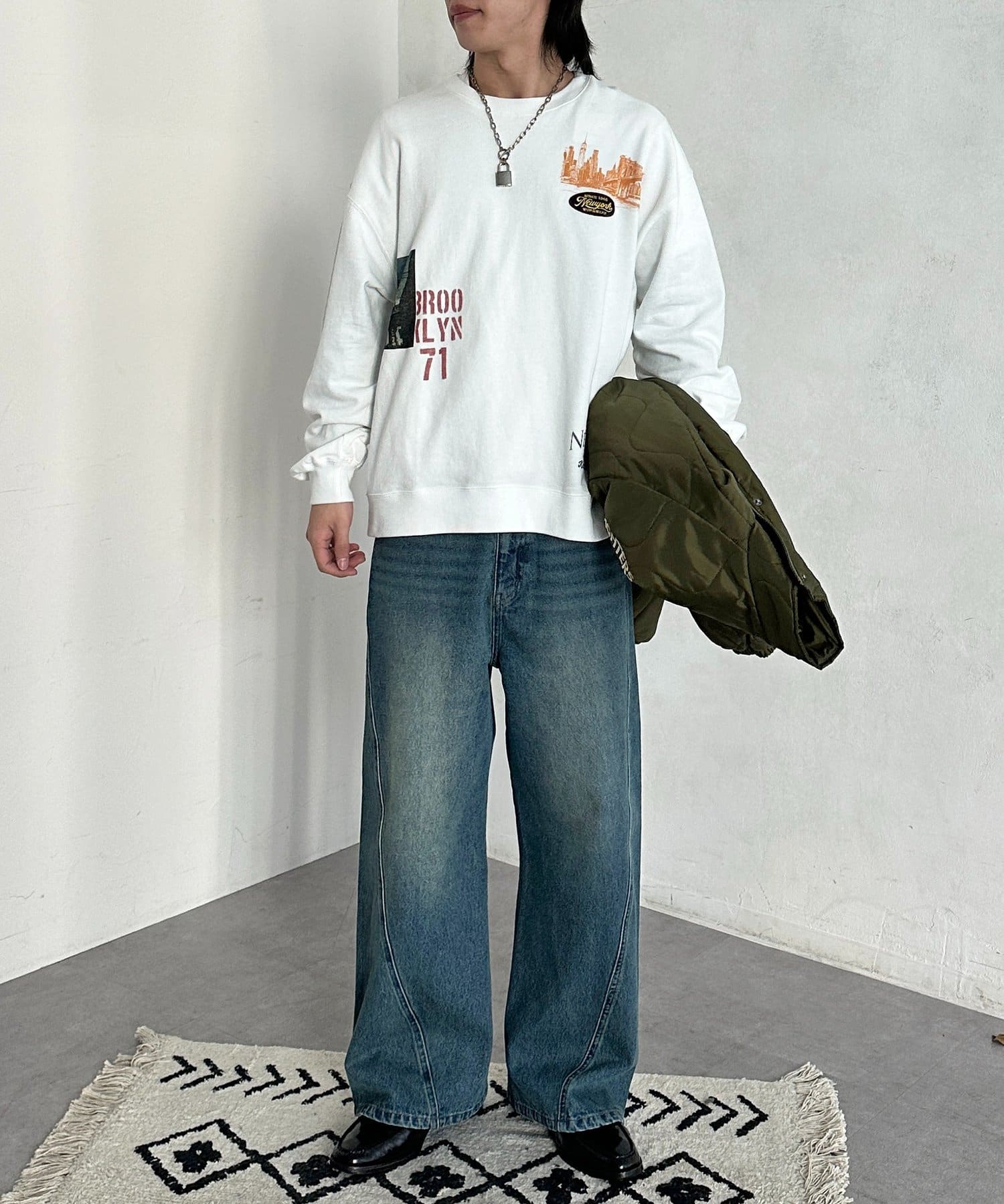 古着のようなこなれ感がありつつ、ストリートスタイルにもハマる落書き風のロンTです!