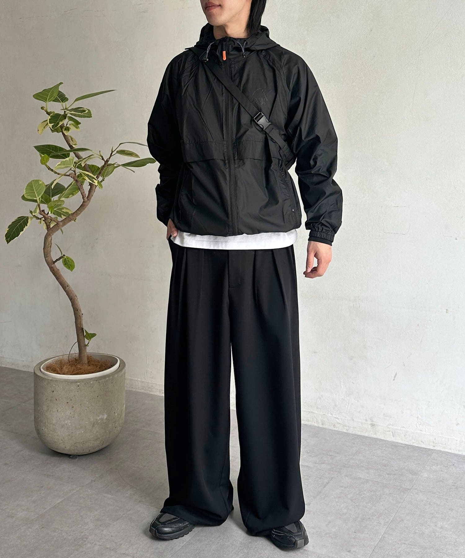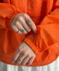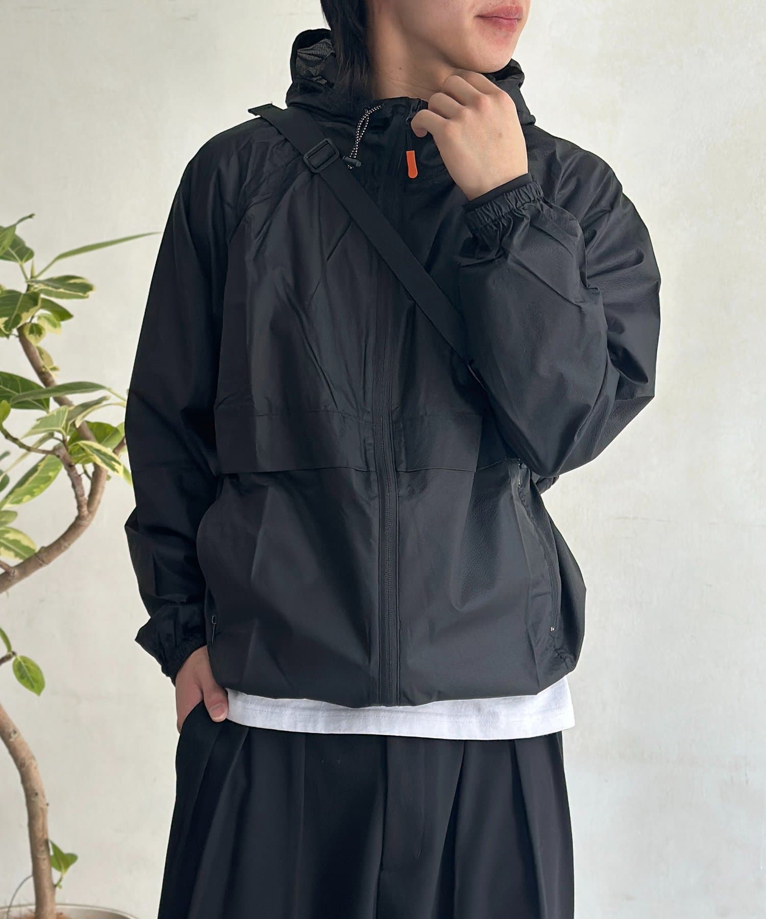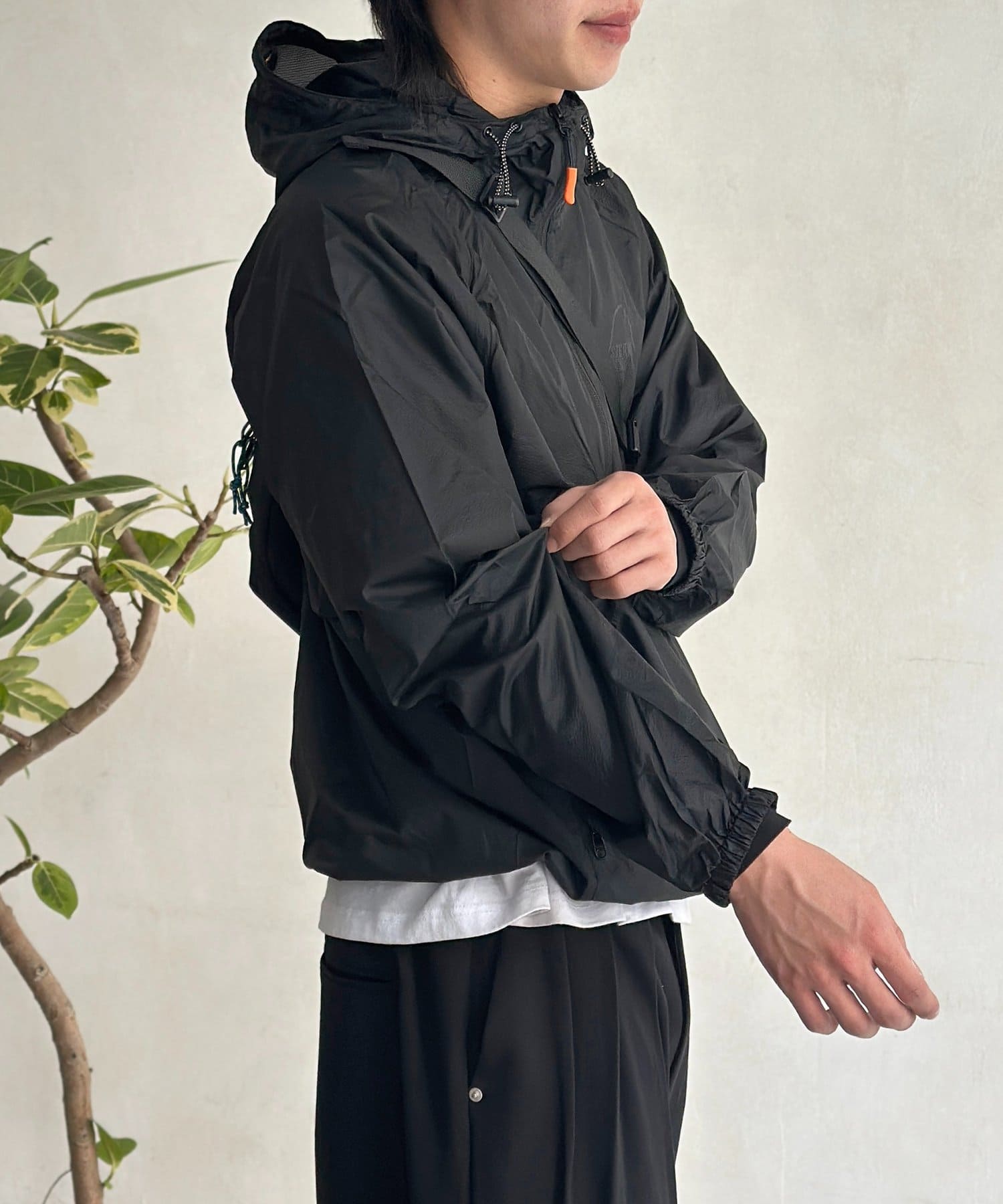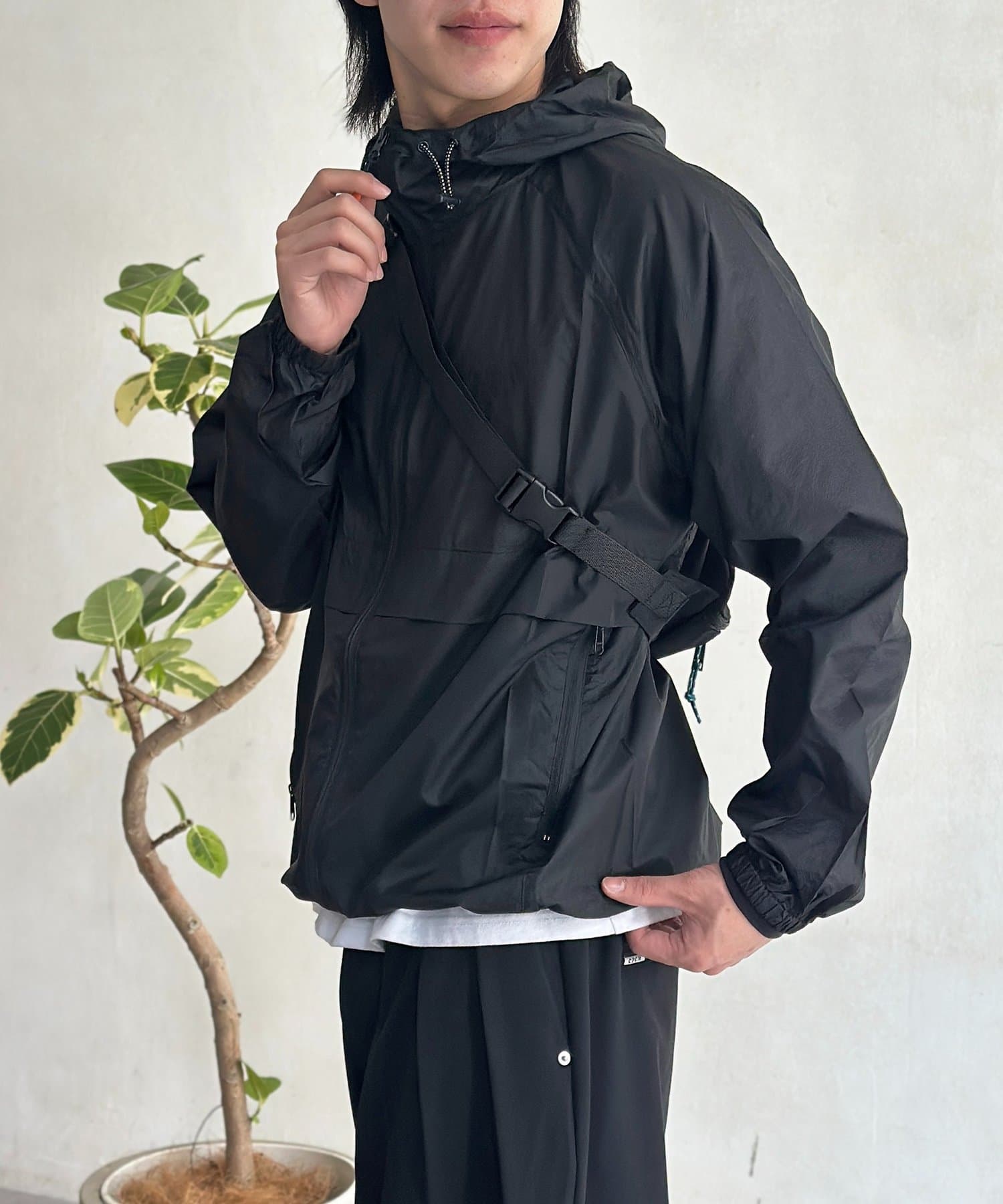 ・フードのドローコードやジップなど、機能性とデザイン性を両立したディテール。