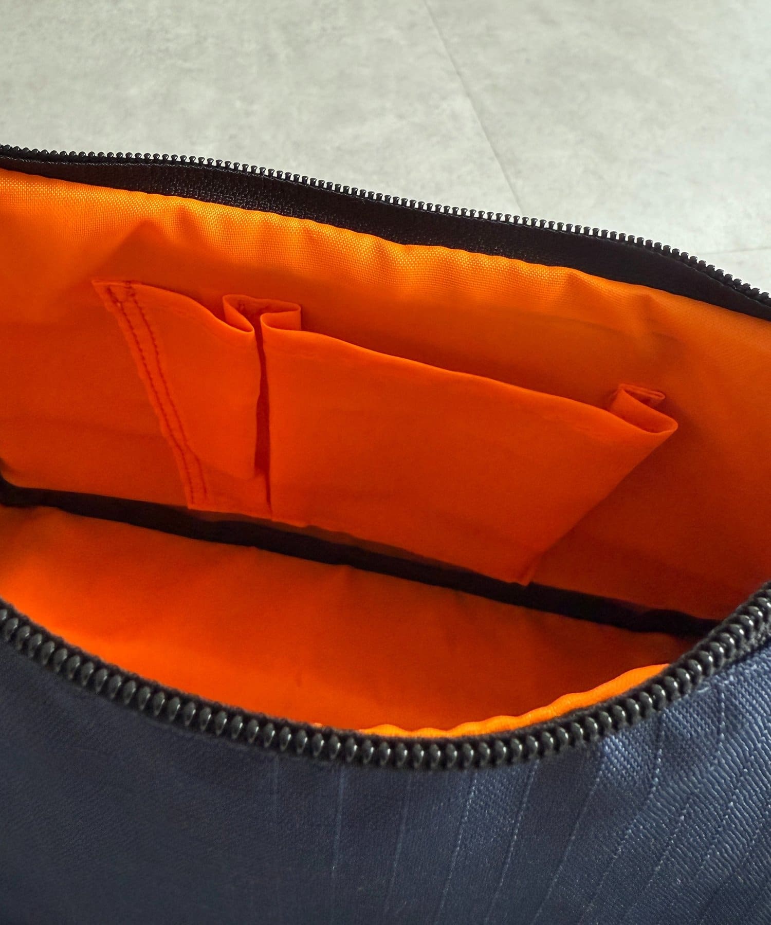 ・オレンジのジッパーが目を引くデザイン