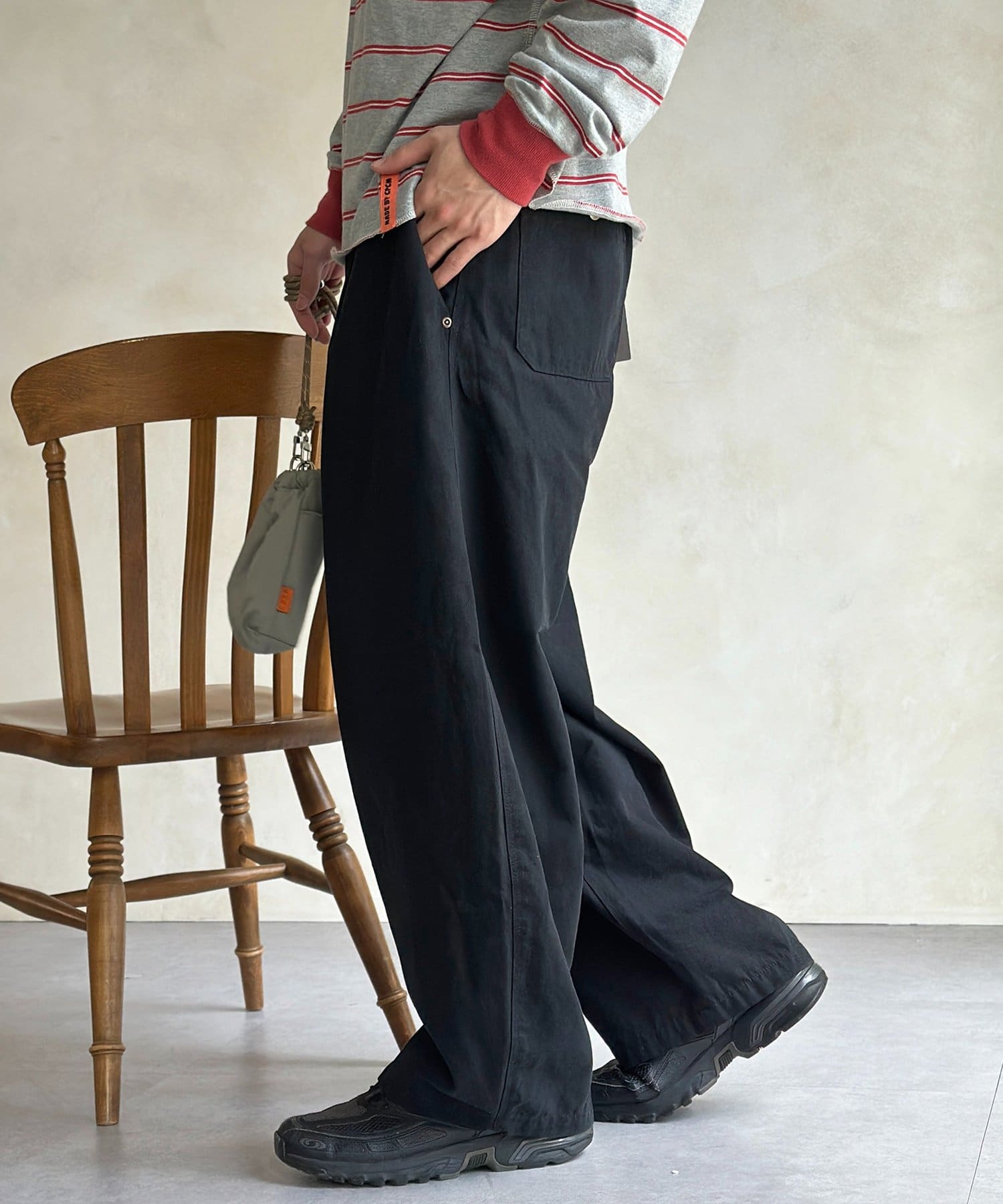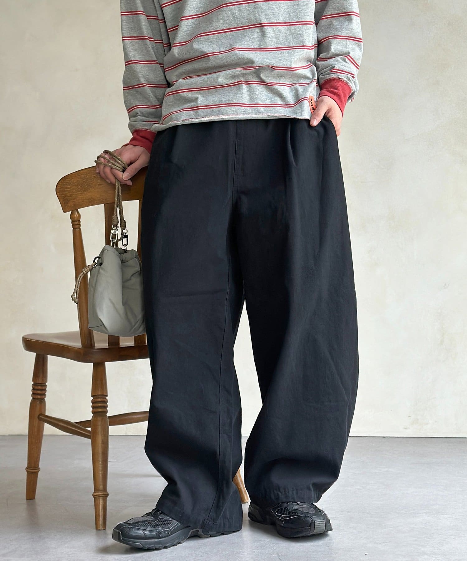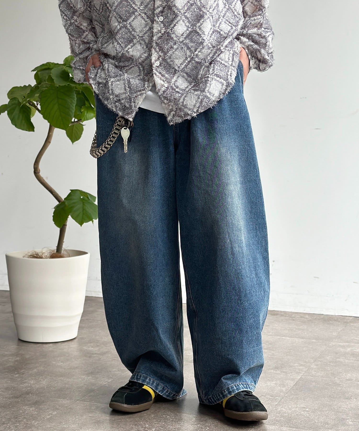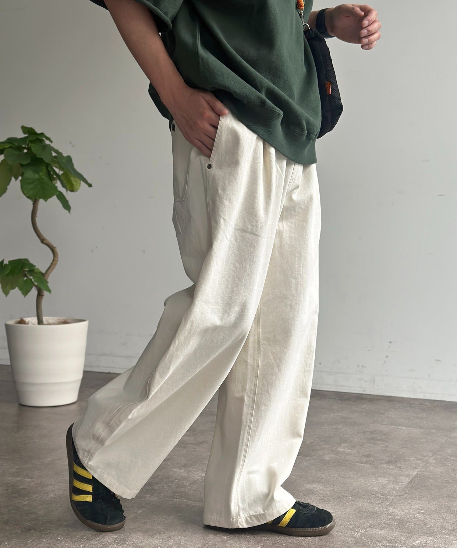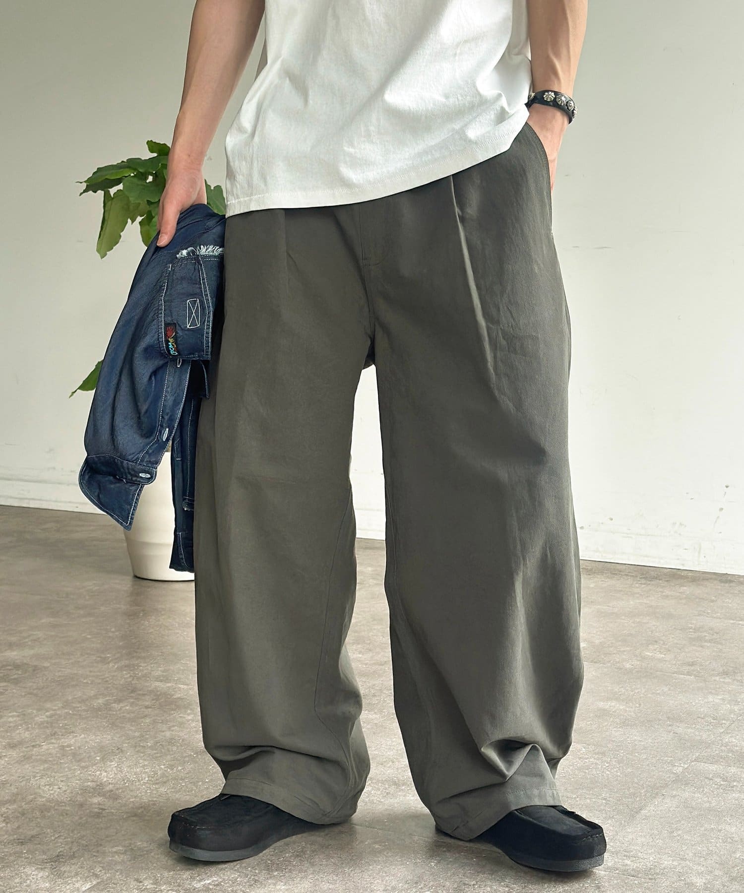 ・ オーバーサイズのカットソーと合わせて、とことんラフに着崩す