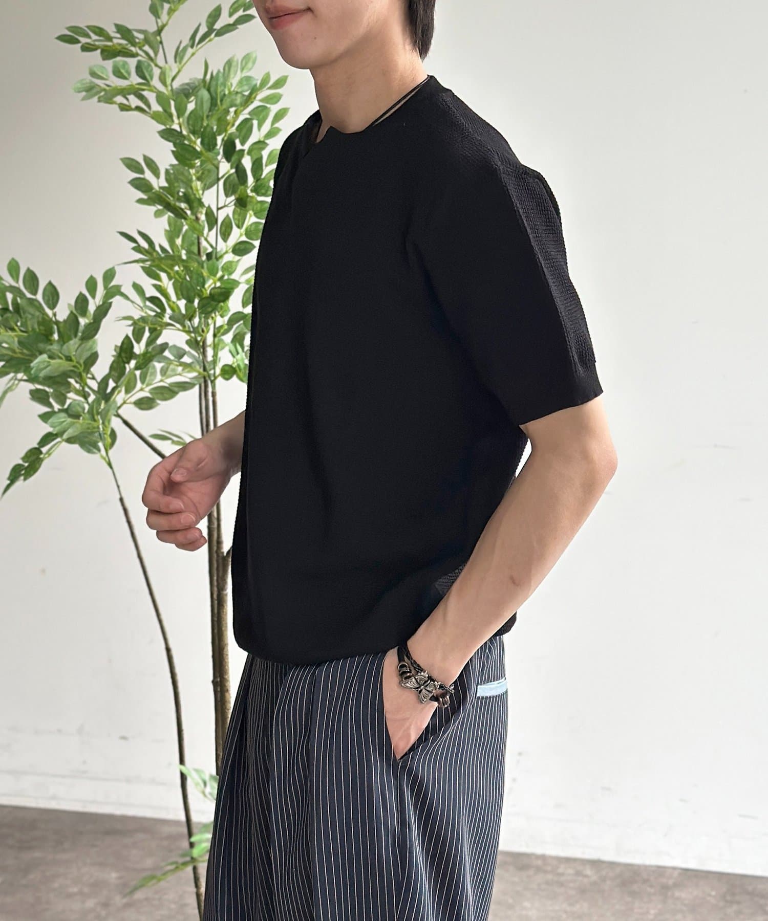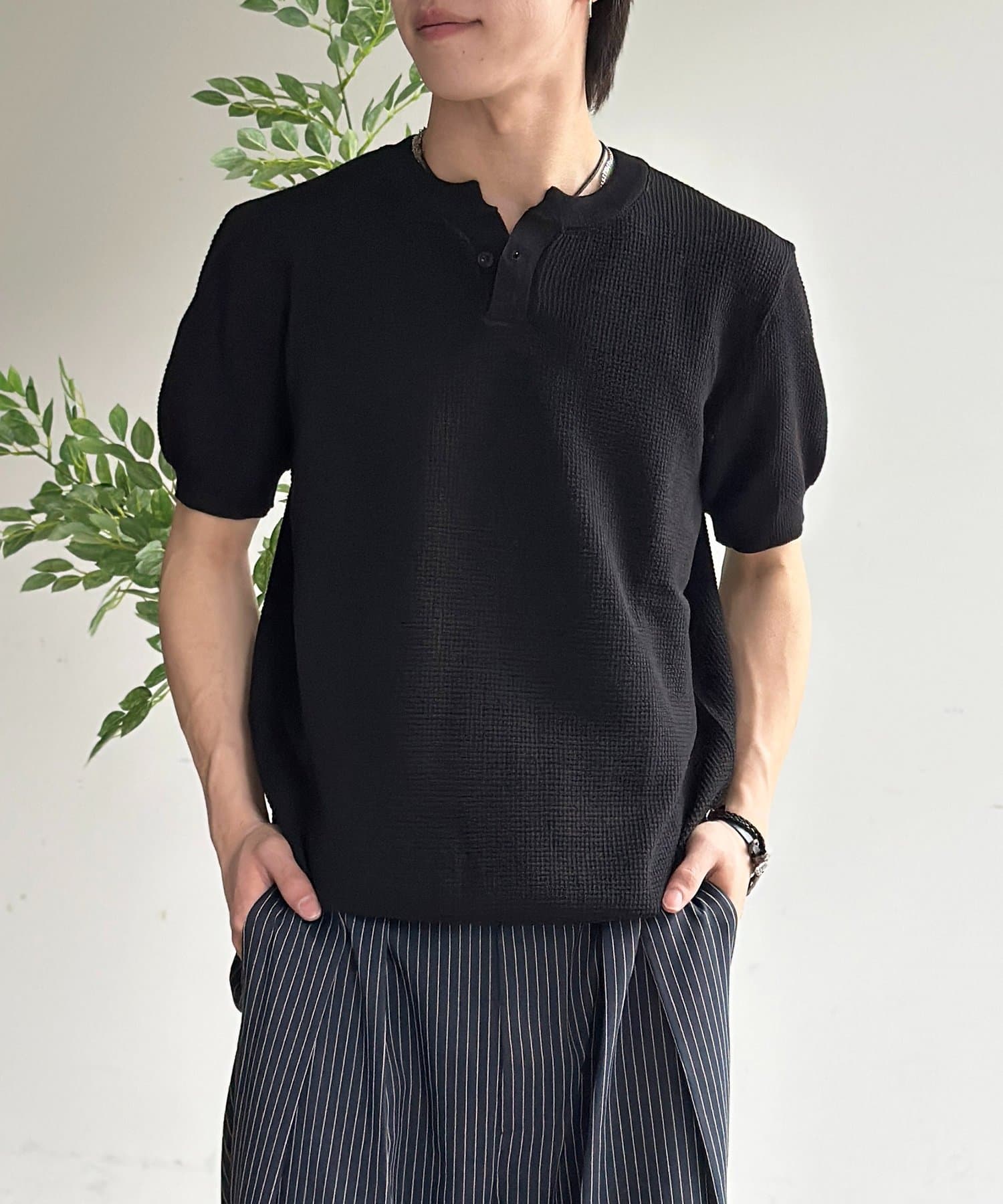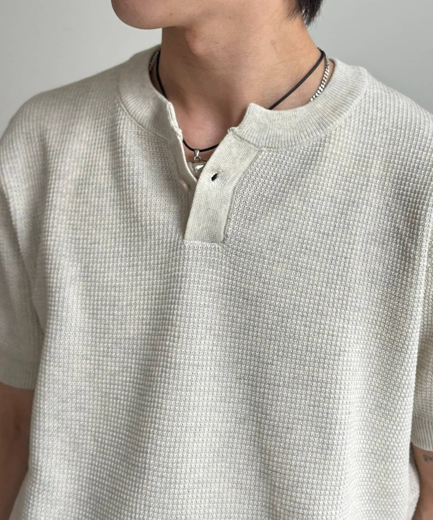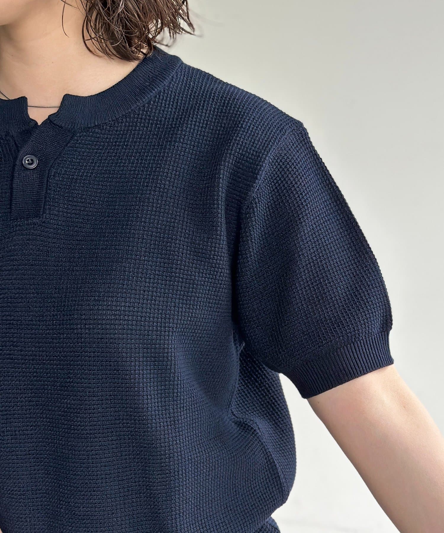ヘンリー半袖ニットプルオーバー