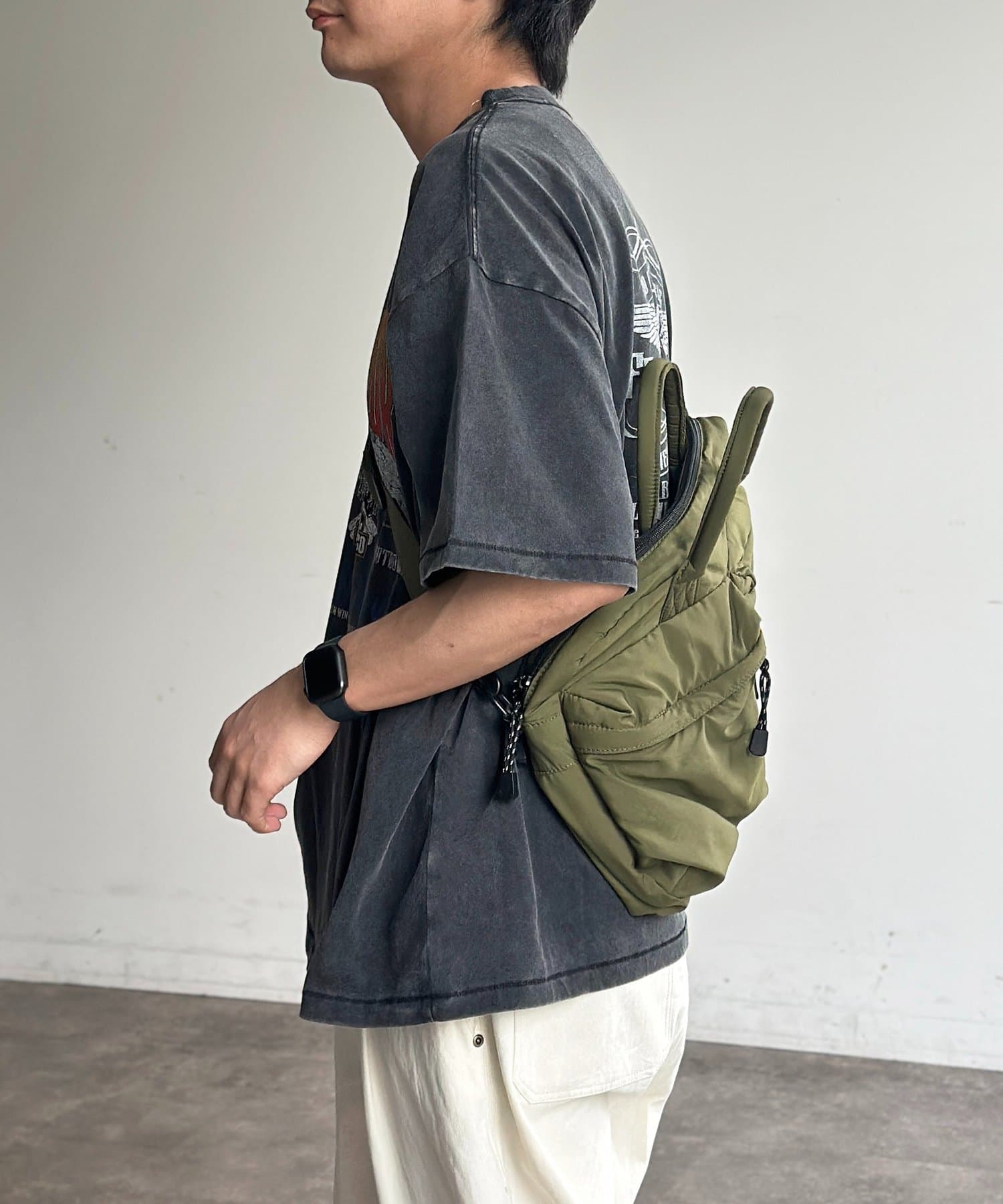 ・ カーゴパンツと合わせて、ストリートカジュアルスタイルに。足元はスニーカーで決まり。