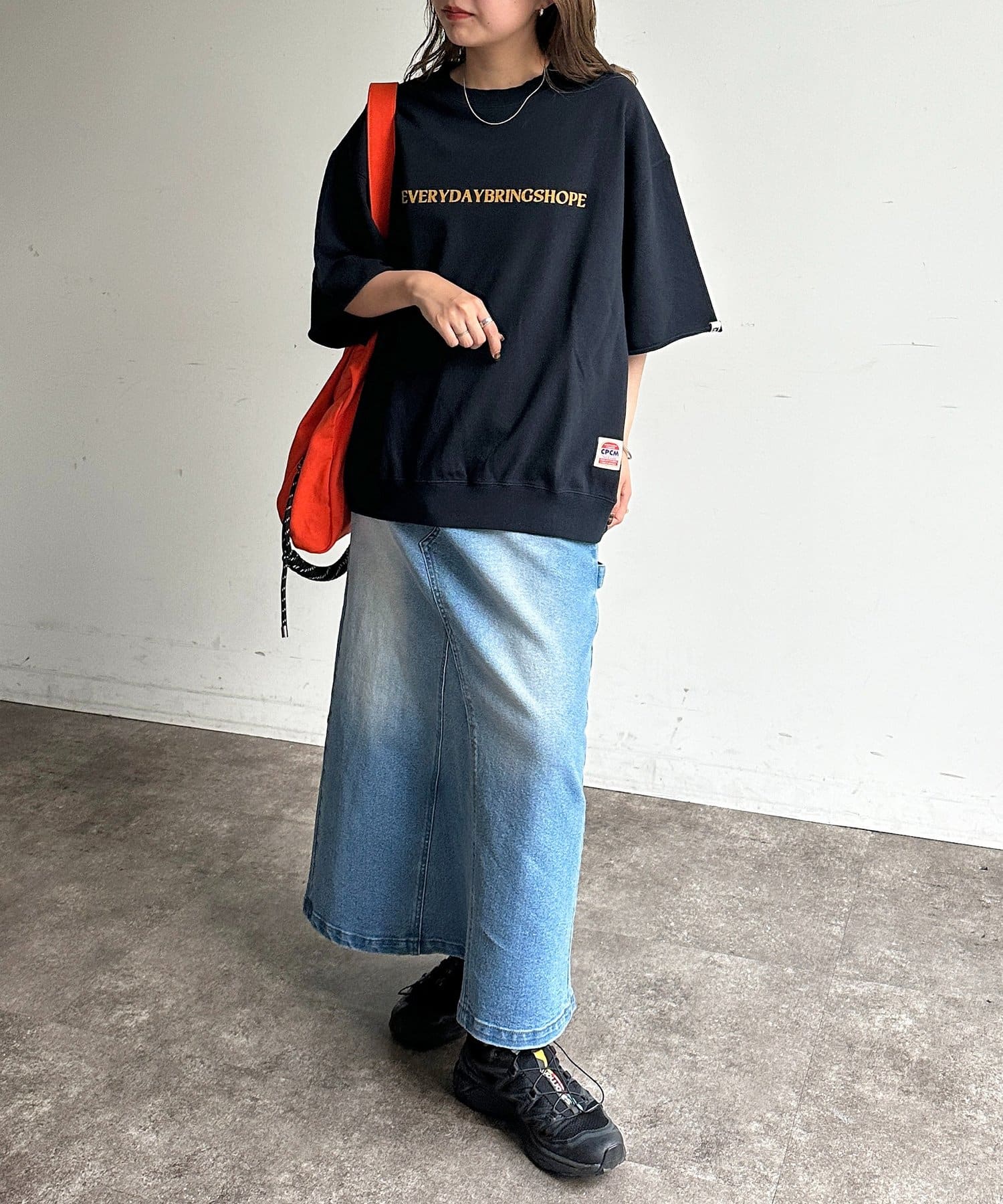 ・ロングスカートと合わせて、大人カジュアルスタイルに。