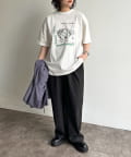 ・ワイドパンツと合わせて、トレンド感のあるリラックススタイル。アクセサリーで個性をプラス。