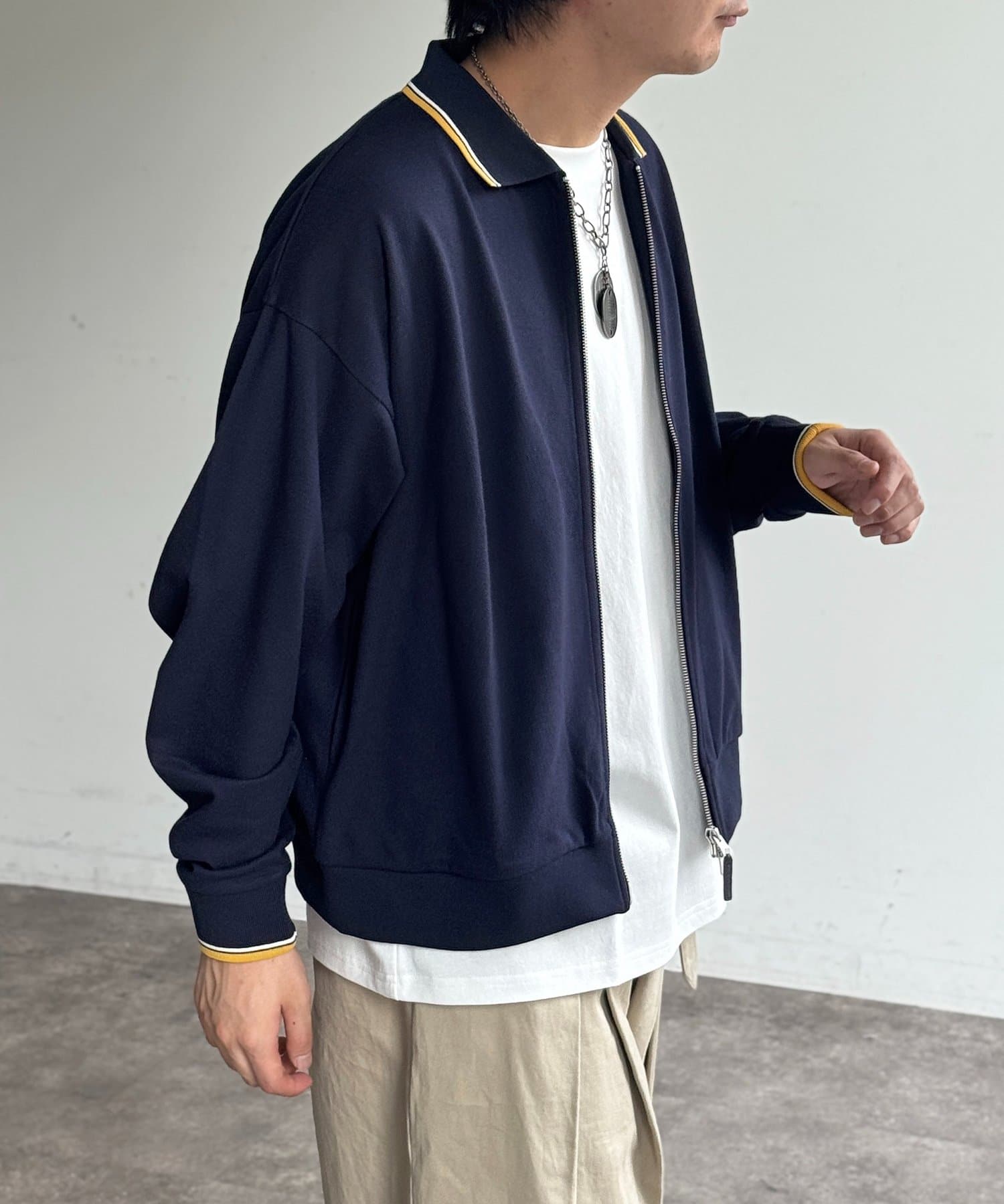 襟元のラインがアクセント!着回し力抜群の万能ジップブルゾン