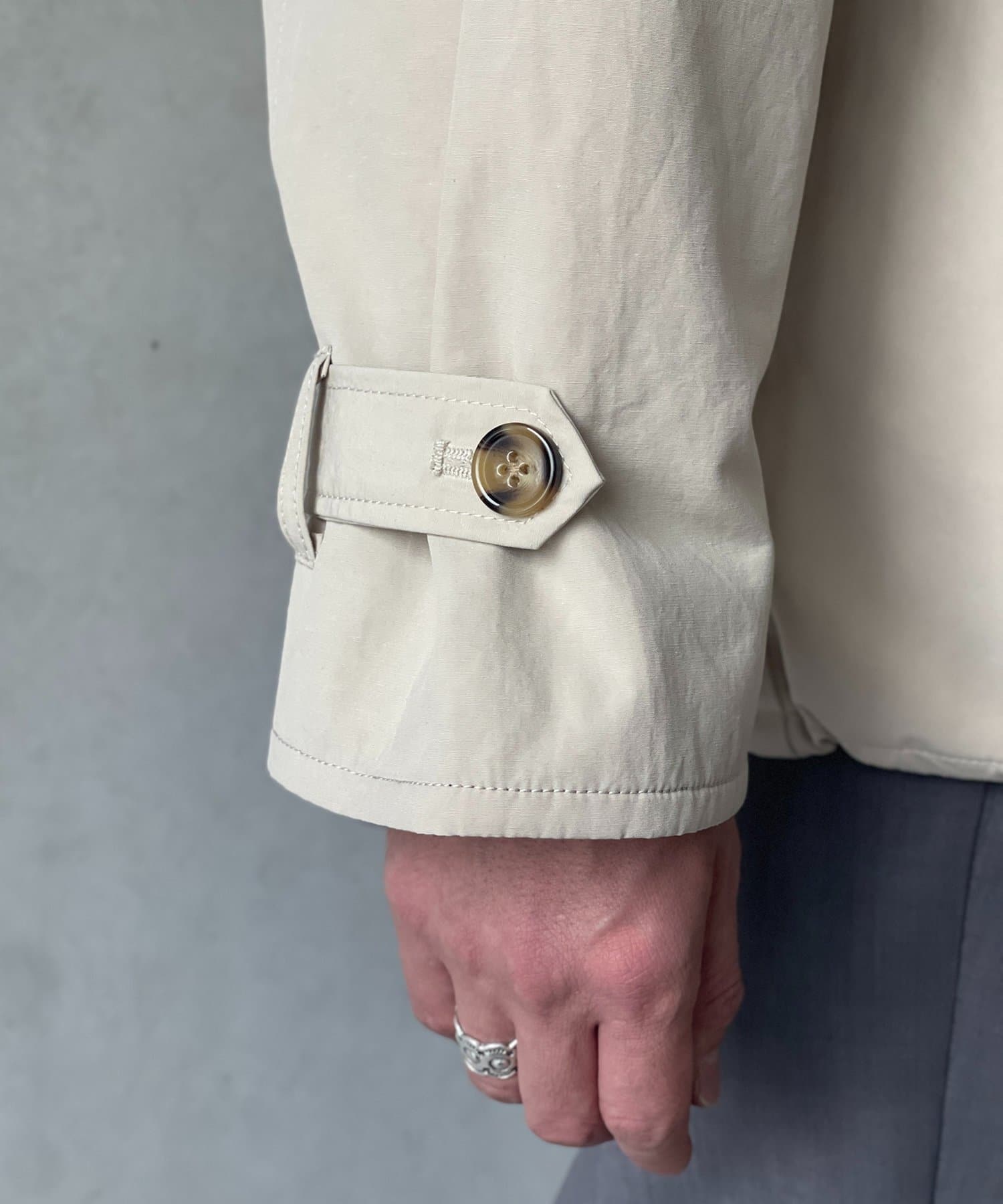 立てるか寝かせるか迷う、トレンチ特有の襟は不要。